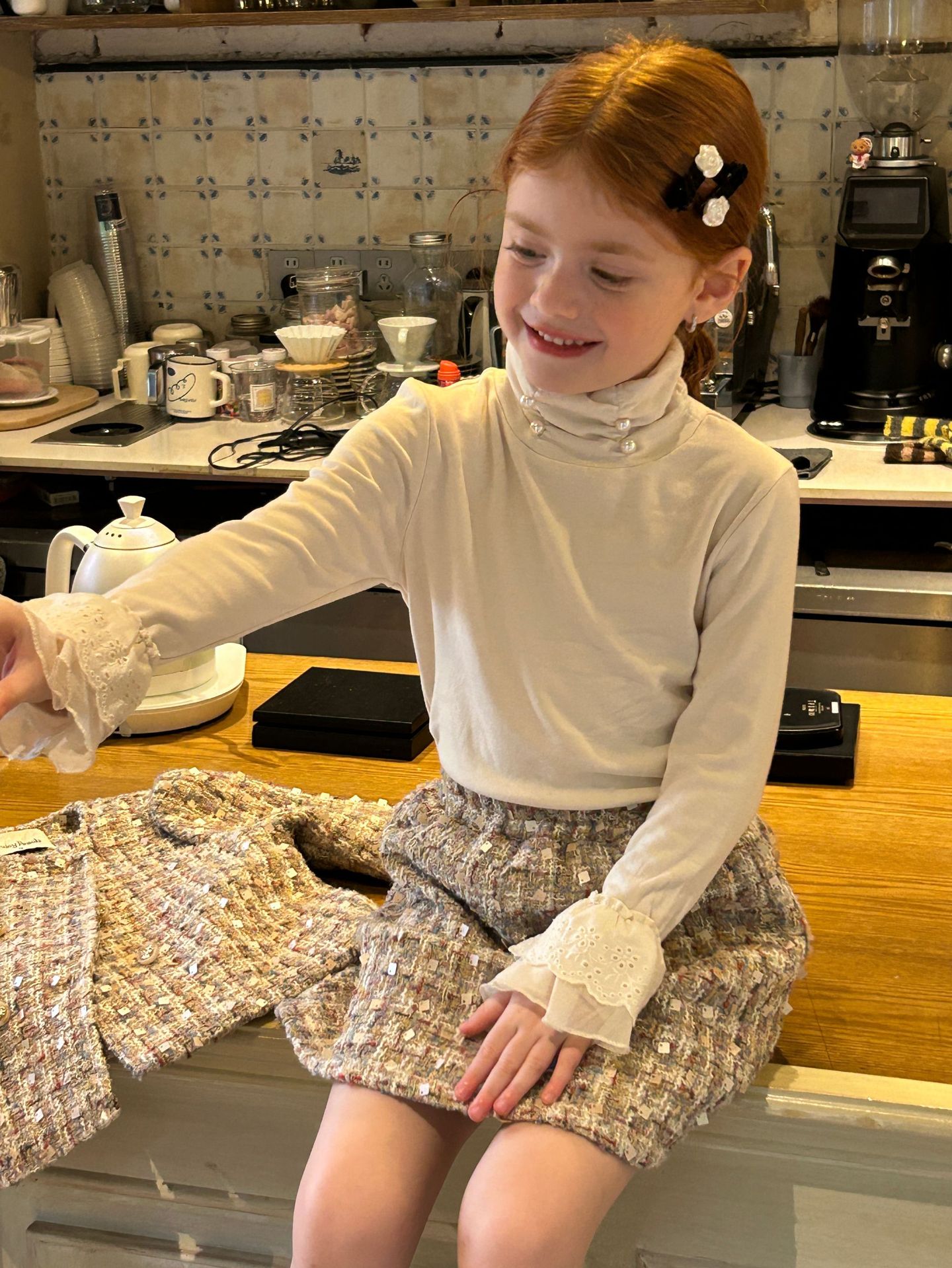 2025 새로운 가을 소녀 패션 다목적 단순 내부 구슬 레이스 커프 레이스 바닥 셔츠스토어 가기