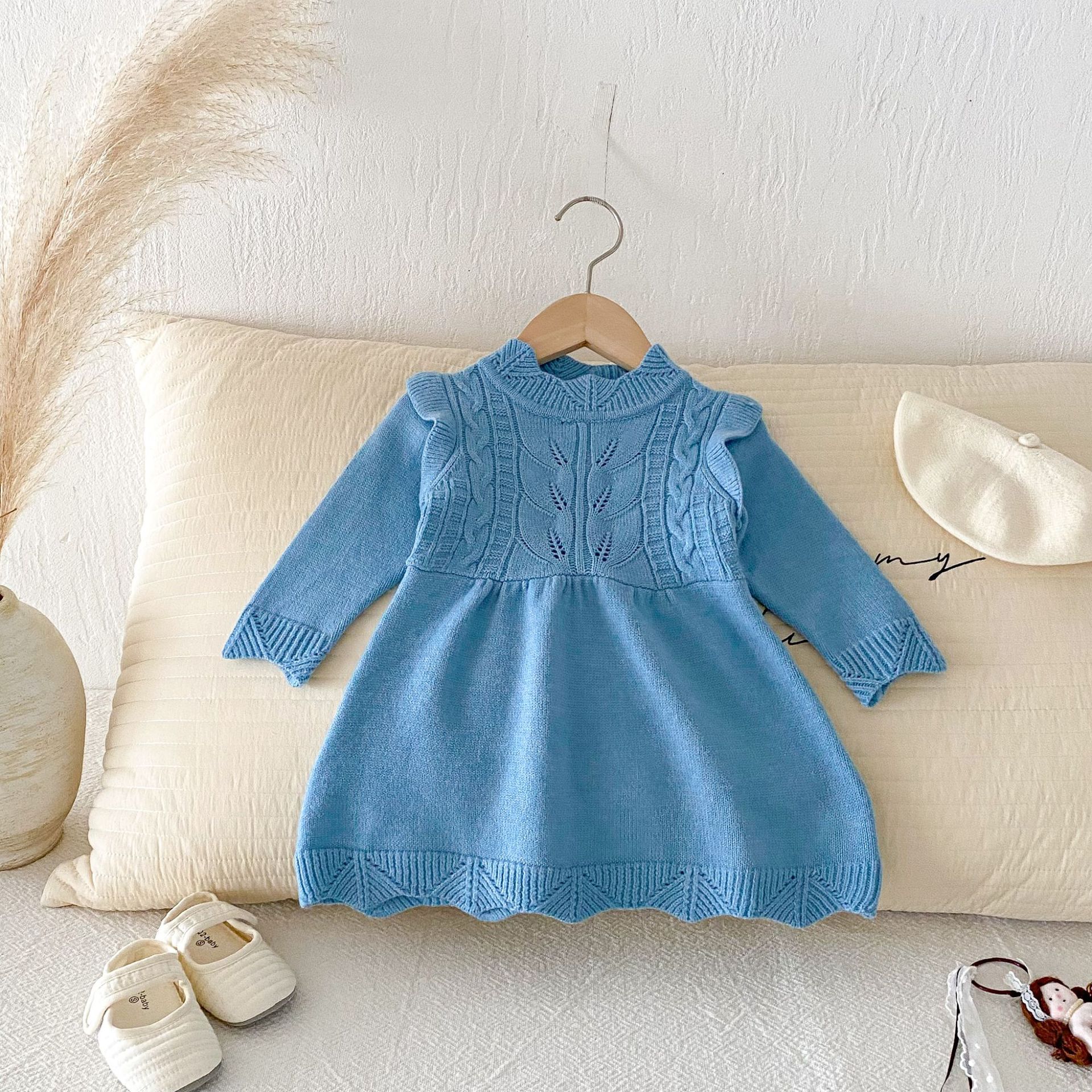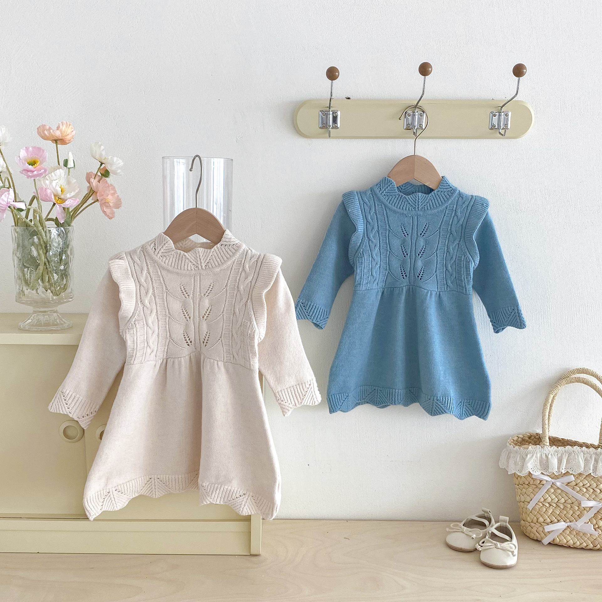 Ins 한국어 버전 아기 소녀 순수 코튼 울 가을, 겨울 따뜻한 드레스 어린이 스웨터 스커트 외출복스토어 가기