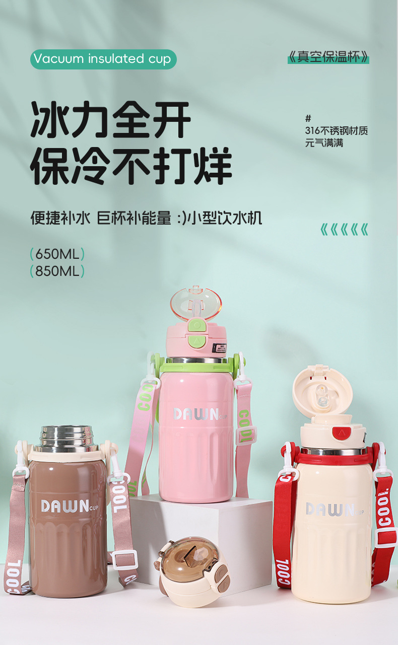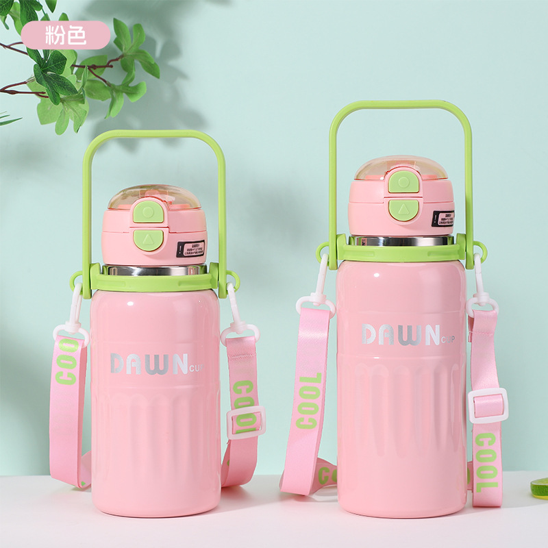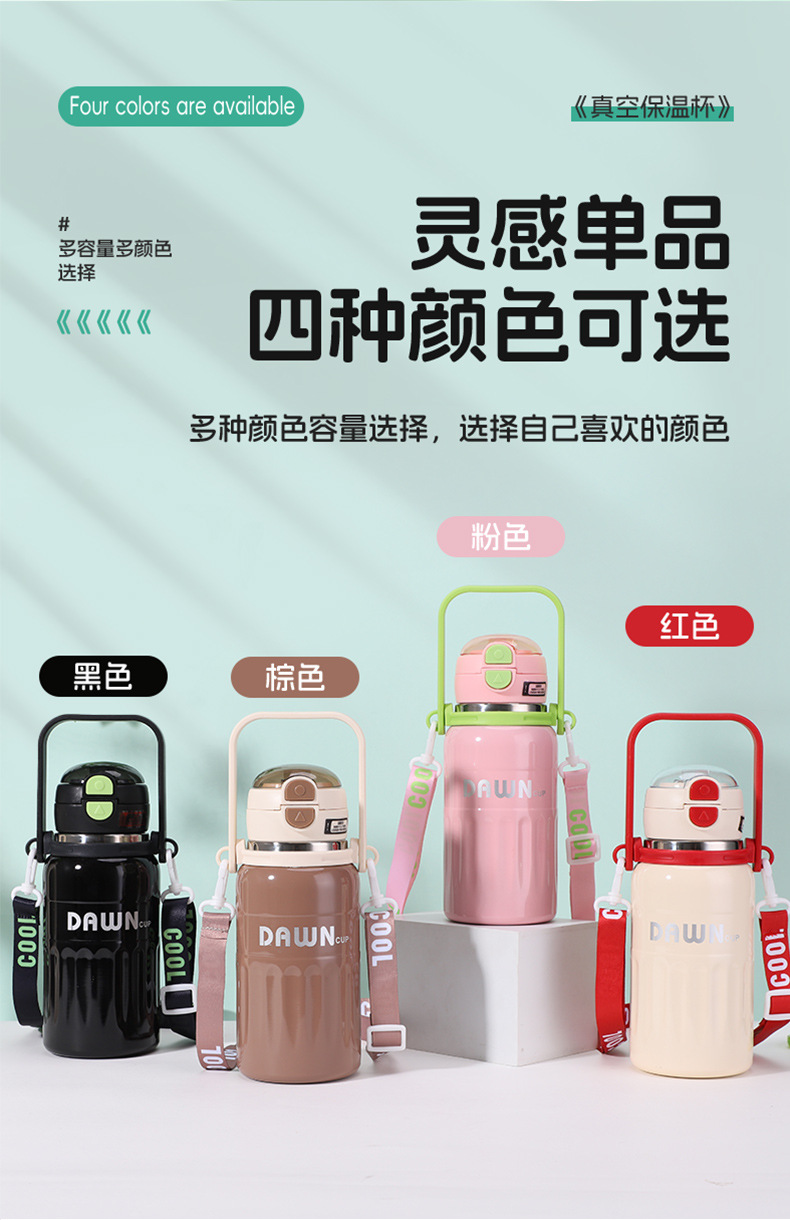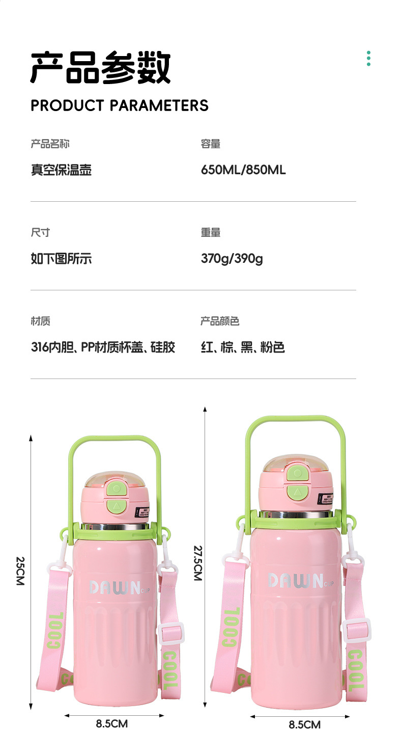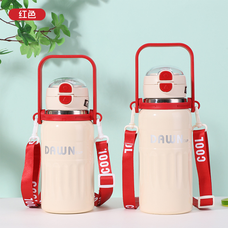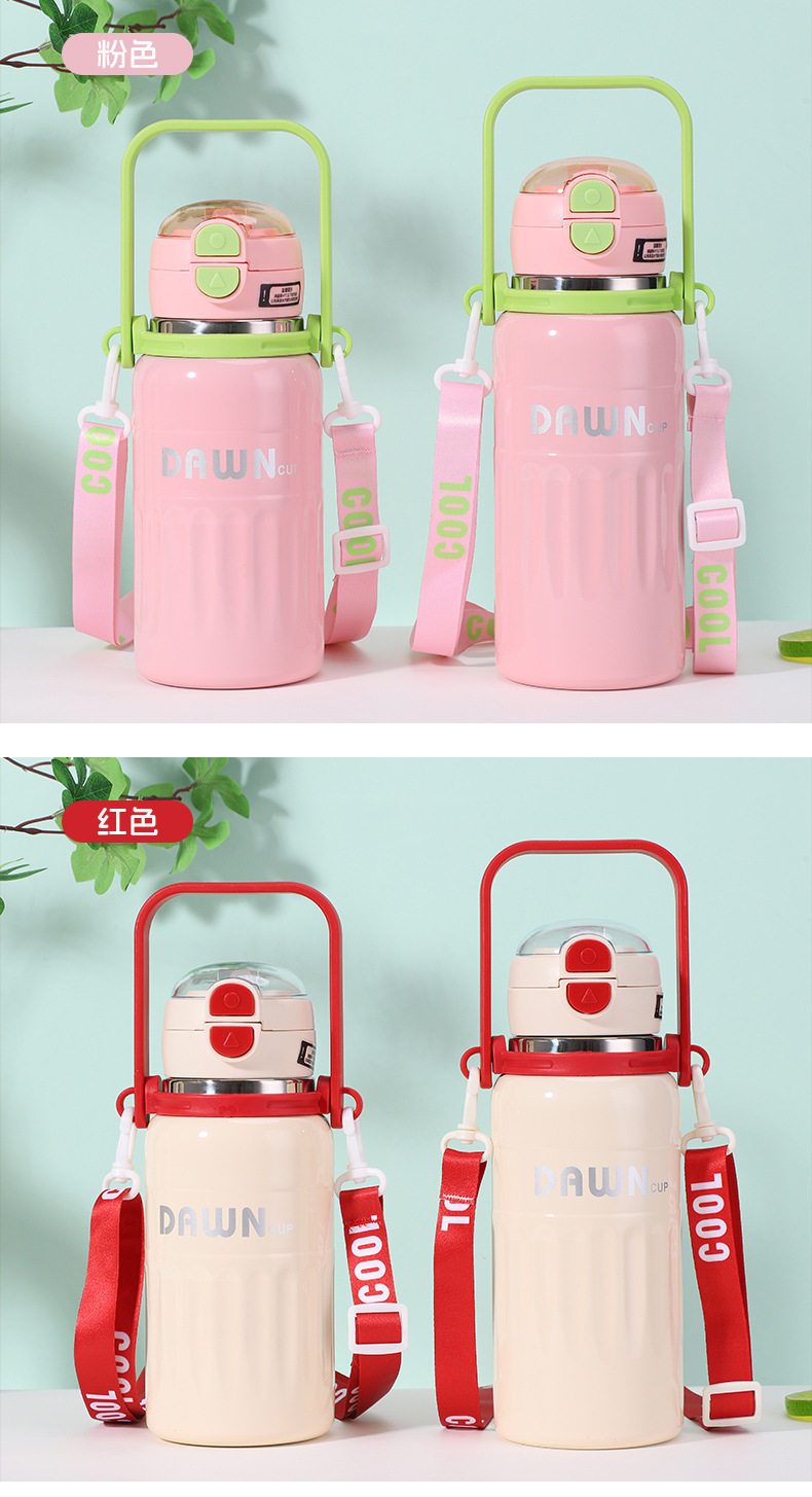 316 스테인레스 스틸 대용량 보온병 컵 스트랩 손잡이 주전자 더블 마시는 빨대 바운스 야외 등산 워터 컵