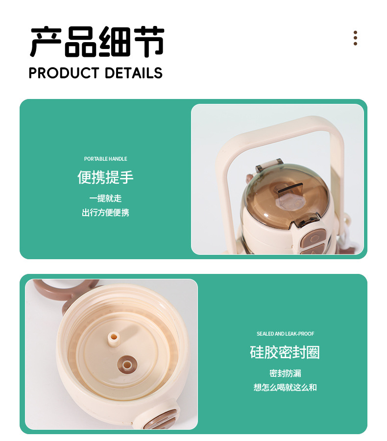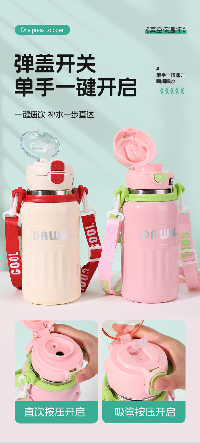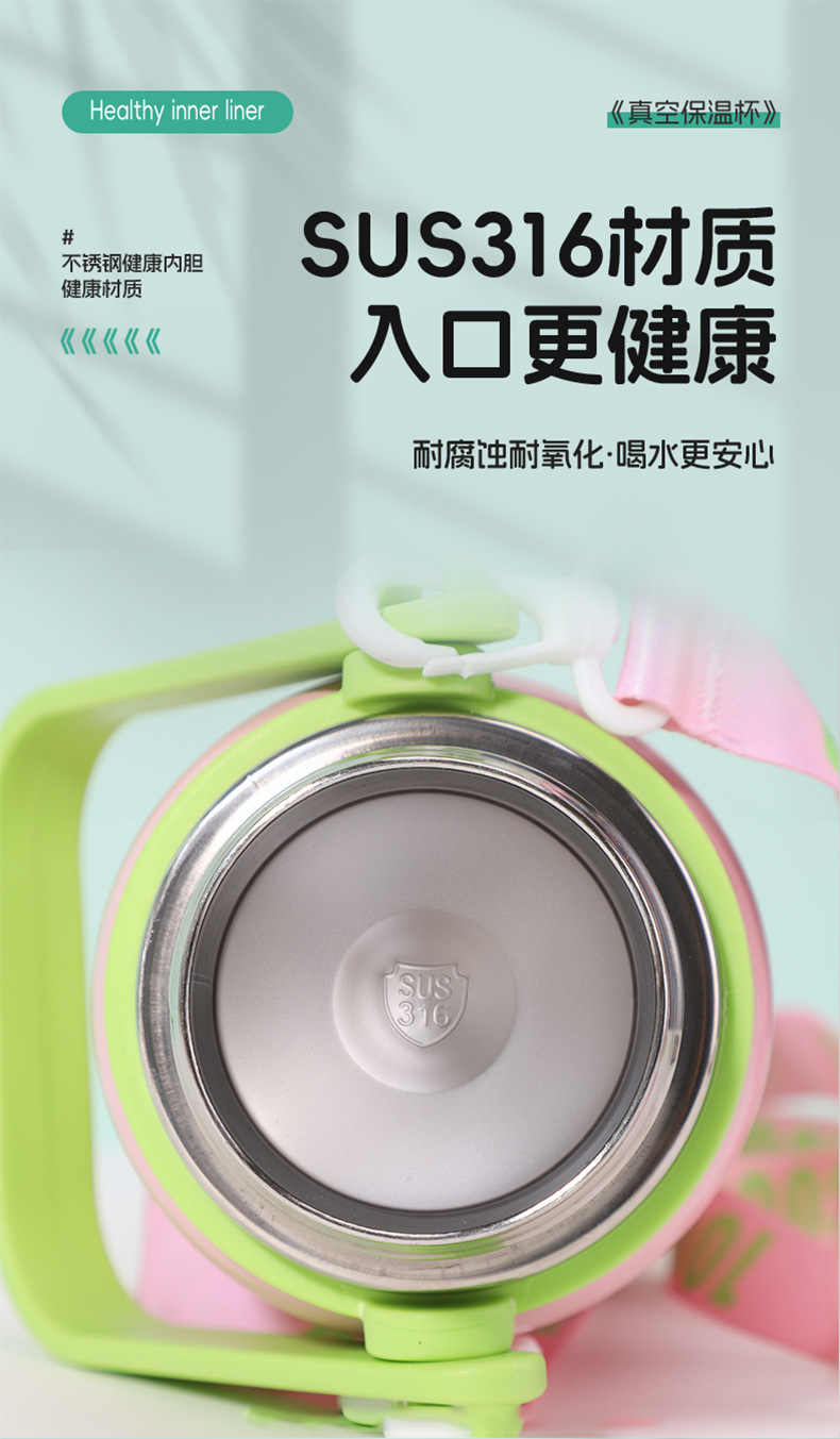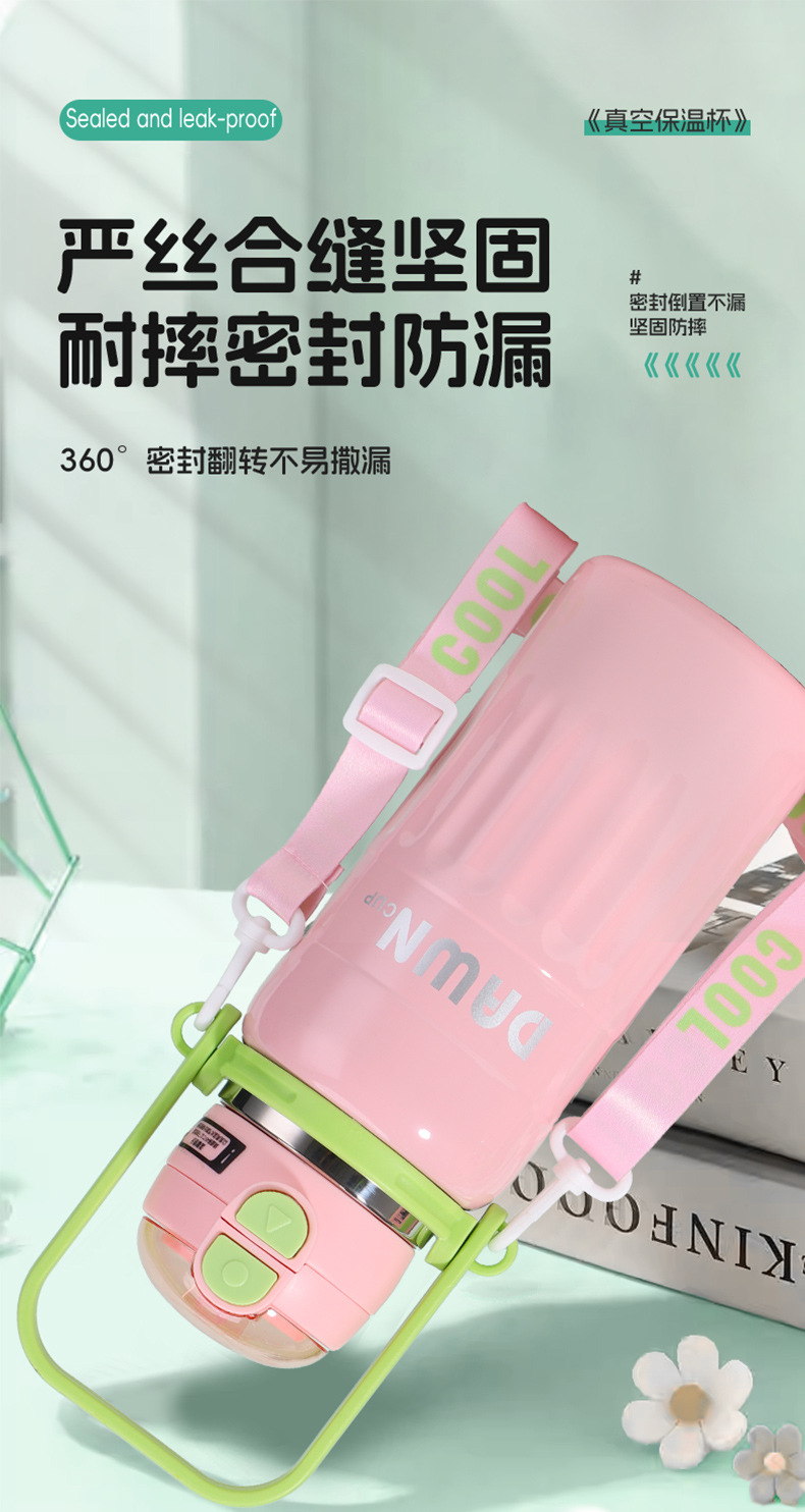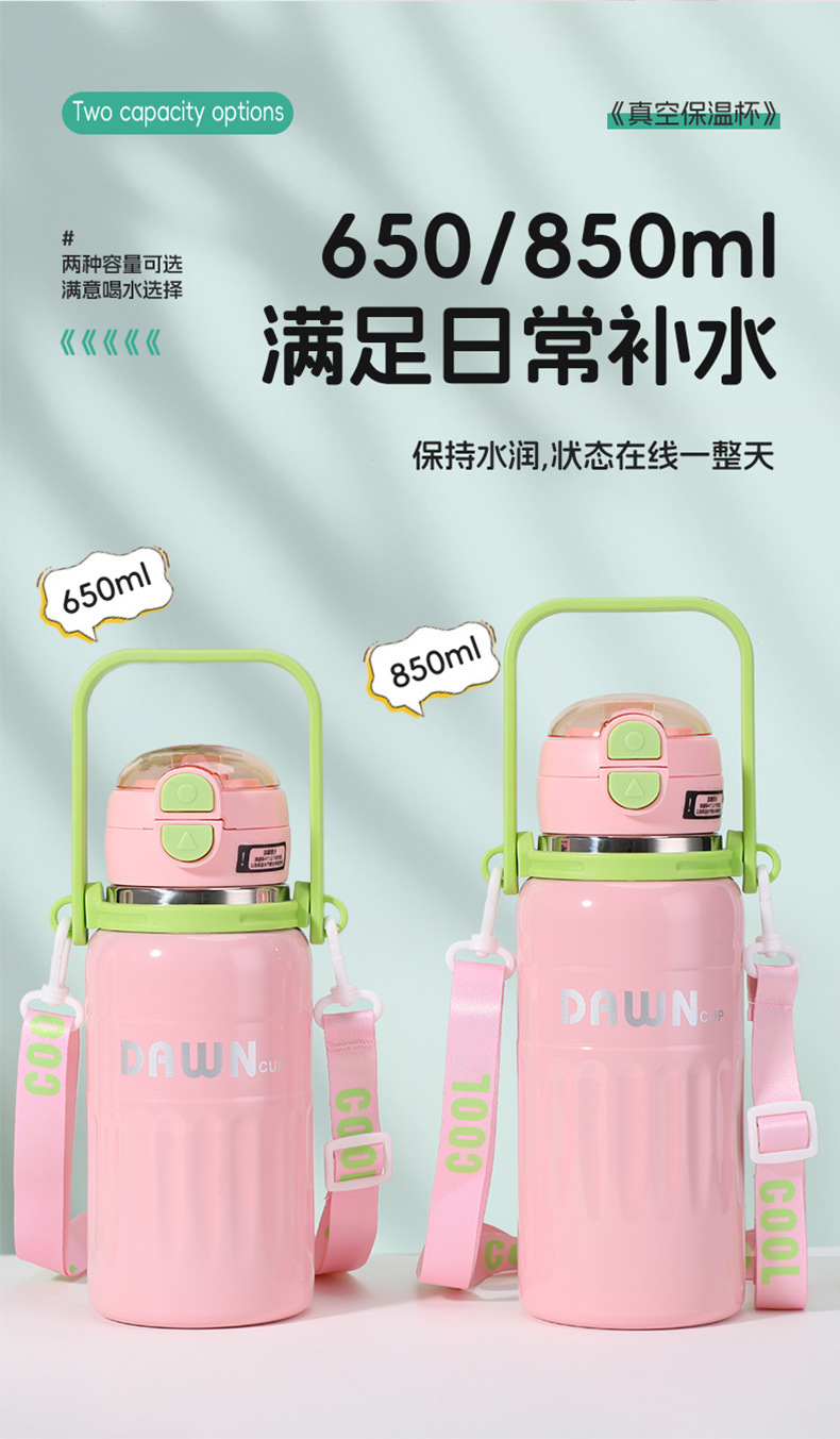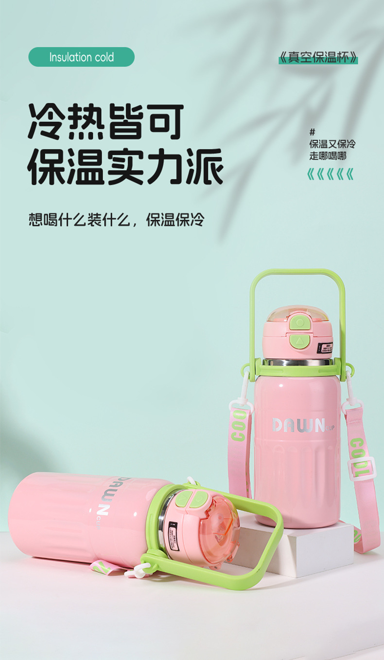 316 스테인레스 스틸 대용량 보온병 컵 스트랩 손잡이 주전자 더블 마시는 빨대 바운스 야외 등산 워터 컵