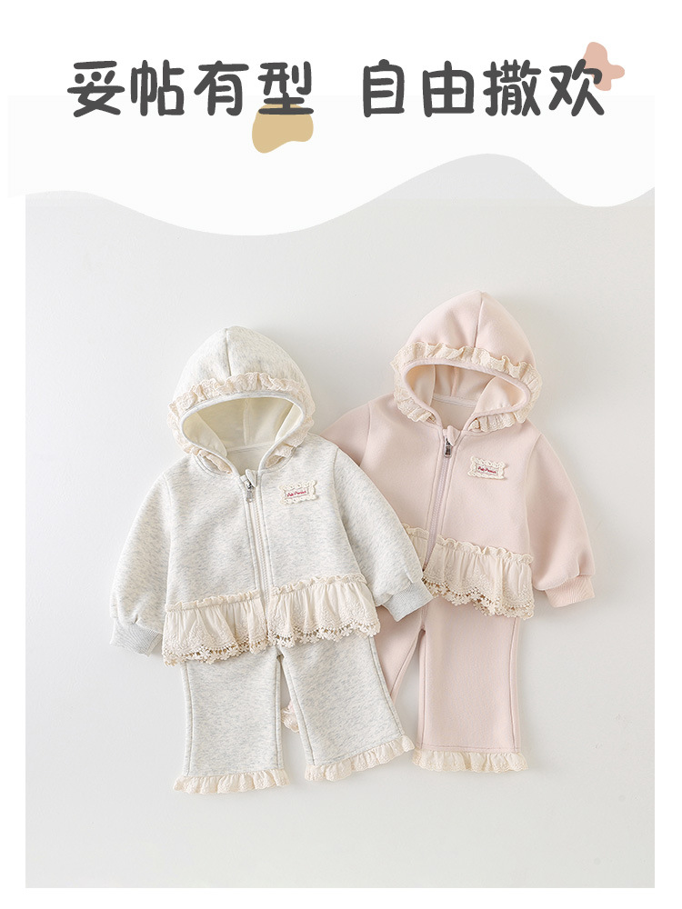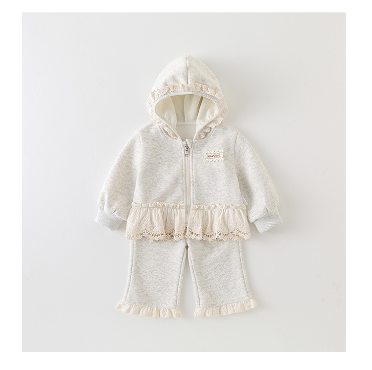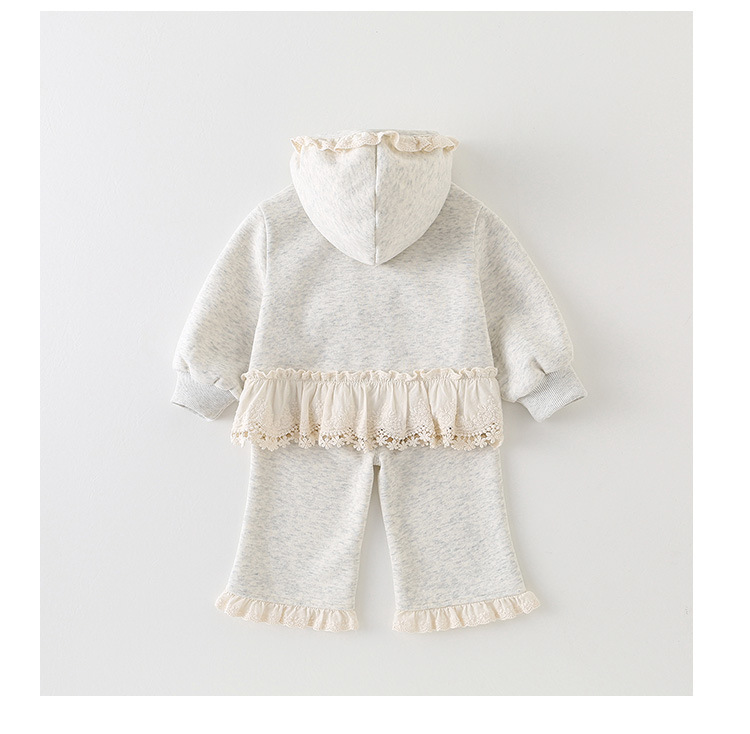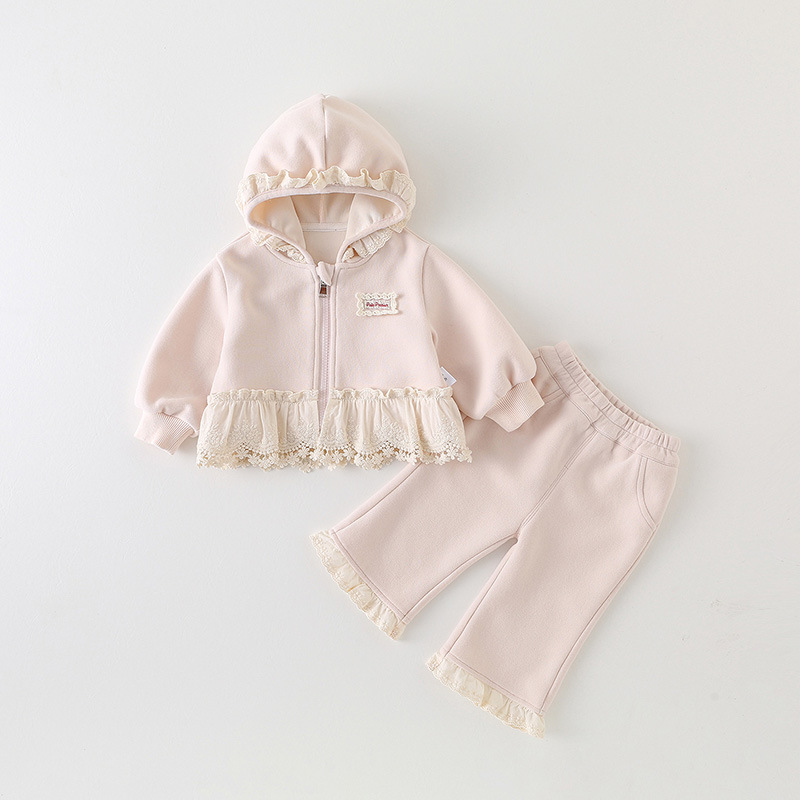 여자 정장 2025 새로운 가을 스타일 아기 소녀 레이스 후드 자켓과 바지 유아 및 어린이를위한 투피스 세트 카테고리 a