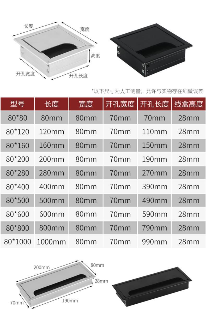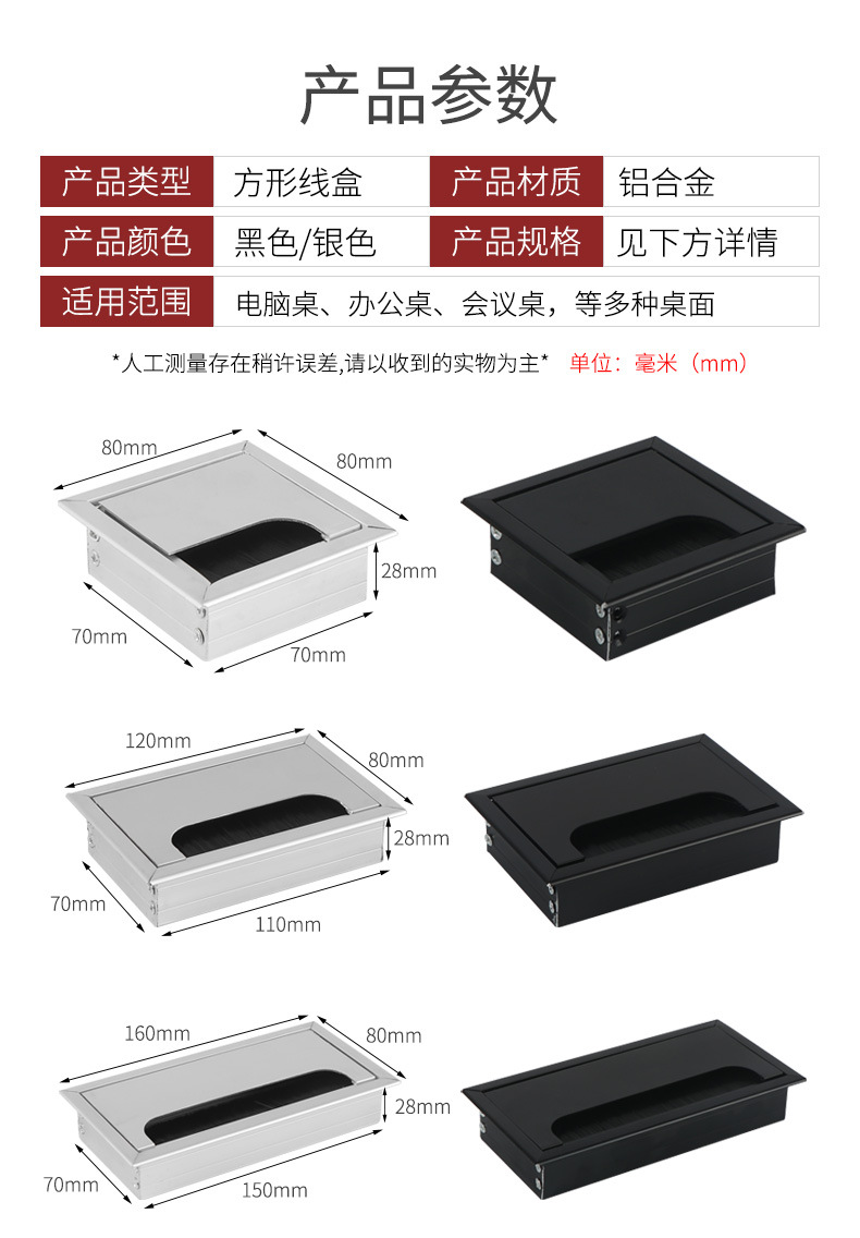 아연 합금 사각형 구멍 커버 스레딩 박스 데스크 와이어 정리 상자 컴퓨터 책상 콘센트 구멍 플립 커버 케이블 커버