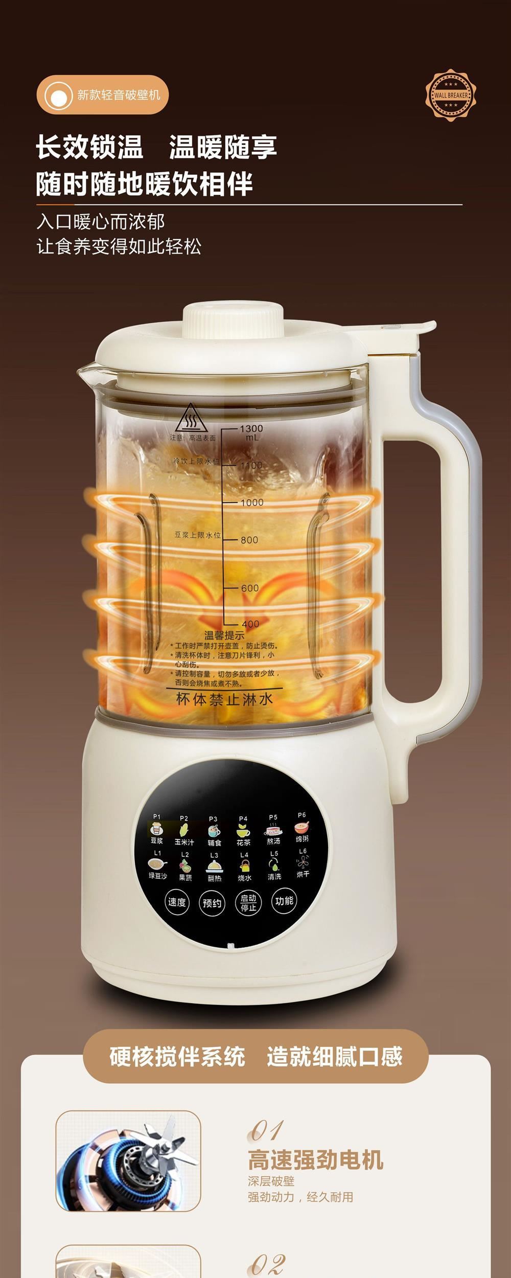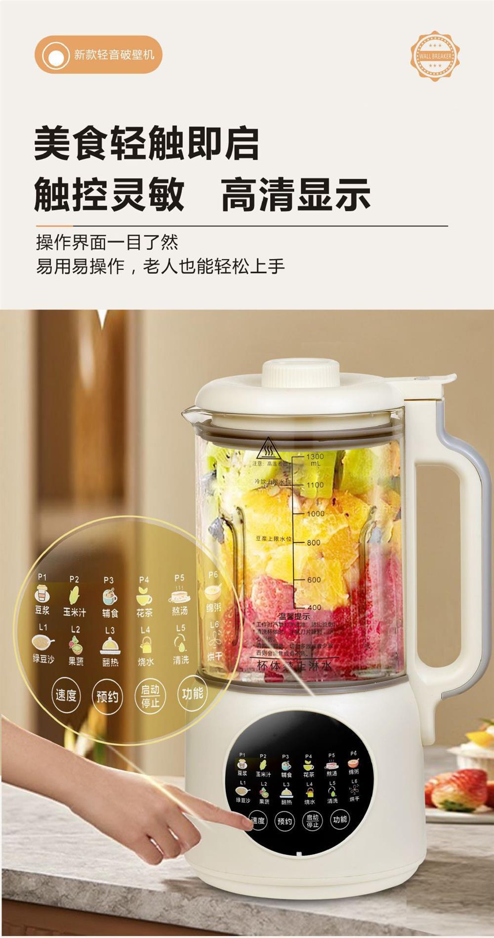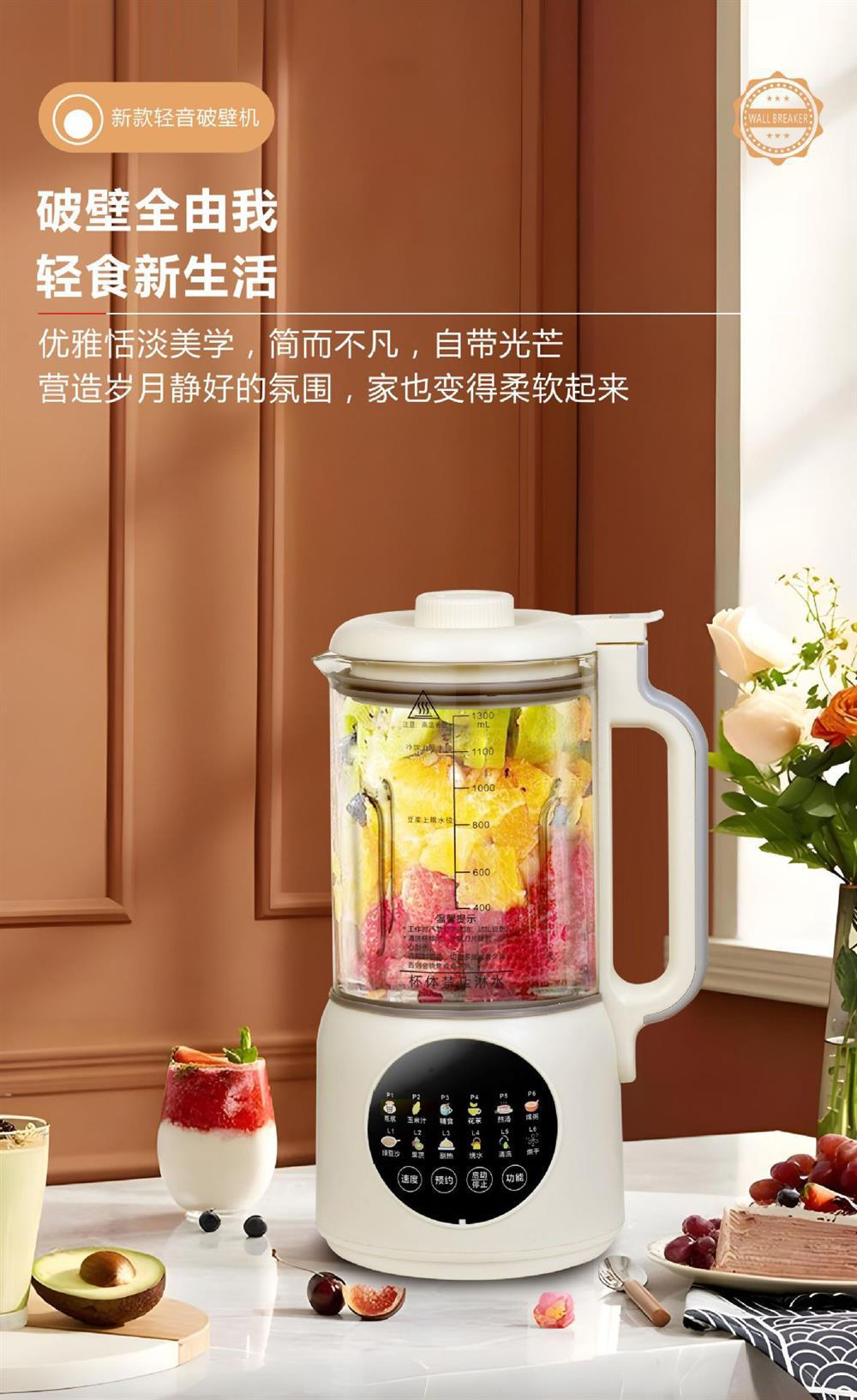 국경 간 대외 무역 소형 가벼운 소리 가열 통합 두유 기계 1.3L 미니 요리 기계 벽 파괴 기계 가공 및 사용자 정의