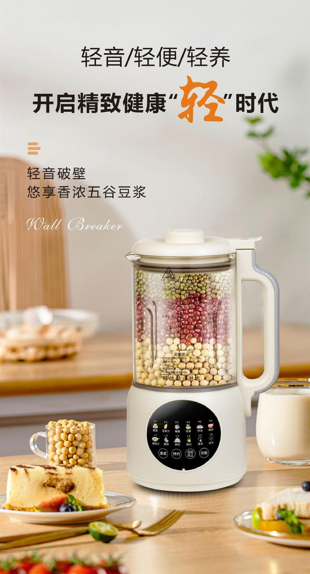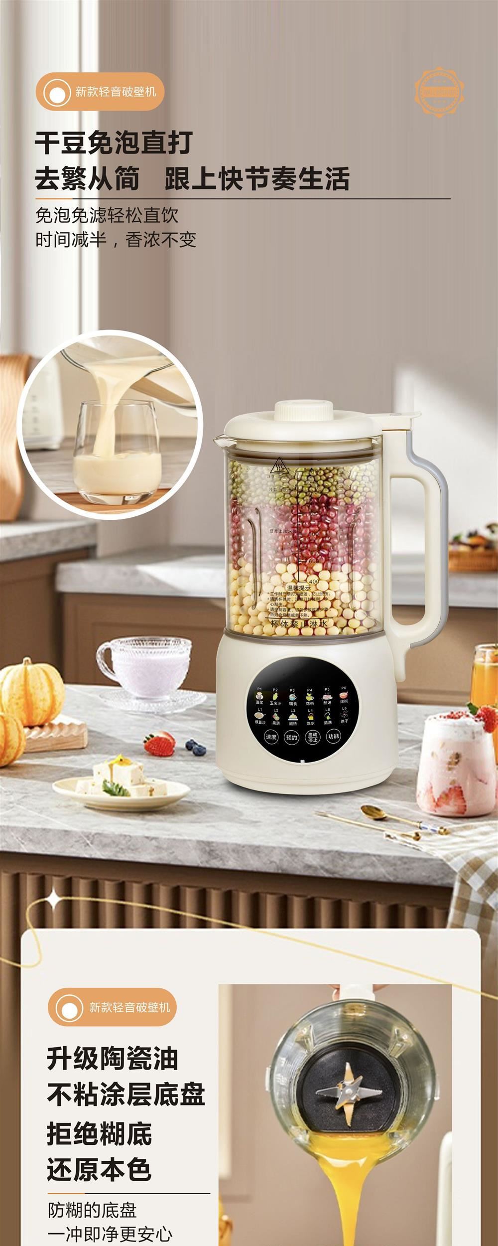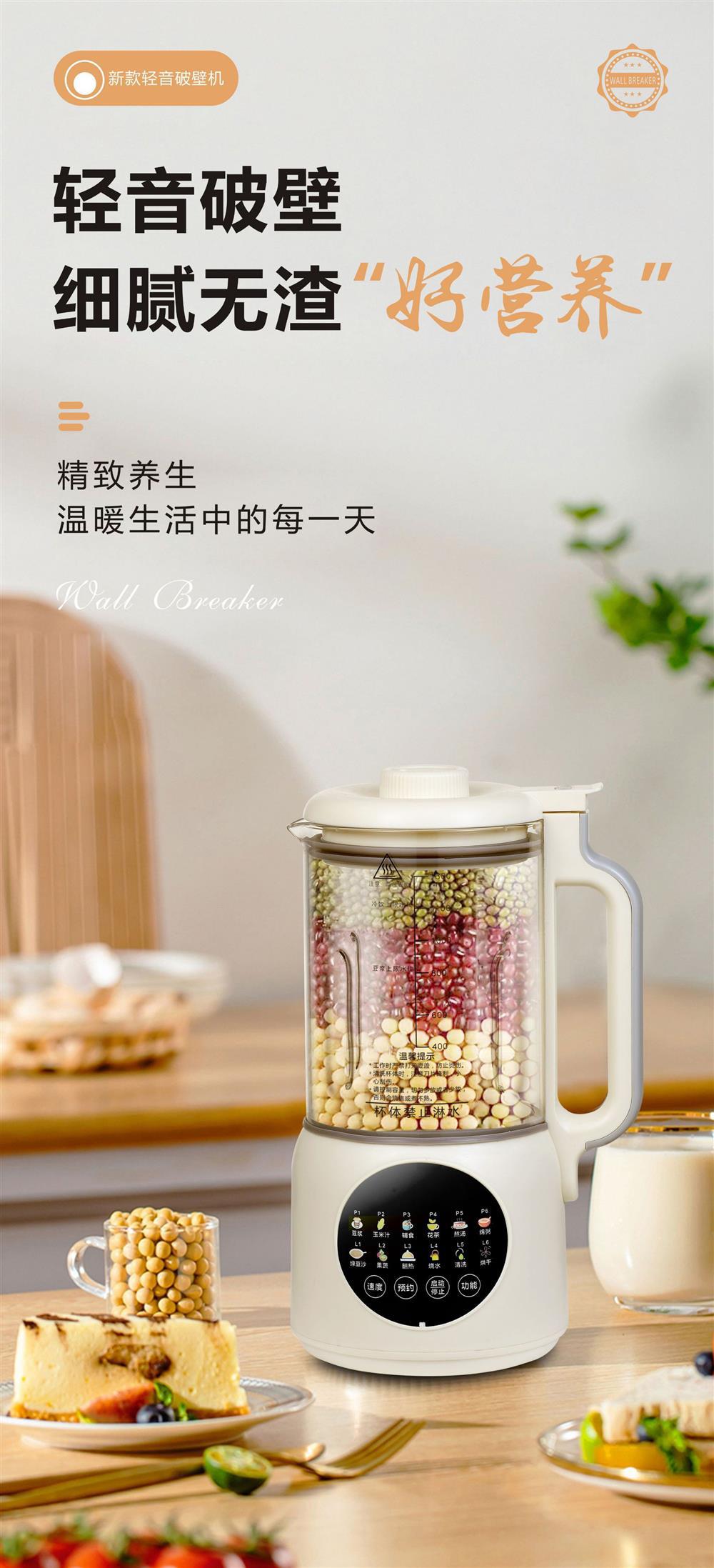 국경 간 대외 무역 소형 가벼운 소리 가열 통합 두유 기계 1.3L 미니 요리 기계 벽 파괴 기계 가공 및 사용자 정의