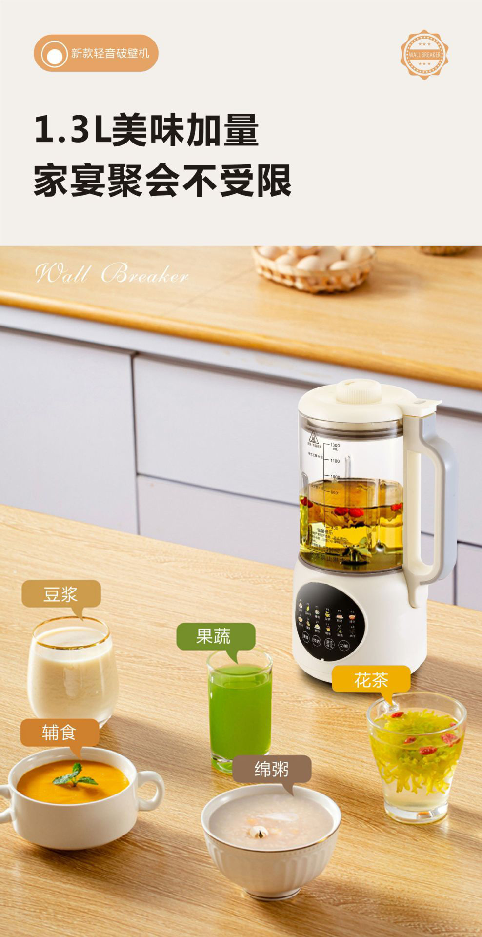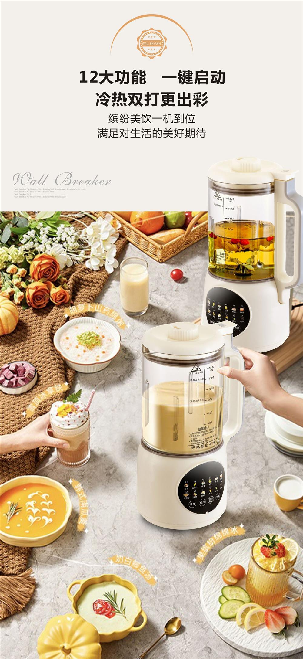 국경 간 대외 무역 소형 가벼운 소리 가열 통합 두유 기계 1.3L 미니 요리 기계 벽 파괴 기계 가공 및 사용자 정의스토어 가기