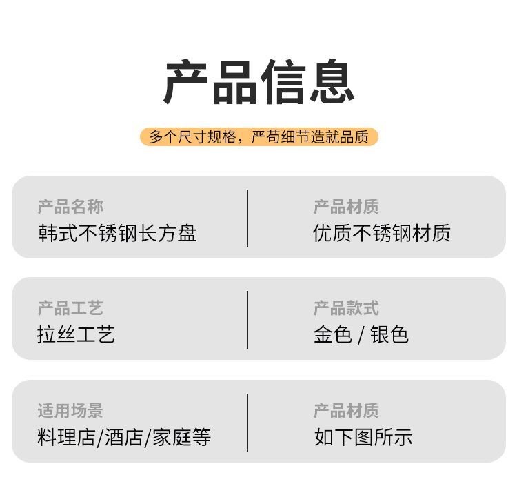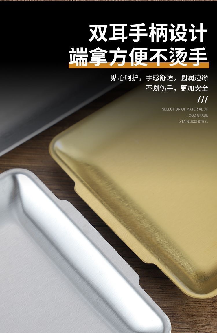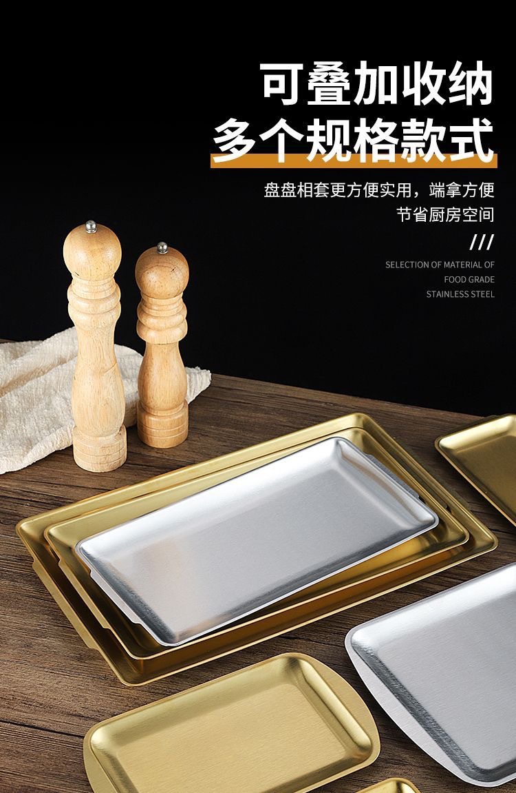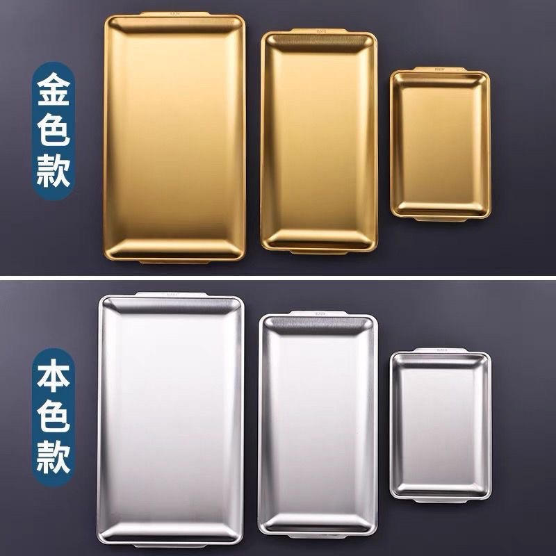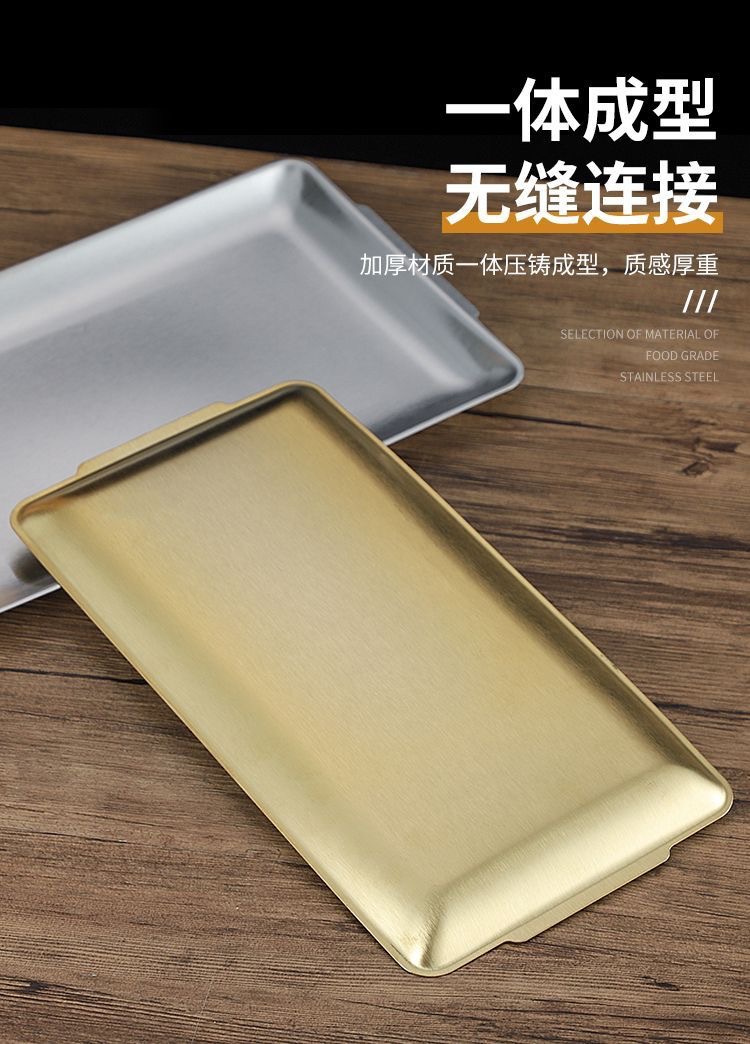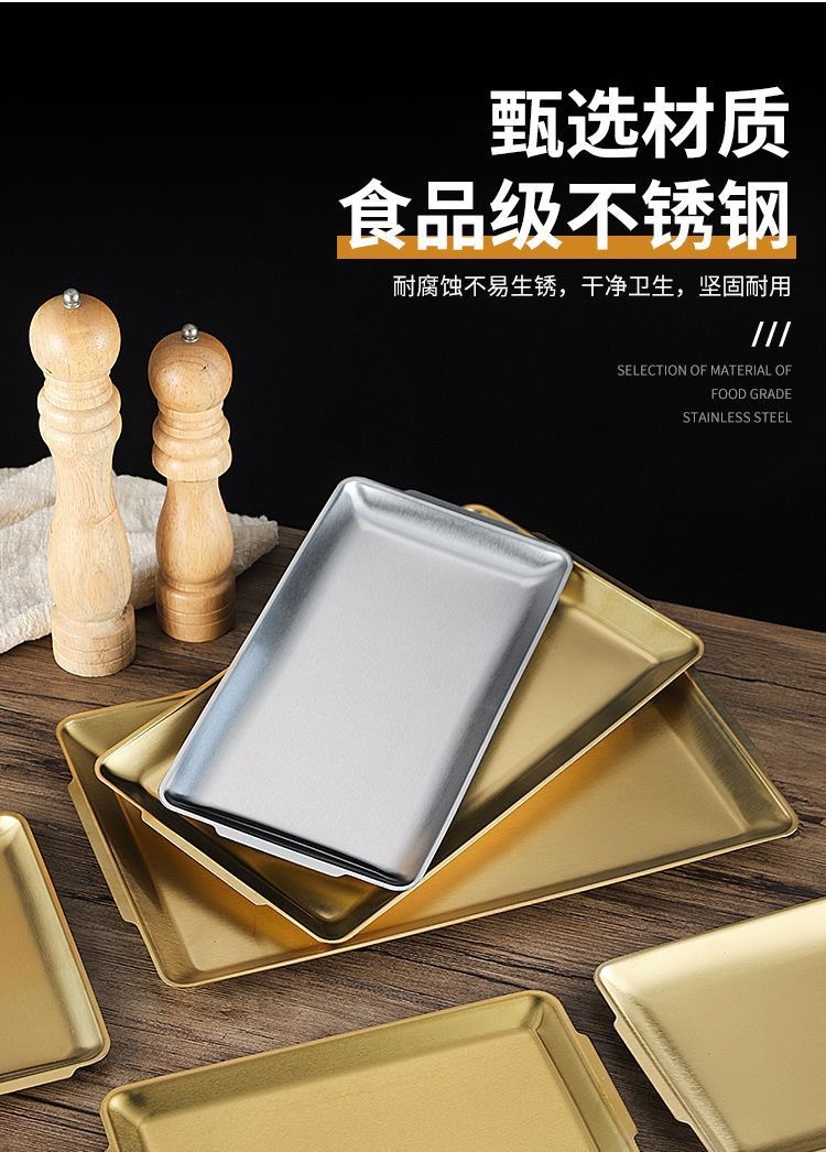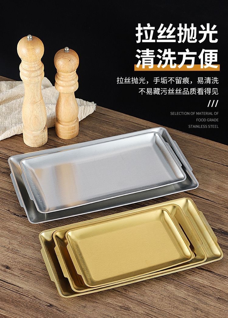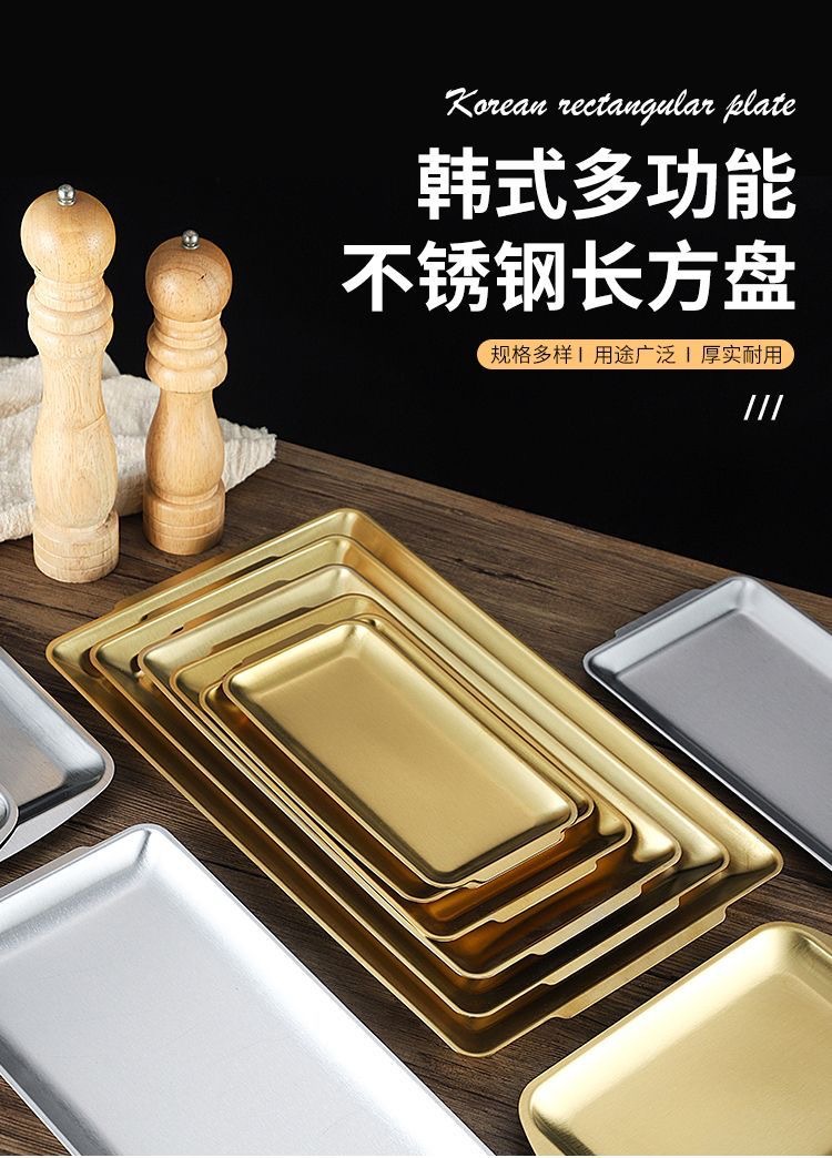 304 스테인레스 스틸 접시 한국 사각형 접시 레스토랑 상업용 직사각형 황금 평면 접시 트레이 준비 접시 바베큐 접시스토어 가기