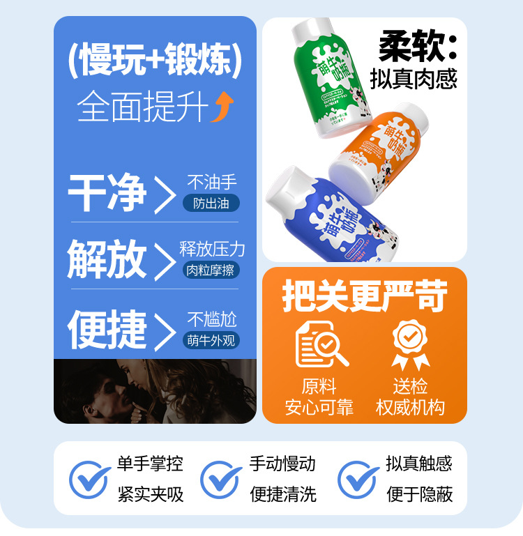 Jiuai 귀여운 우유 병 자위 유물, 유명한 페니스 트레이너, 비행기 컵, 남성용 섹스 토이