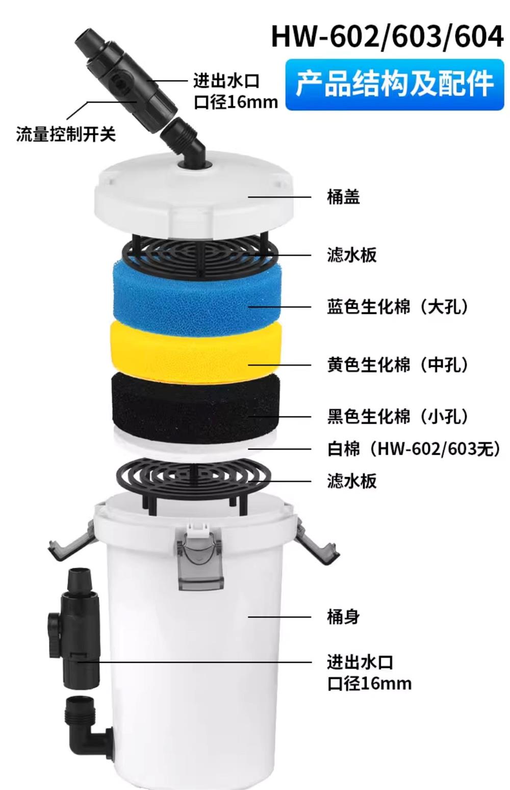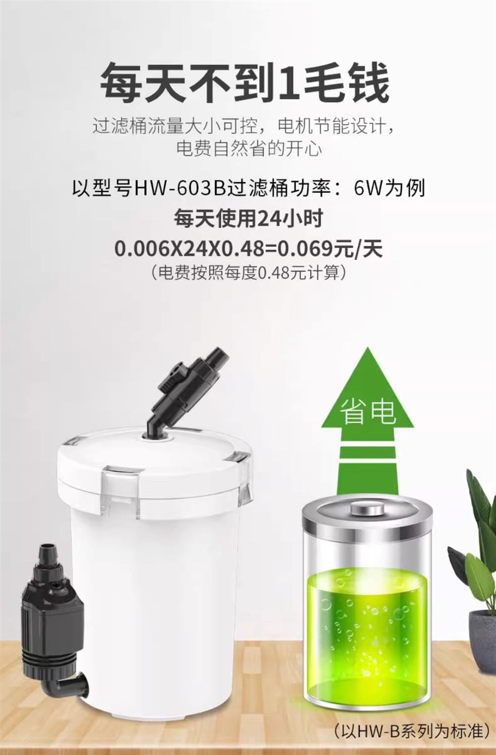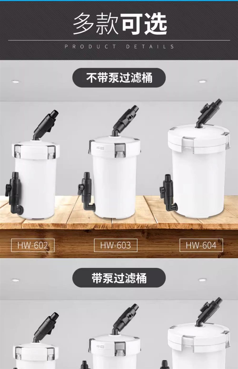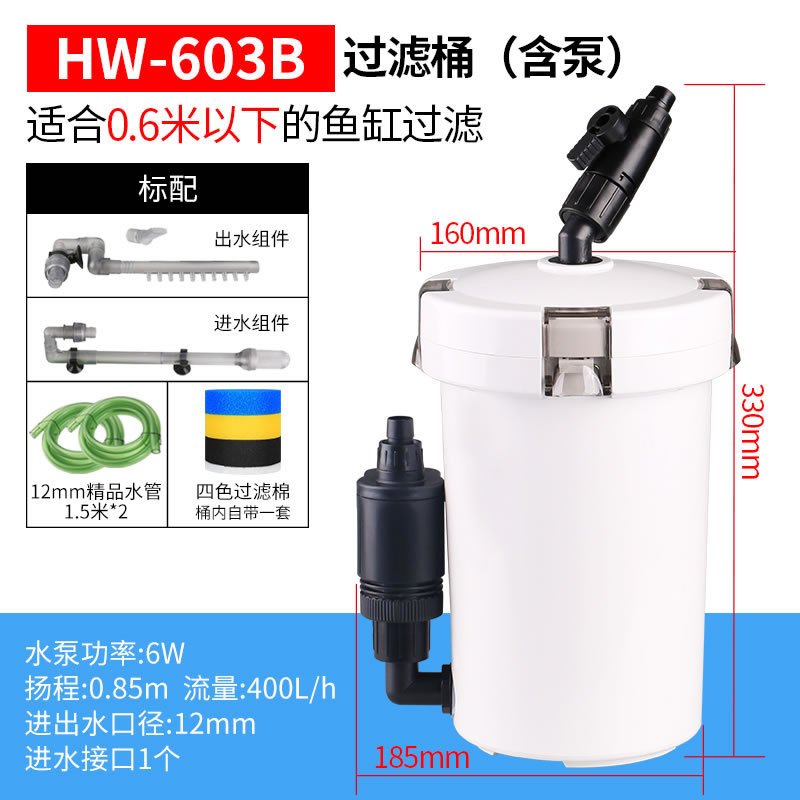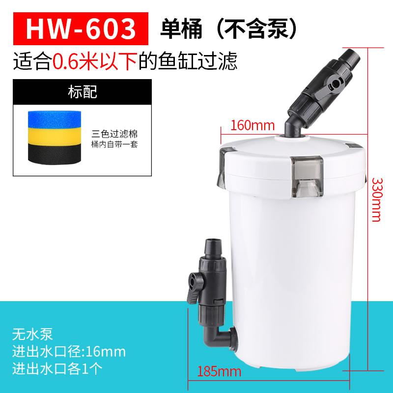 • HW-603(펌프가 없는 단일 배럴)은 0.6m 미만의 어항에 적합합니다.