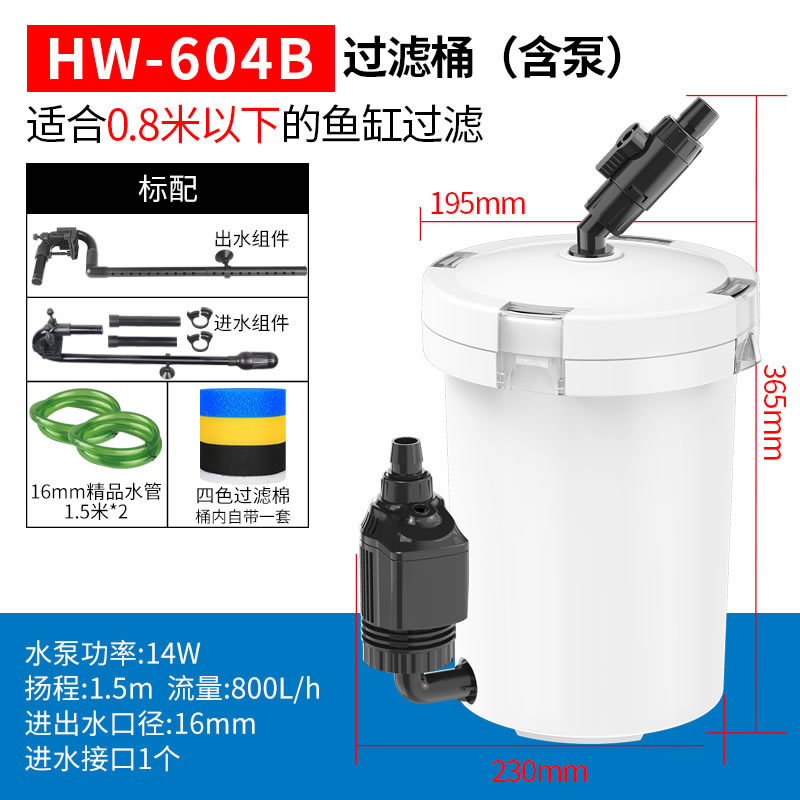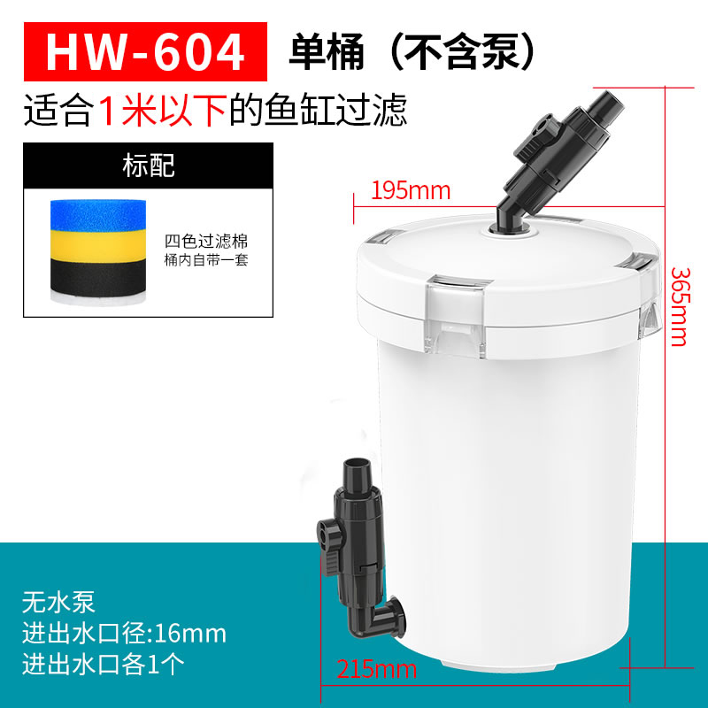 • HW-604(펌프가 없는 단일 배럴)는 1m 미만의 어항에 적합합니다.