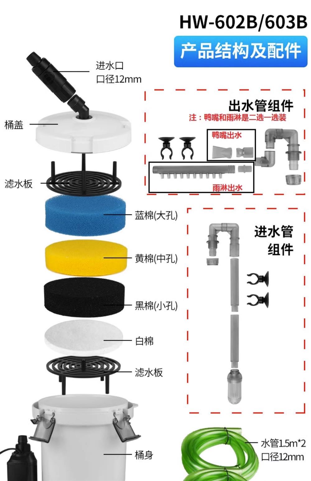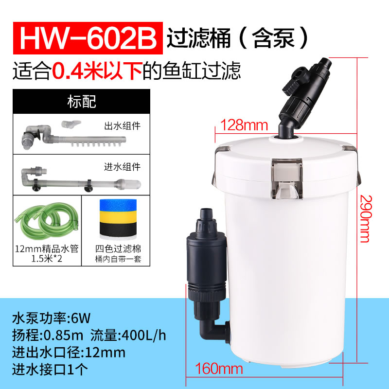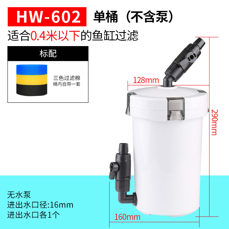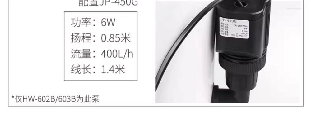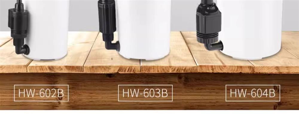 • HW-602(펌프가 없는 단일 배럴)는 0.4m 이하의 어항에 적합합니다.