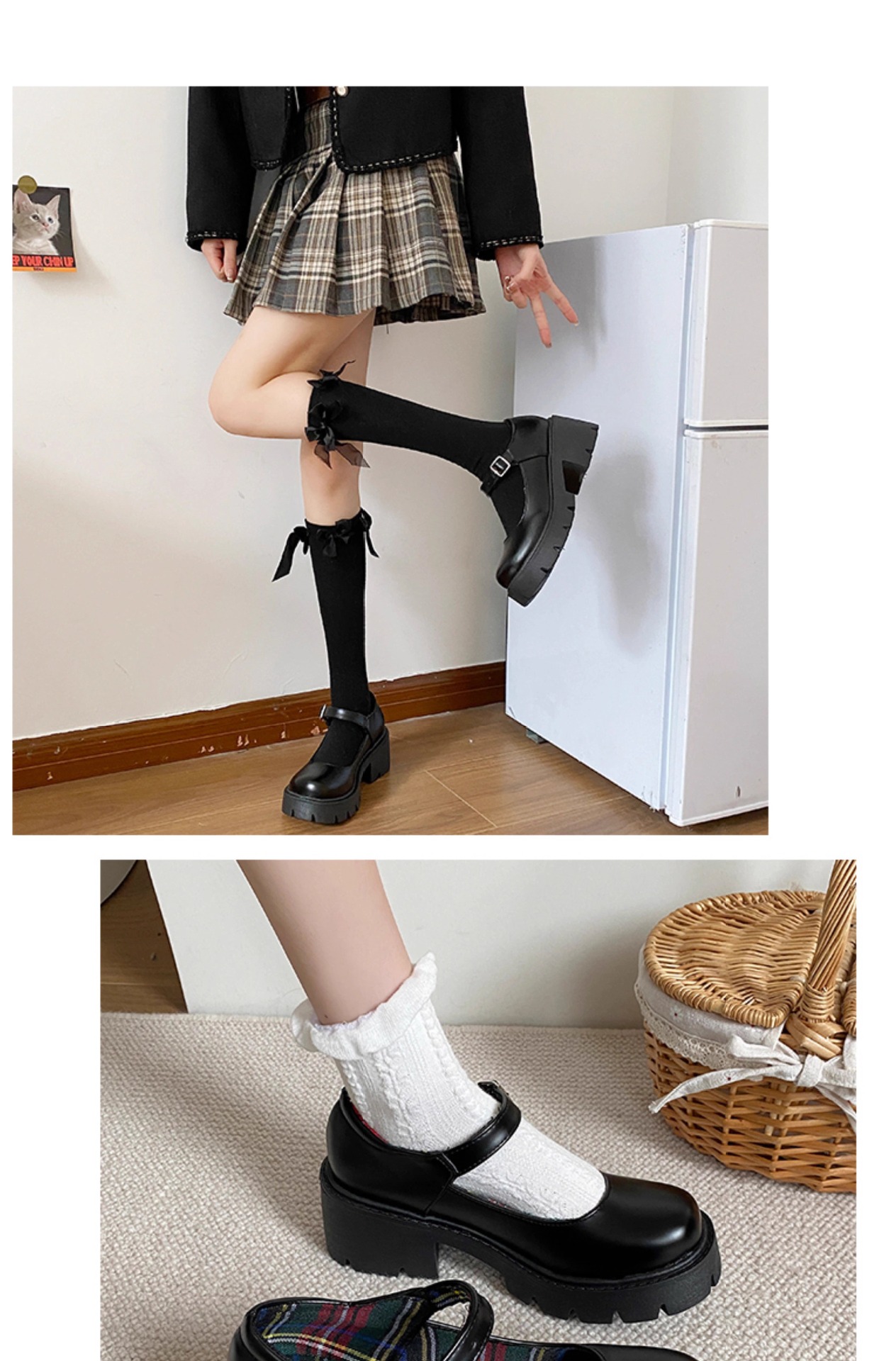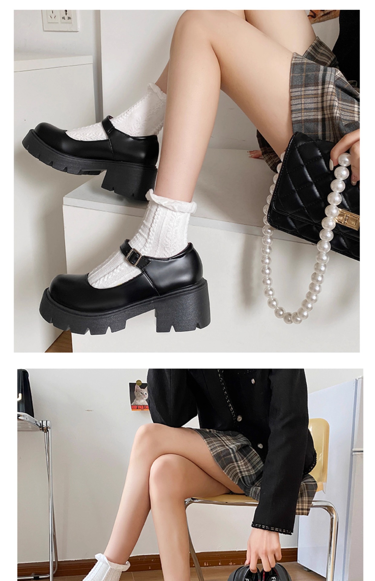 메리 제인 여성용 작은 가죽 신발 2025 새로운 봄 하이힐 두꺼운 밑창 일본 jk 신발 라운드 발가락 복고풍 봄, 가을 신발스토어 가기