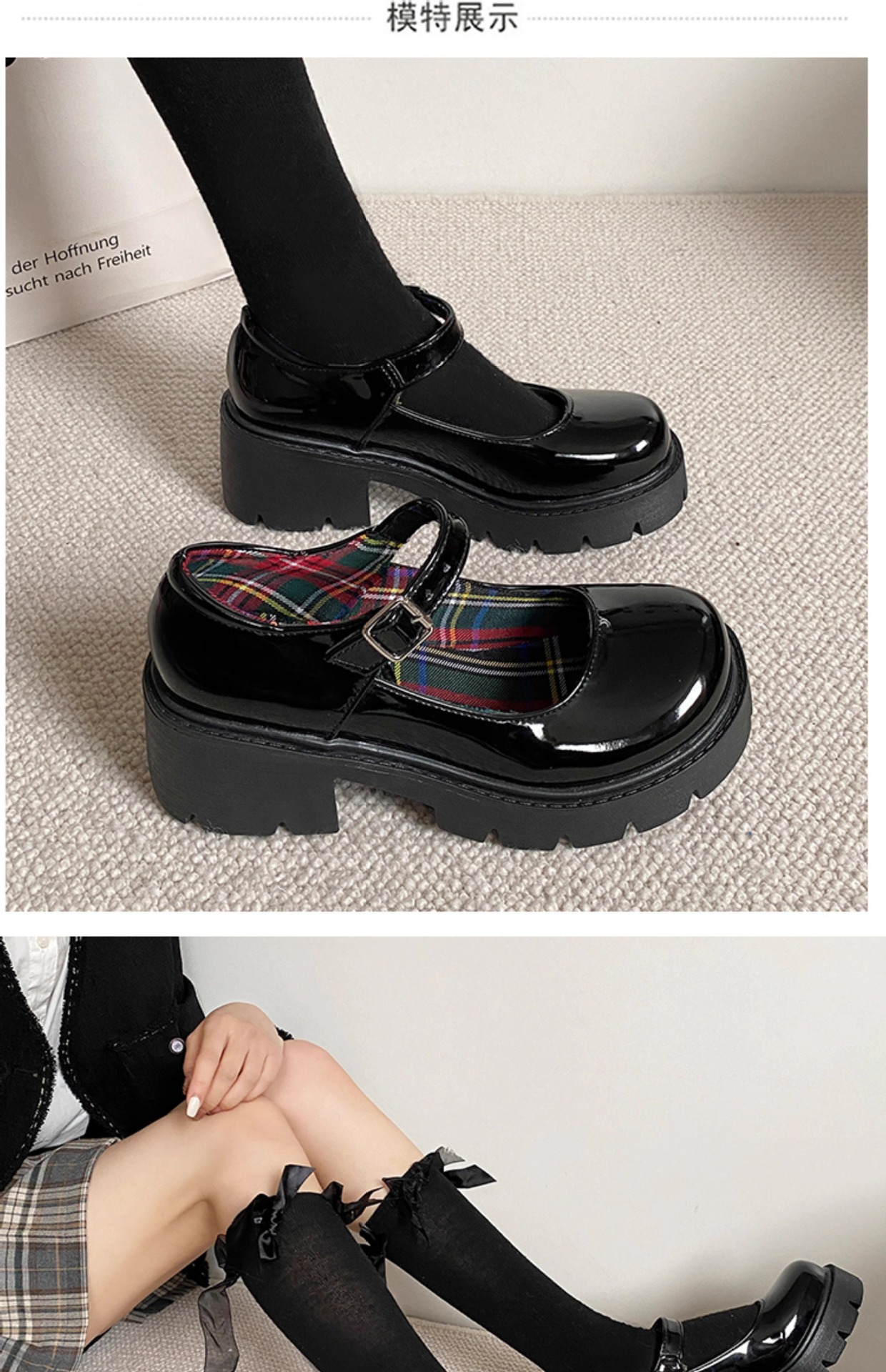 메리 제인 여성용 작은 가죽 신발 2025 새로운 봄 하이힐 두꺼운 밑창 일본 jk 신발 라운드 발가락 복고풍 봄, 가을 신발