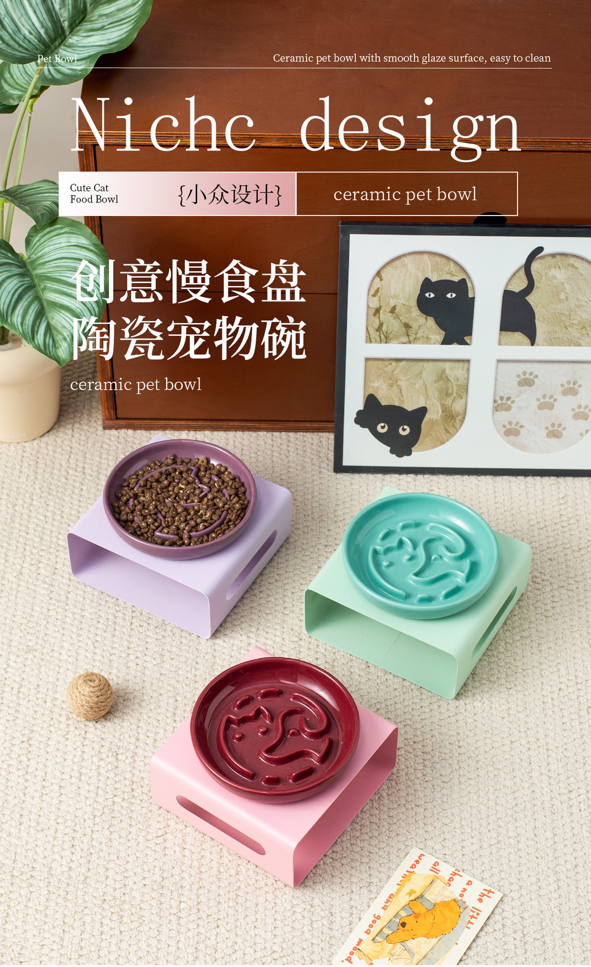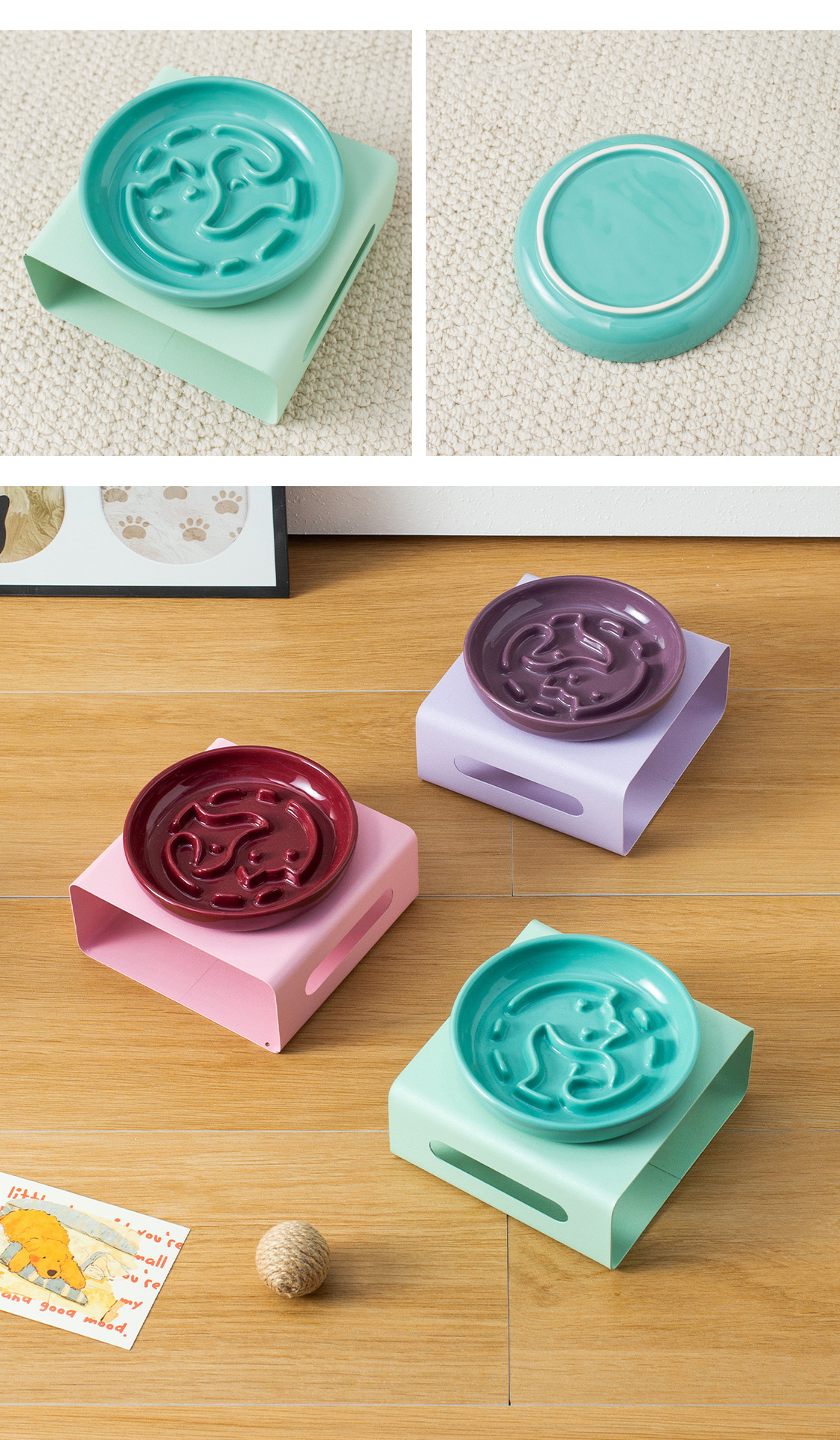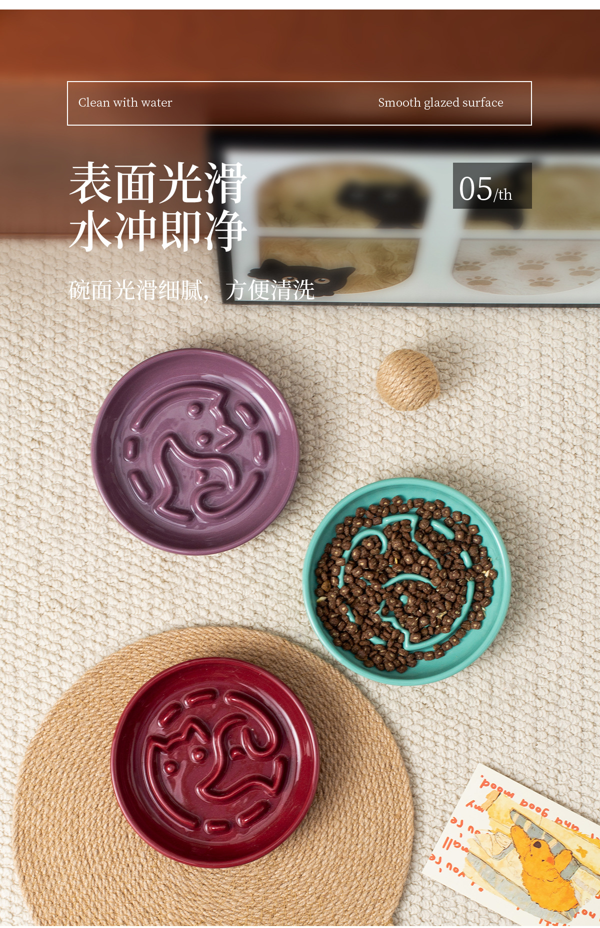 창의적인 만화 고양이와 개 패턴 느린 식사 접시 세라믹 질식 방지 느린 식사 그릇 고양이와 개를 넘어뜨리는 방지 그릇 애완 동물 느린 식사 그릇