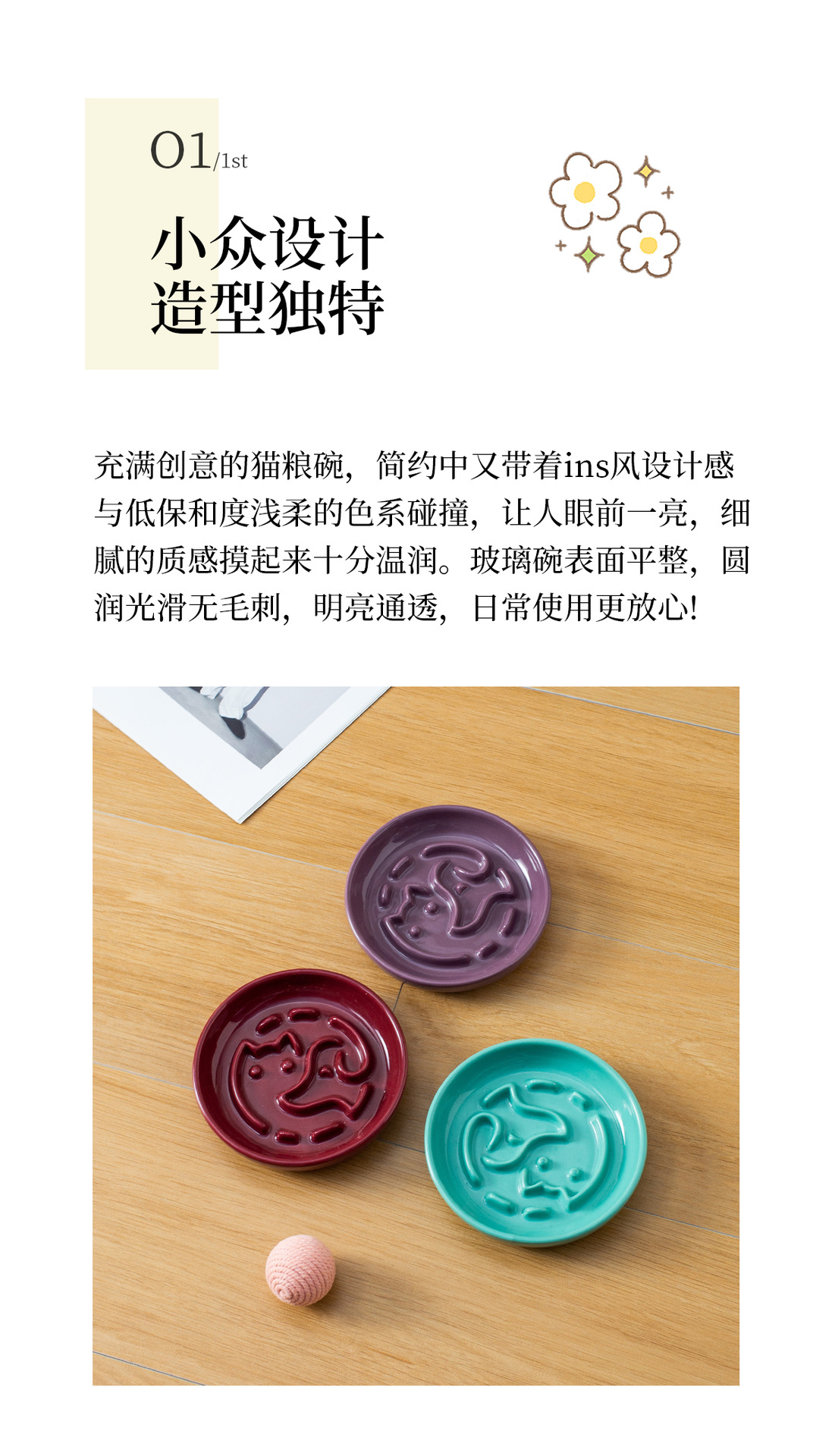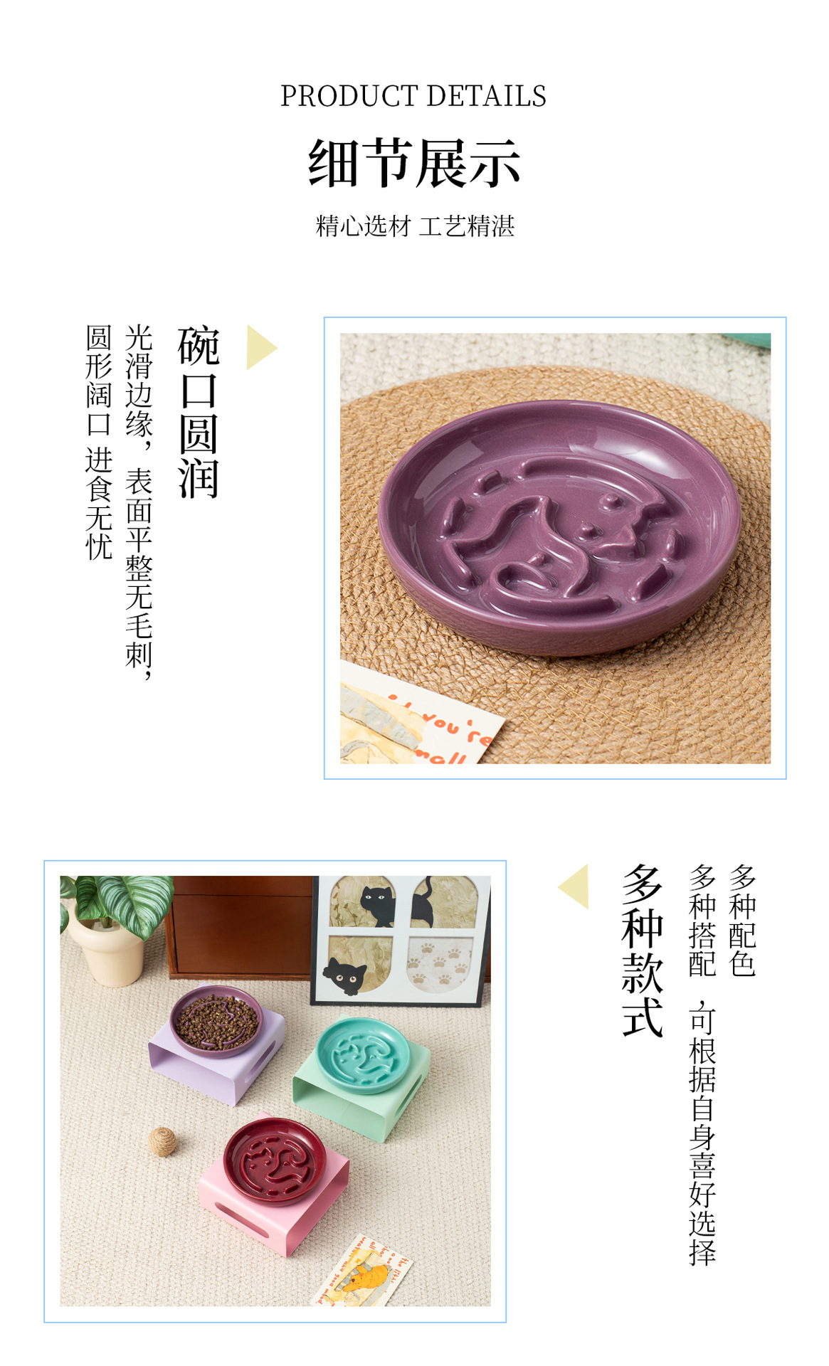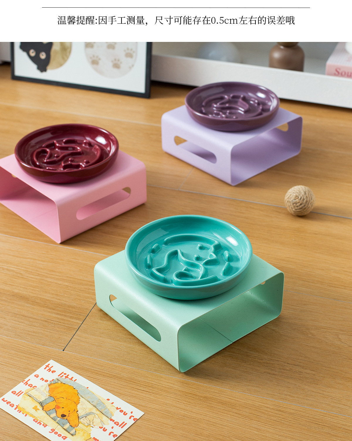 창의적인 만화 고양이와 개 패턴 느린 식사 접시 세라믹 질식 방지 느린 식사 그릇 고양이와 개를 넘어뜨리는 방지 그릇 애완 동물 느린 식사 그릇