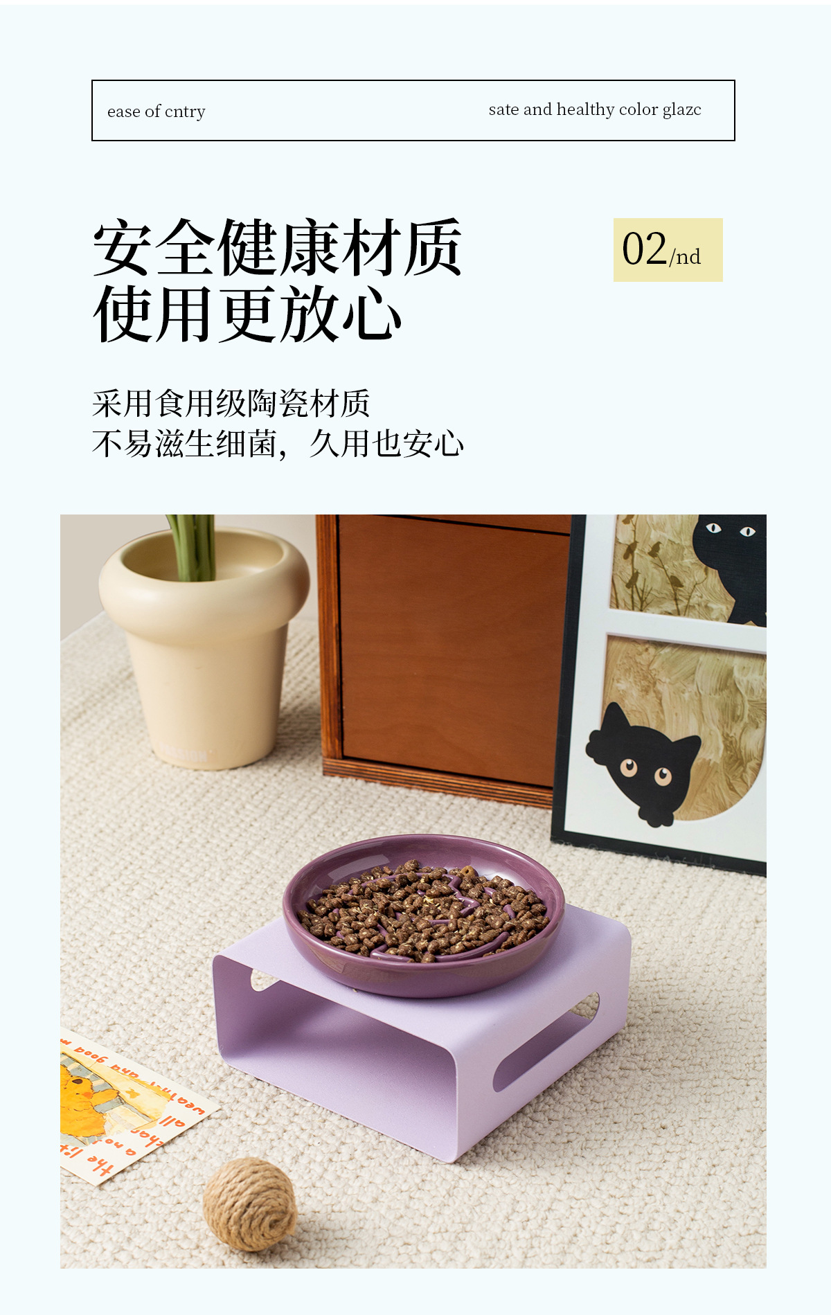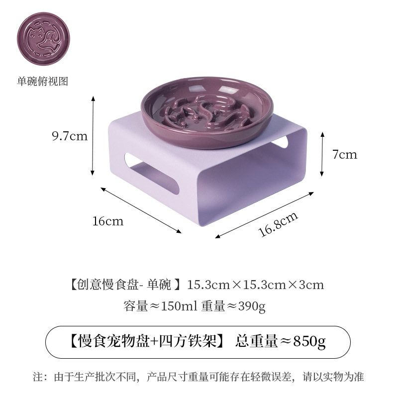 • 고양이와 강아지 옆모습 슬로우푸드 접시 [밝은 보라색] + 사각 철제 프레임 [보라색]
