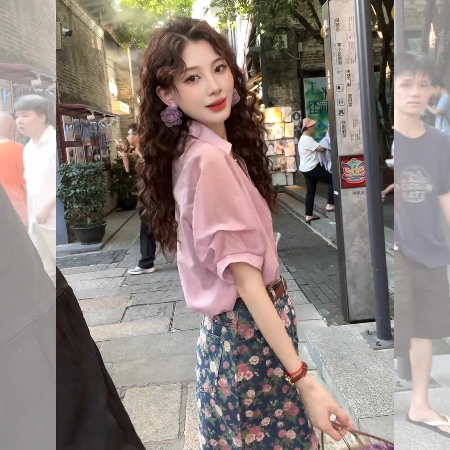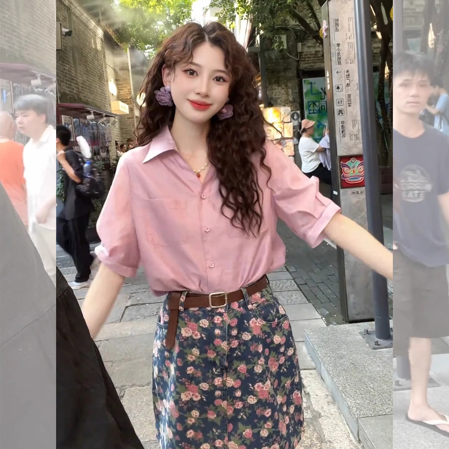 프렌치 부르고뉴 핑크 반팔 쉬폰 셔츠 여성 2025 신작 여름 셔츠 하이 엔드 퍼프 슬리브 탑스토어 가기