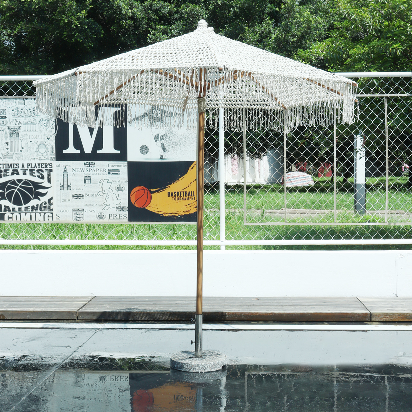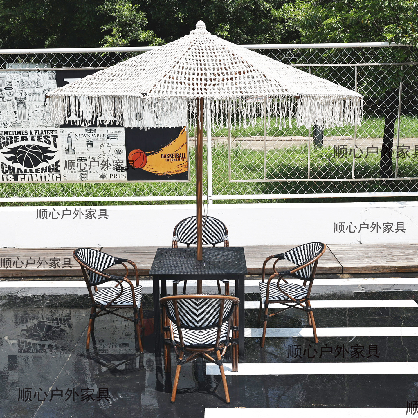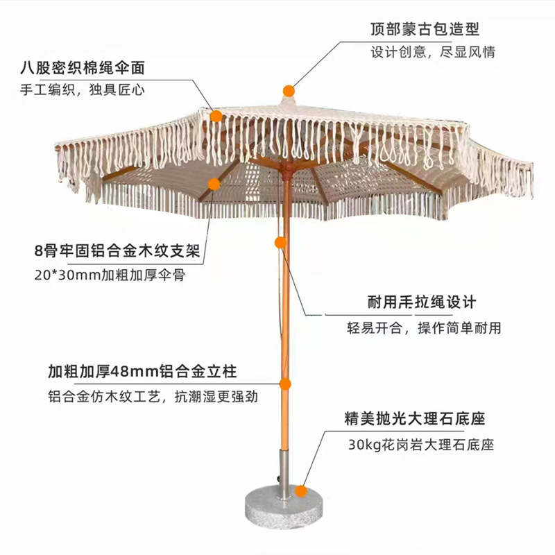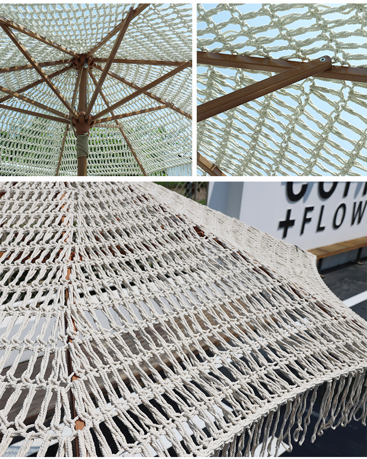 속이 빈 면 로프 술 파라솔 야외 대형 우산 장식 안뜰 정원 수영장 손으로 짠 해변 우산