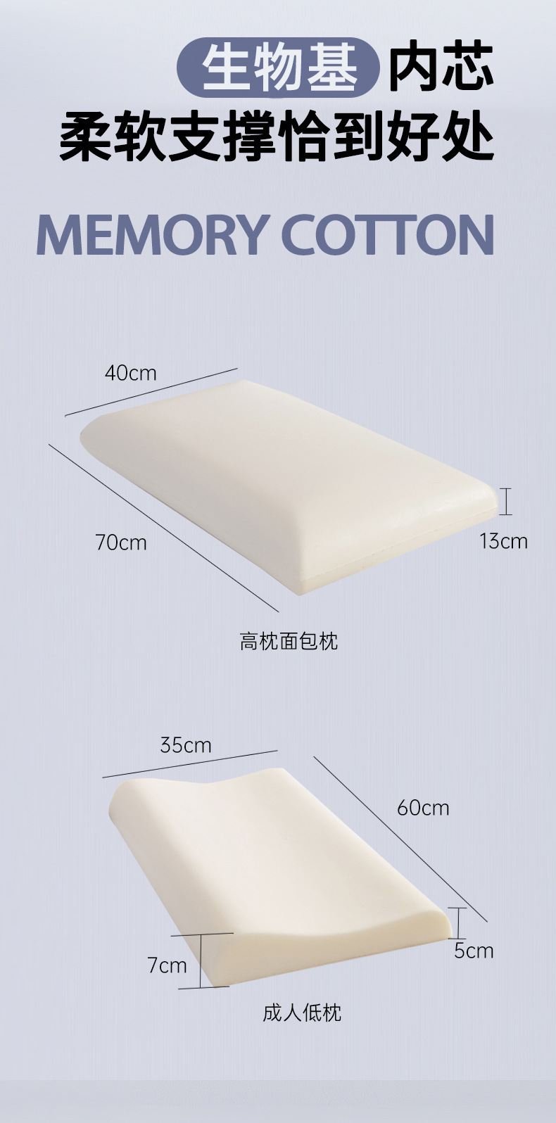 제로 압력 감각 생물 기반 메모리 베개 피부 친화적인 성인 낮은 베개 부드럽고 통기성이 있는 사계절 메모리 폼 목 베개