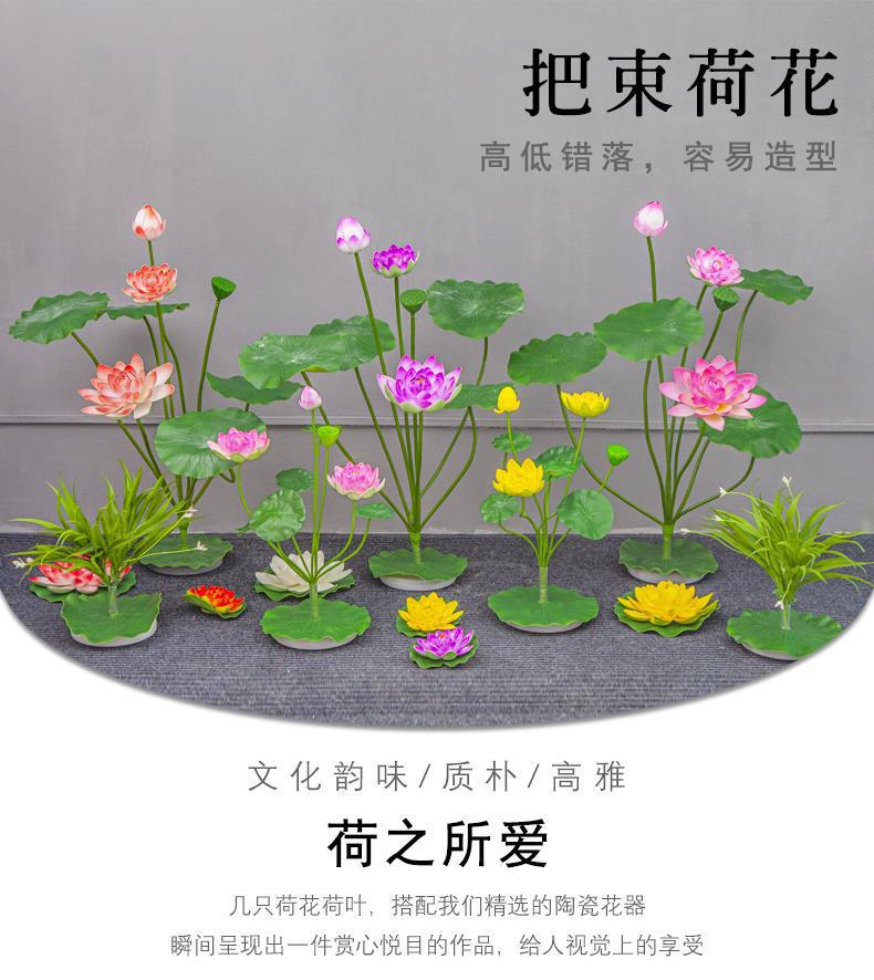 뜨거운 판매 플라스틱 가짜 연꽃 꽃 장식 연꽃 수조 수영장 장식 가짜 꽃 연꽃 잎 연꽃 사진 공연 소품스토어 가기