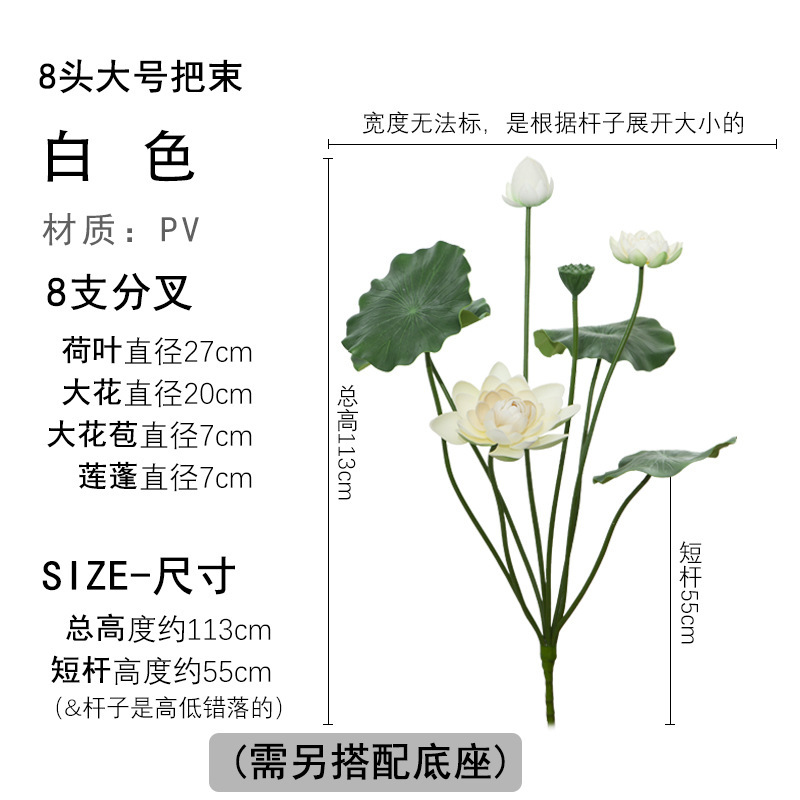 • 8개의 큰 연꽃 흰색 + 큰 연잎 베이스