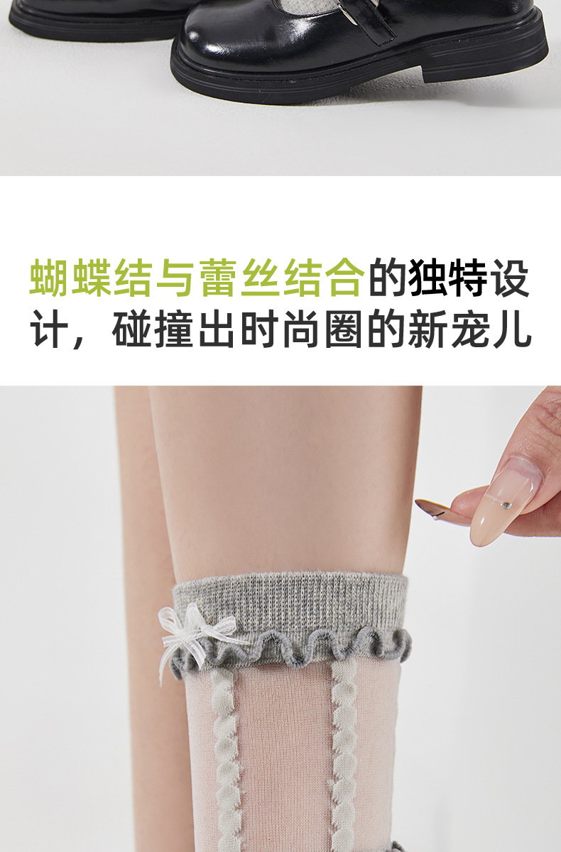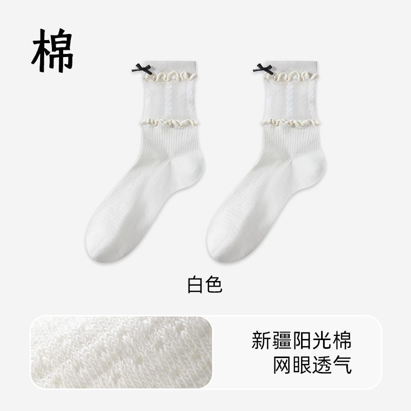 여성용 발레 스타일 양말 여름 메쉬 얇은 2025 새로운 핫 스타일 보우 레이스 본리스 미드 튜브 양말스토어 가기