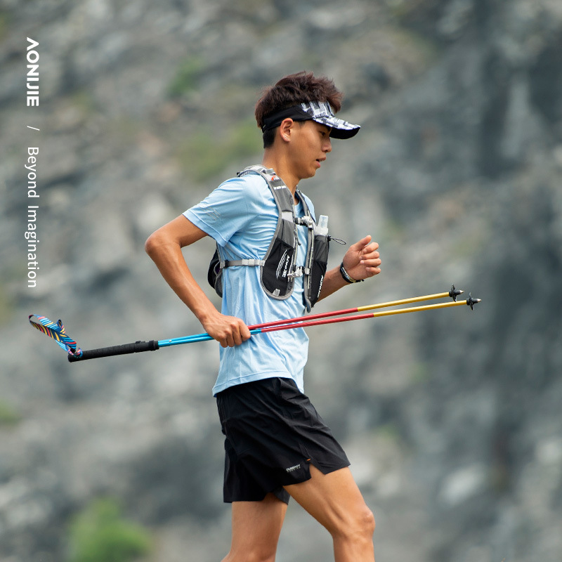 Onijie 탄소 등산 스틱 접이식 탄소 섬유 크로스 컨트리 러닝 등산 스틱 전문 야외 러닝 Xinglanqi