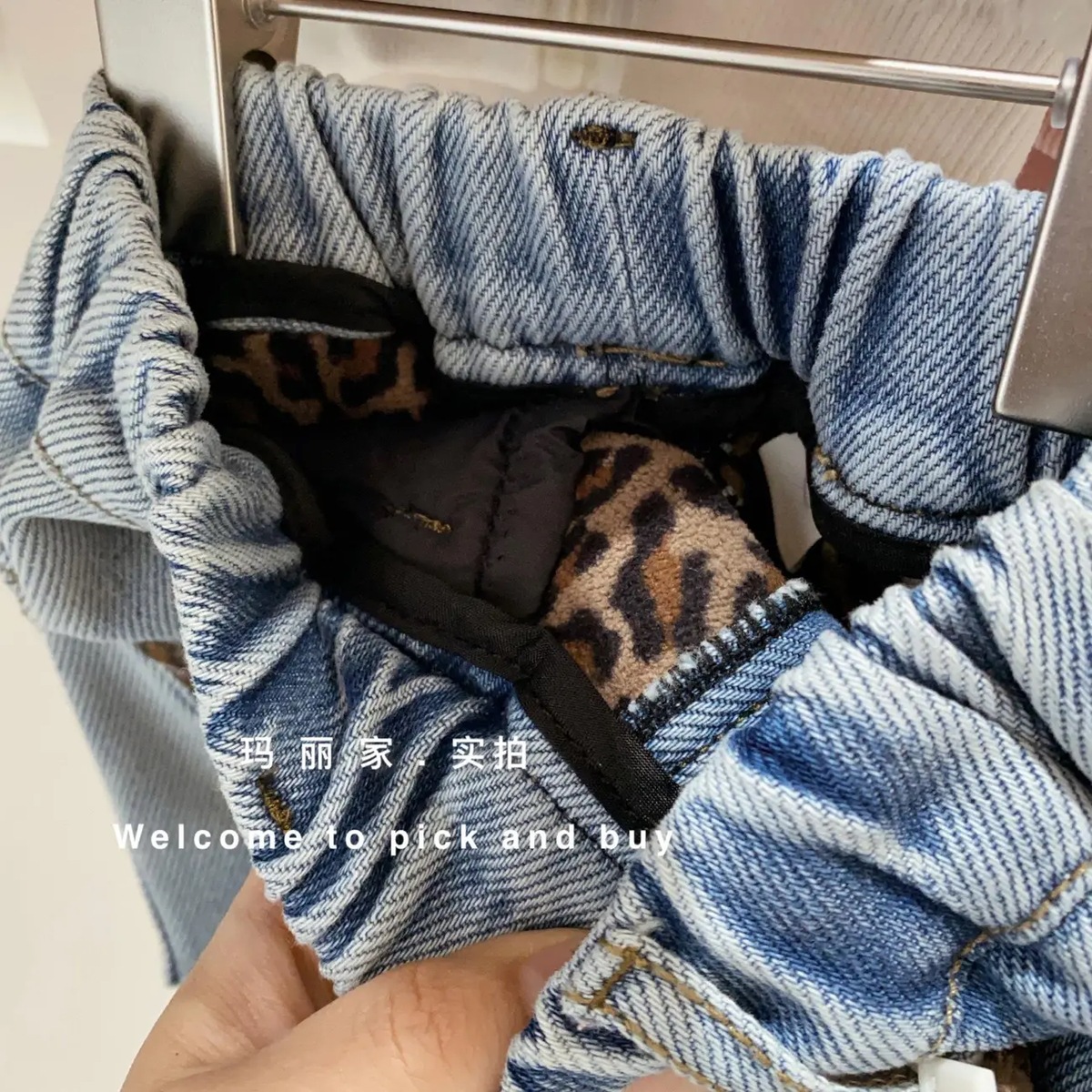여아용 레오파드 프린트 청바지 플러스 벨벳 겨울 새 스타일 두꺼운 원피스 벨벳 따뜻한 스트레이트 팬츠 여아용 겨울 바지스토어 가기