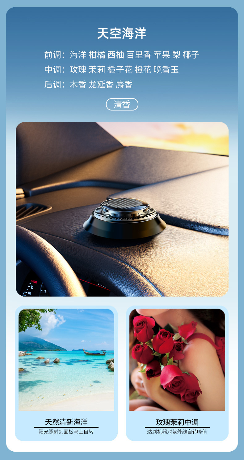 태양열 자동 회전 아로마 테라피 자동차 범용 창의적 맞춤형 장식 자동차 센터 콘솔 탈취 장식품스토어 가기
