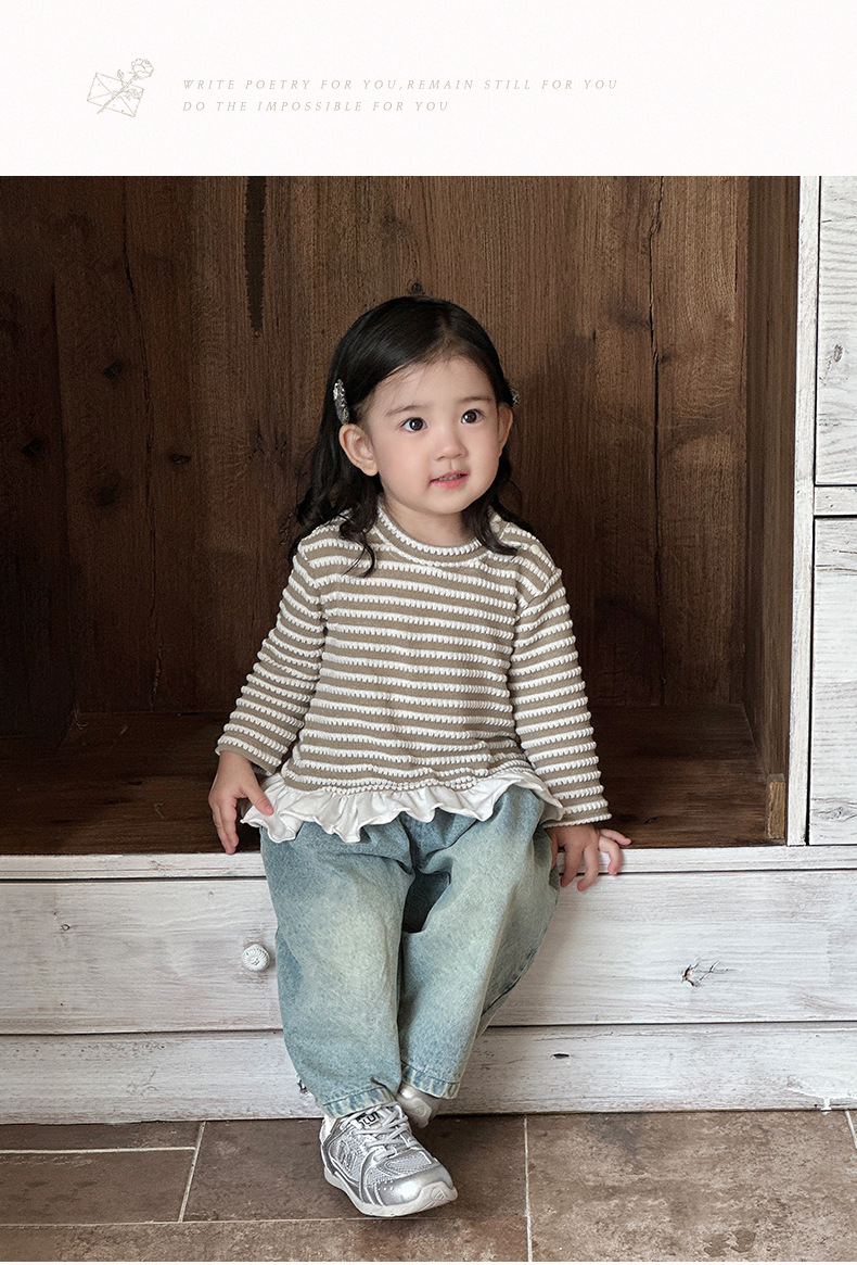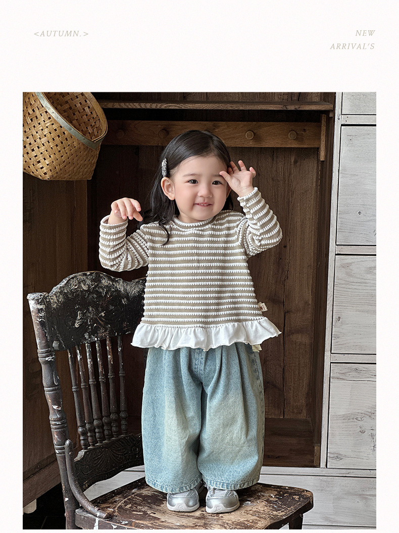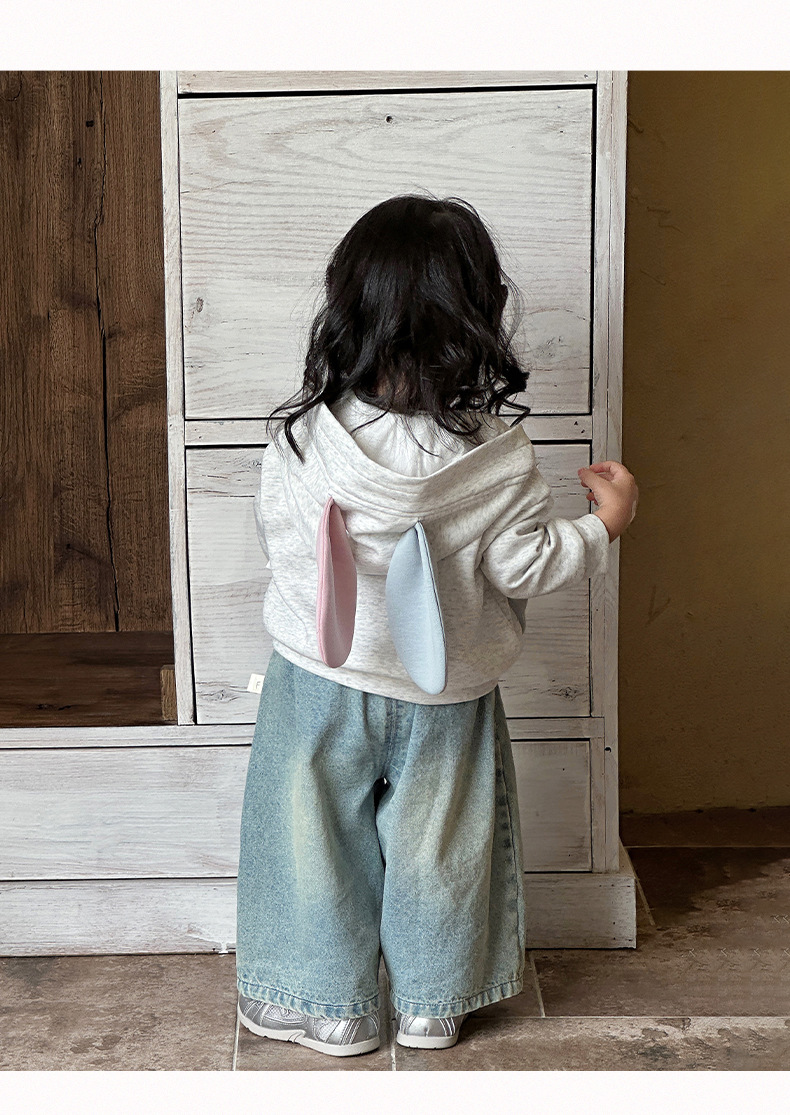 여아 정장, 아동 패션 스트라이프 바텀 셔츠, 영유아 한국식 데님 와이드 팬츠, 토끼 귀 후드 가디건스토어 가기