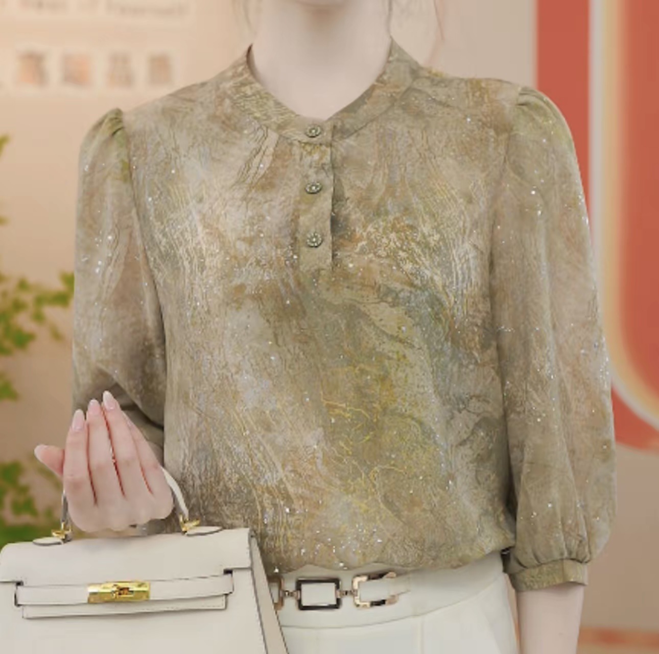 Dropshipping 여성용 다용도 쉬폰 셔츠 2025 새로운 패션 프린트 루즈핏 탑스토어 가기