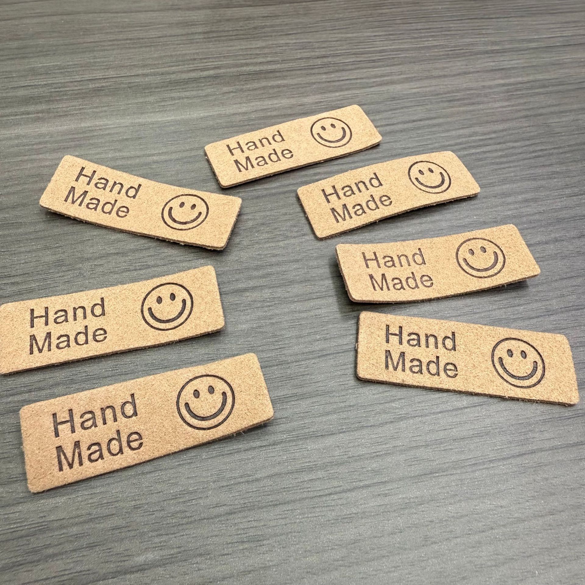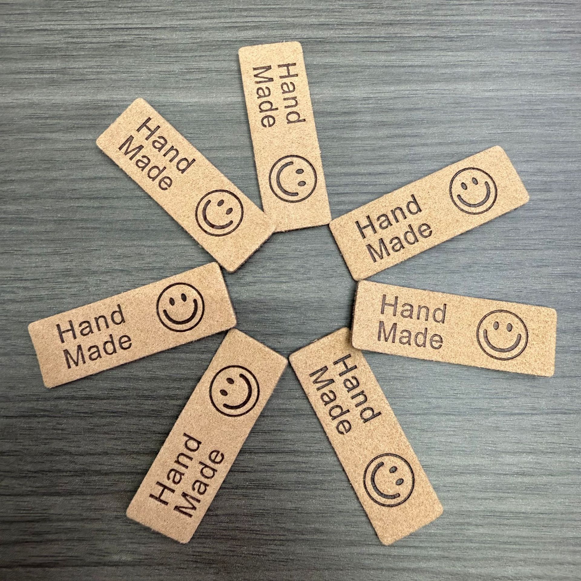 스마일리 슈퍼파이버 라벨 가죽 라벨 의류 액세서리 패션 HandMand 스마일리 가죽 라벨 의류 모자 스카프 소형 상표스토어 가기
