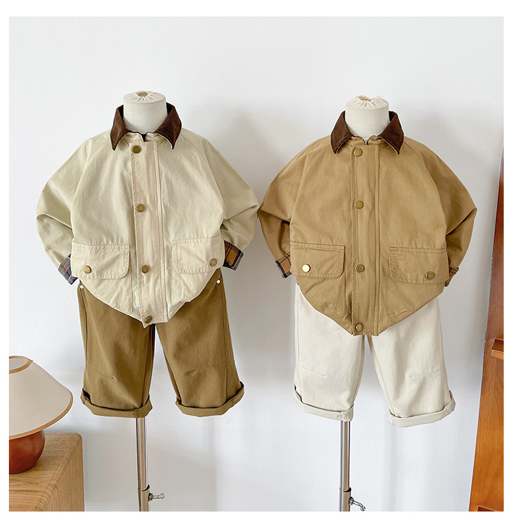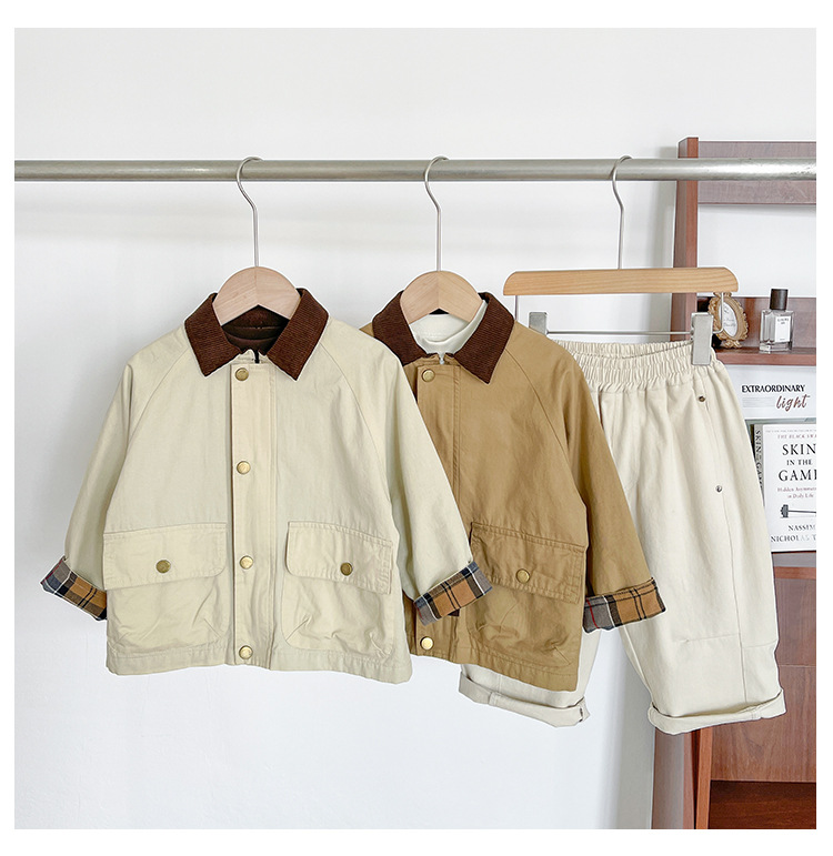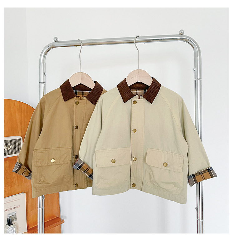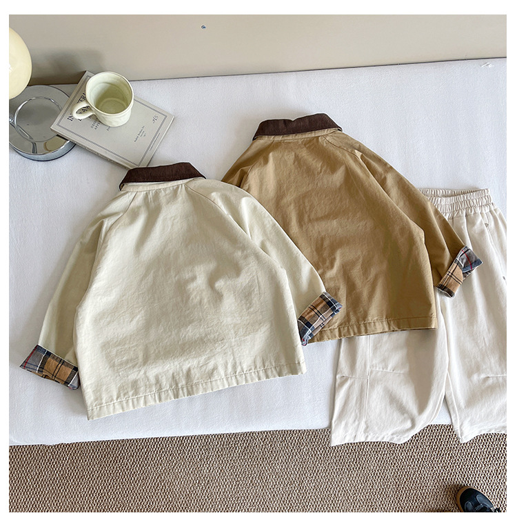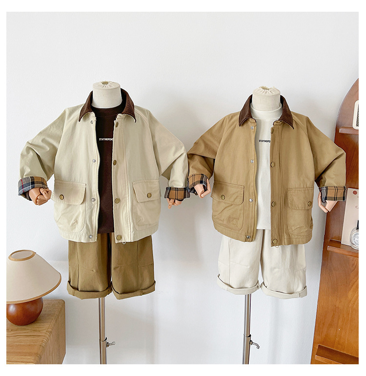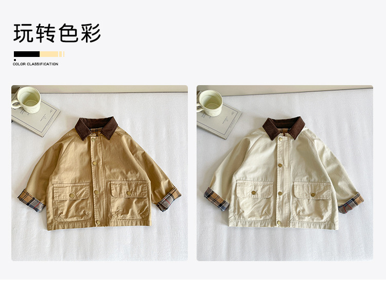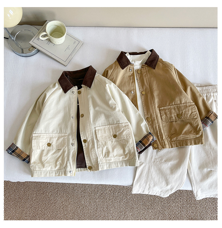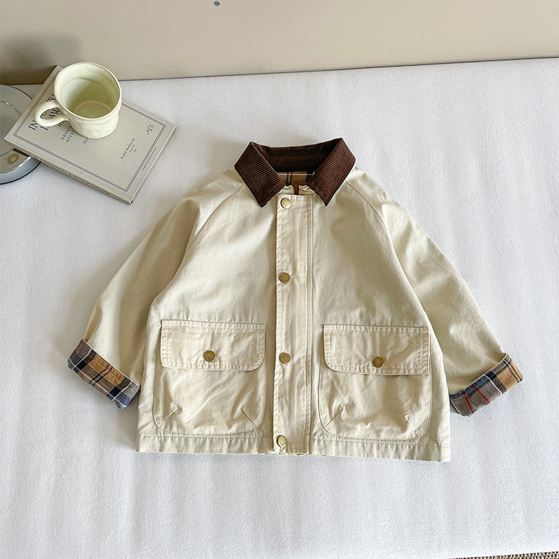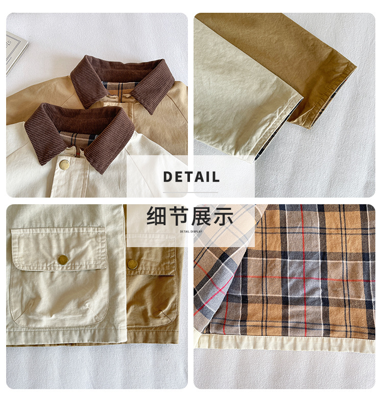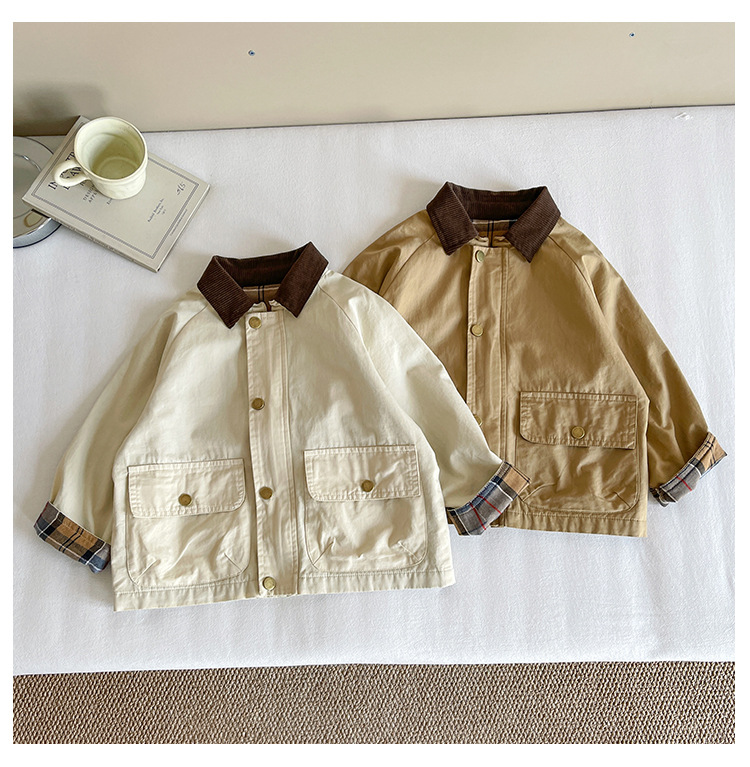 바람의 계곡 2025 가을 신작 아동복 아동용 일본 및 한국 격자 무늬 스플 라이스 재킷 소년 다용도 영국 스타일 재킷