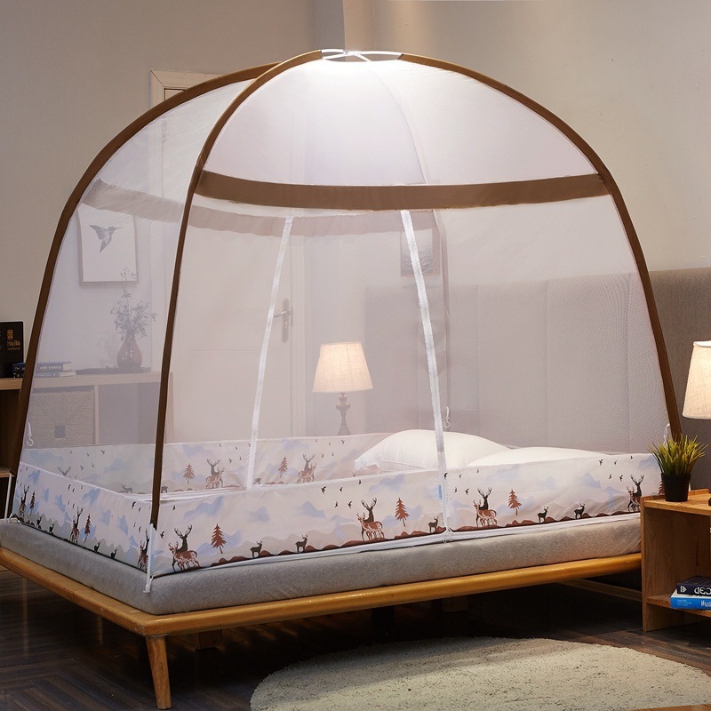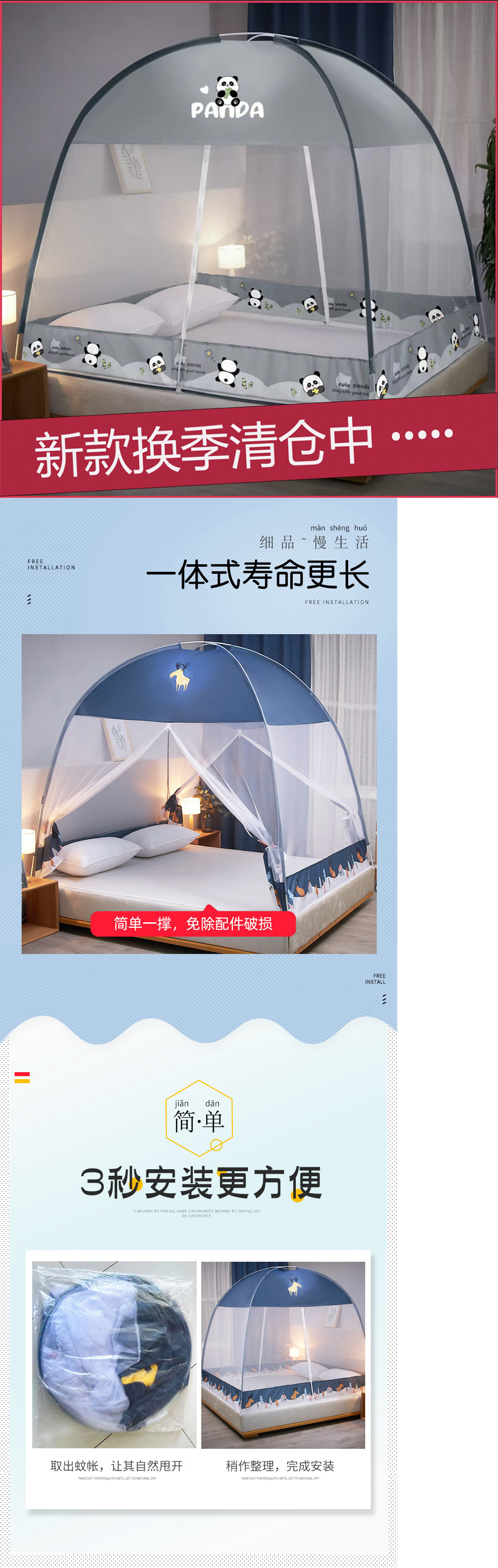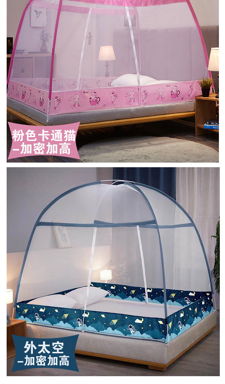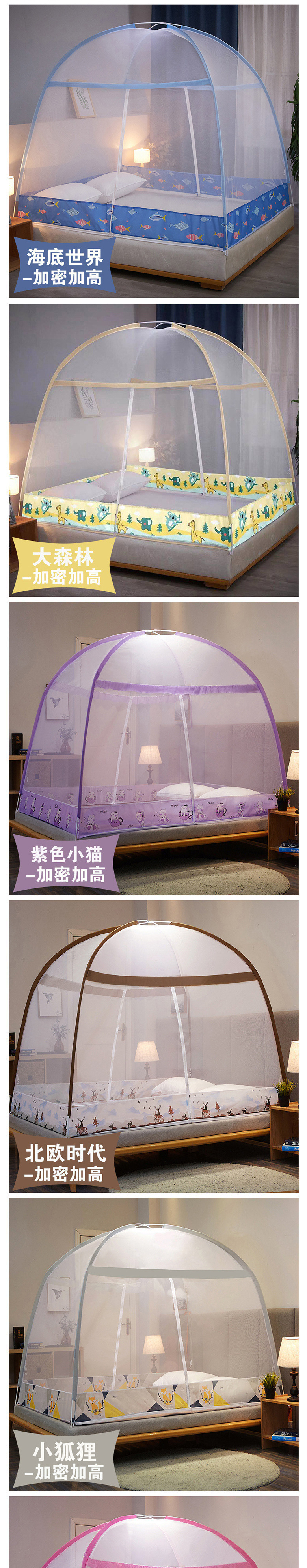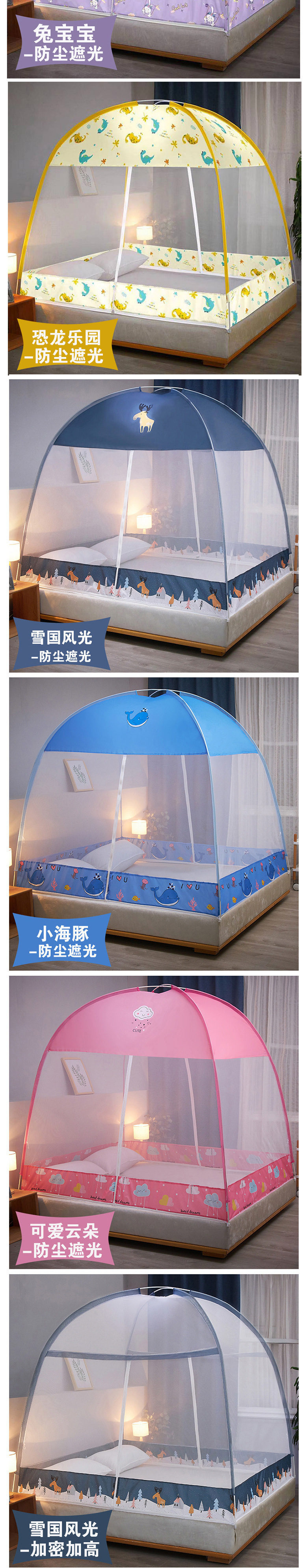게으른 사람들을 위한 설치가 필요 없는 몽골리안 돔 모기장, 가정용 더블 침대 패턴 모기장, 싱글용 새 모델스토어 가기