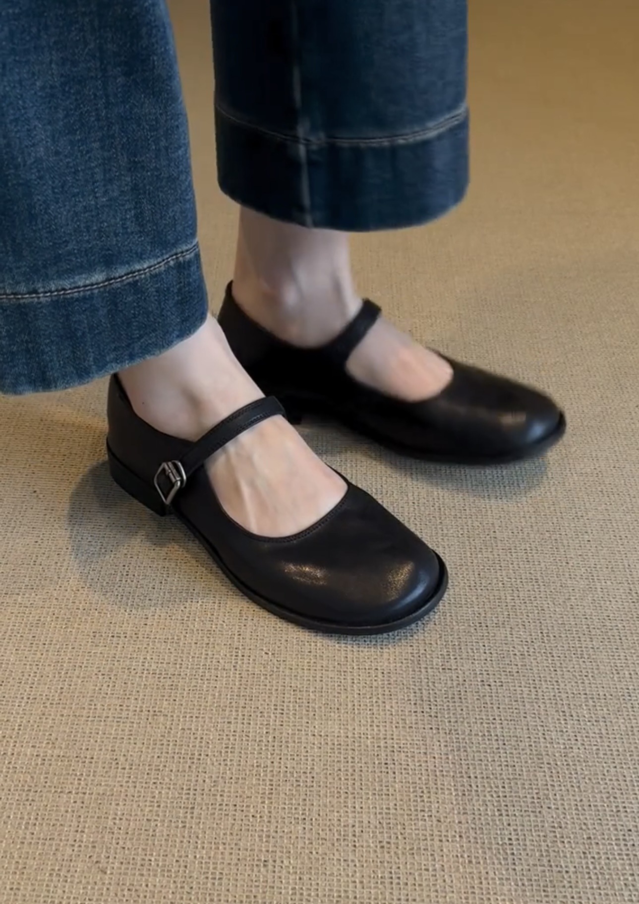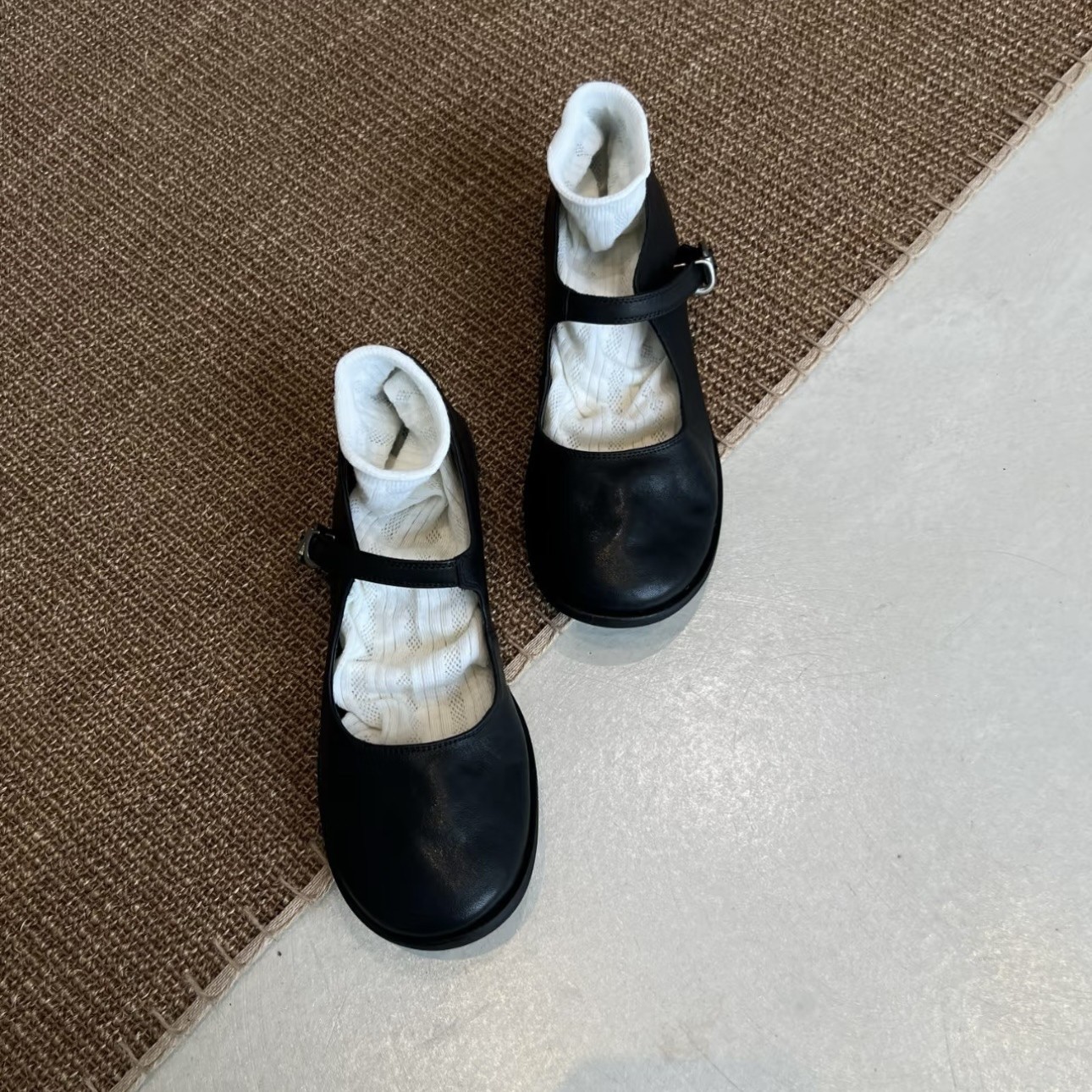 레트로 스타일 여성용 외출용 신발, 라운드 토 메리제인 슈즈, 굽이 두꺼운 얕은 입구의 영국풍 가죽 신발, 대형 여성용 신발 40-42B스토어 가기
