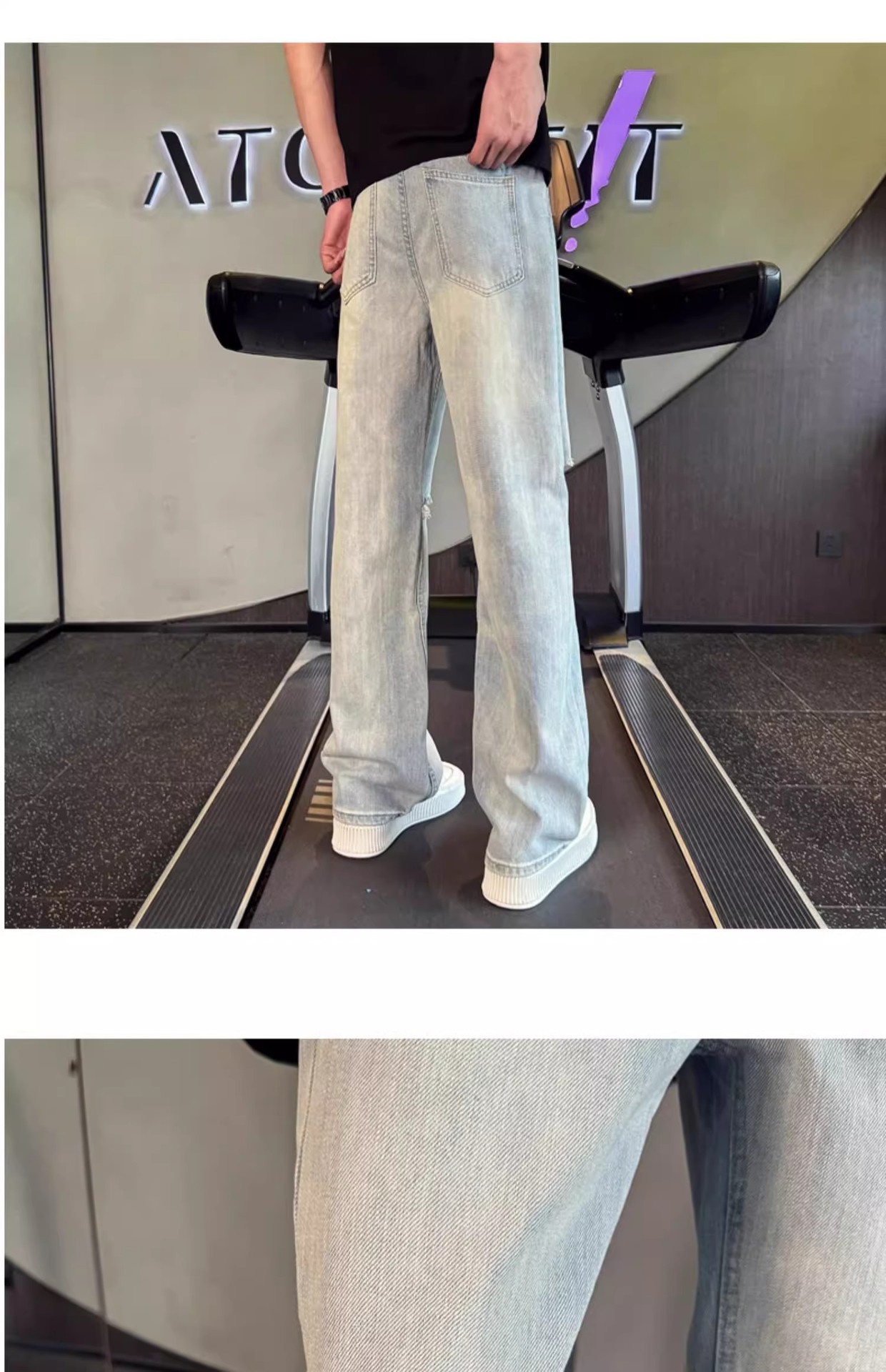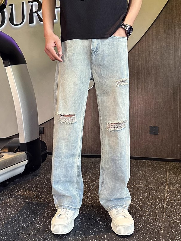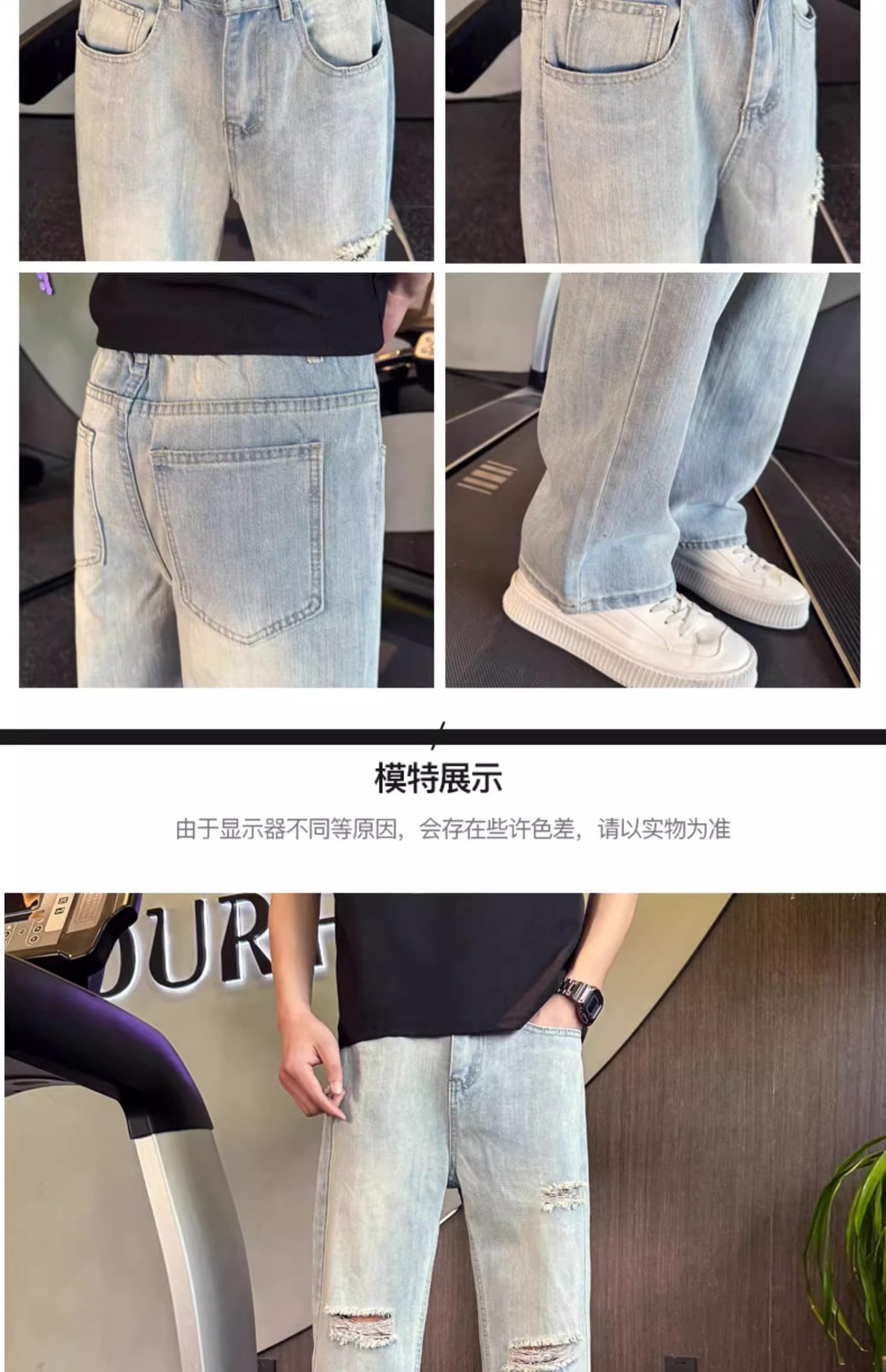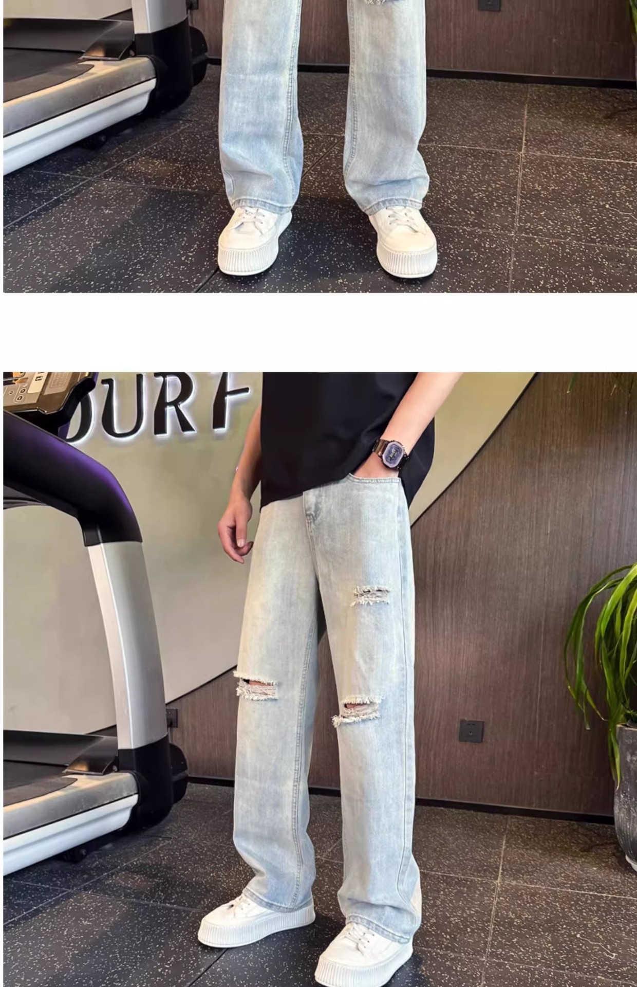 아메리칸 워싱 찢어진 청바지 남성 여름 얇은 베이비 페이퍼 바지 2025 신상 스트레이트 팬츠 봄, 가을 캐주얼 바지스토어 가기