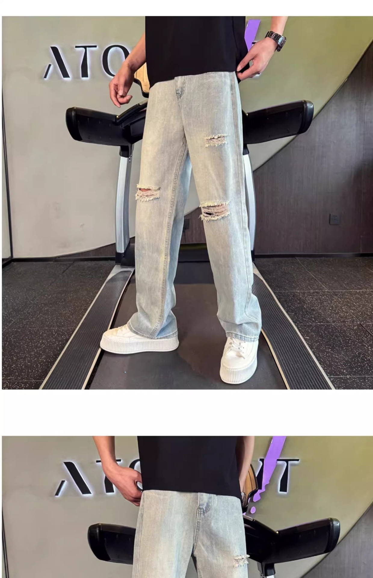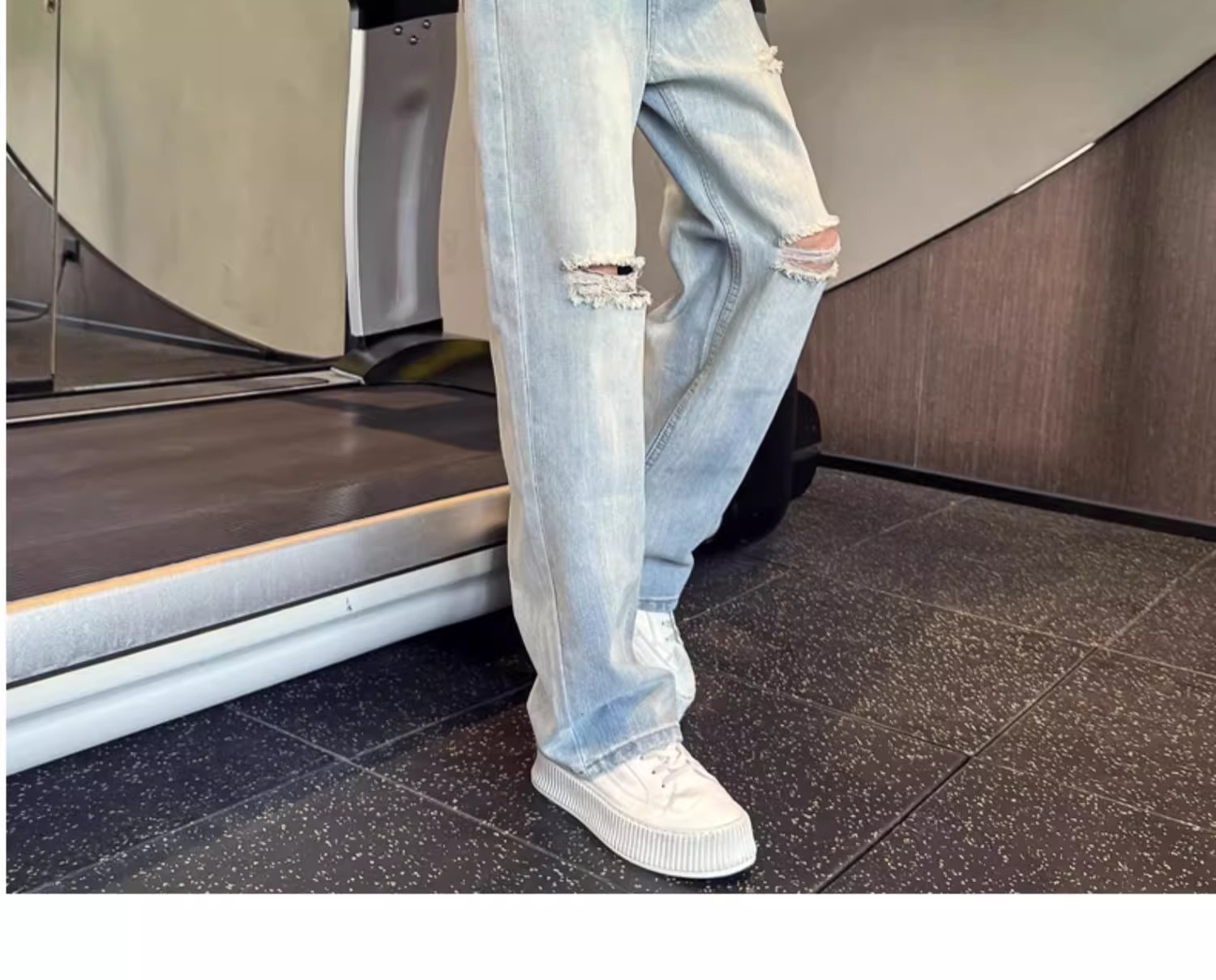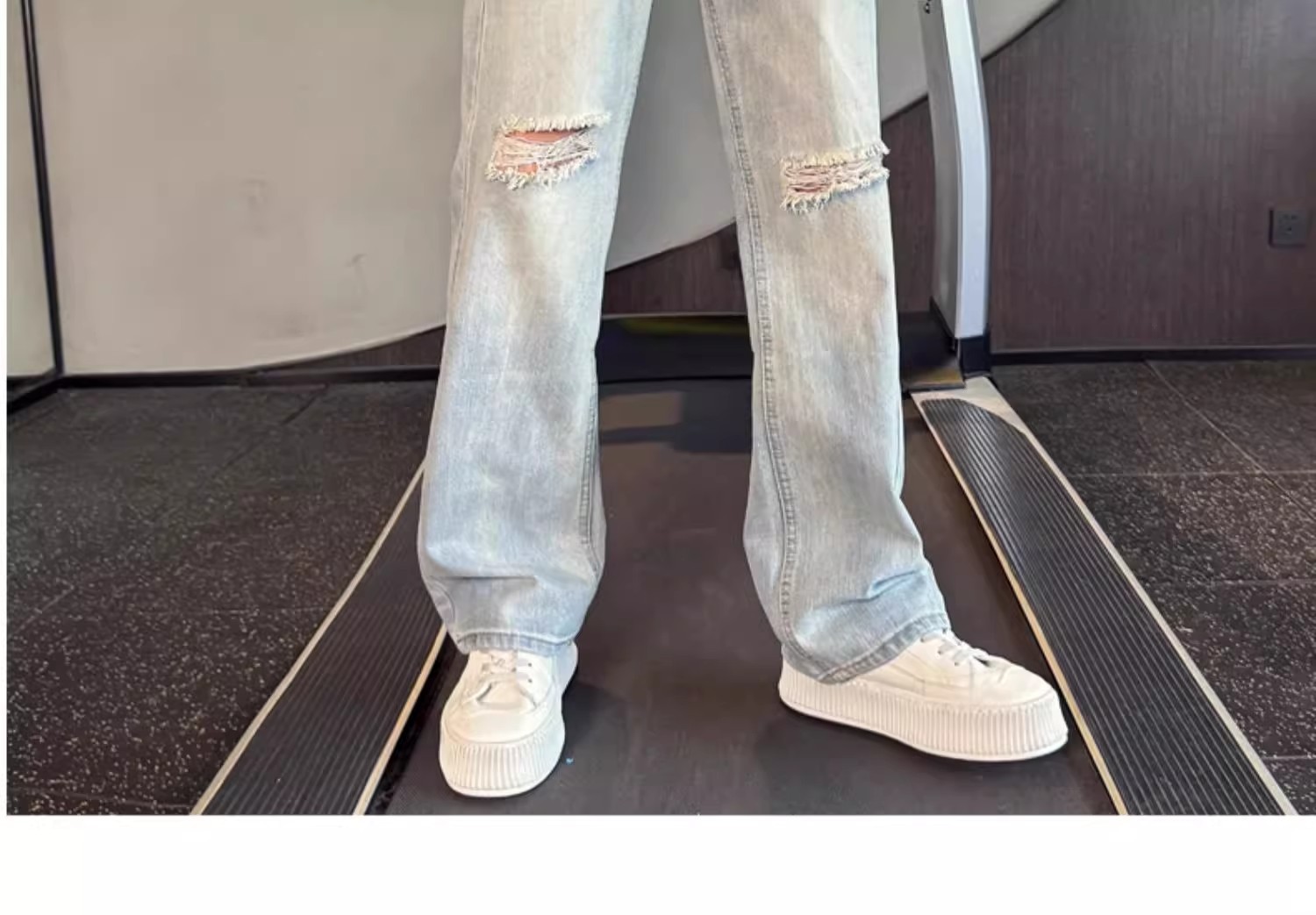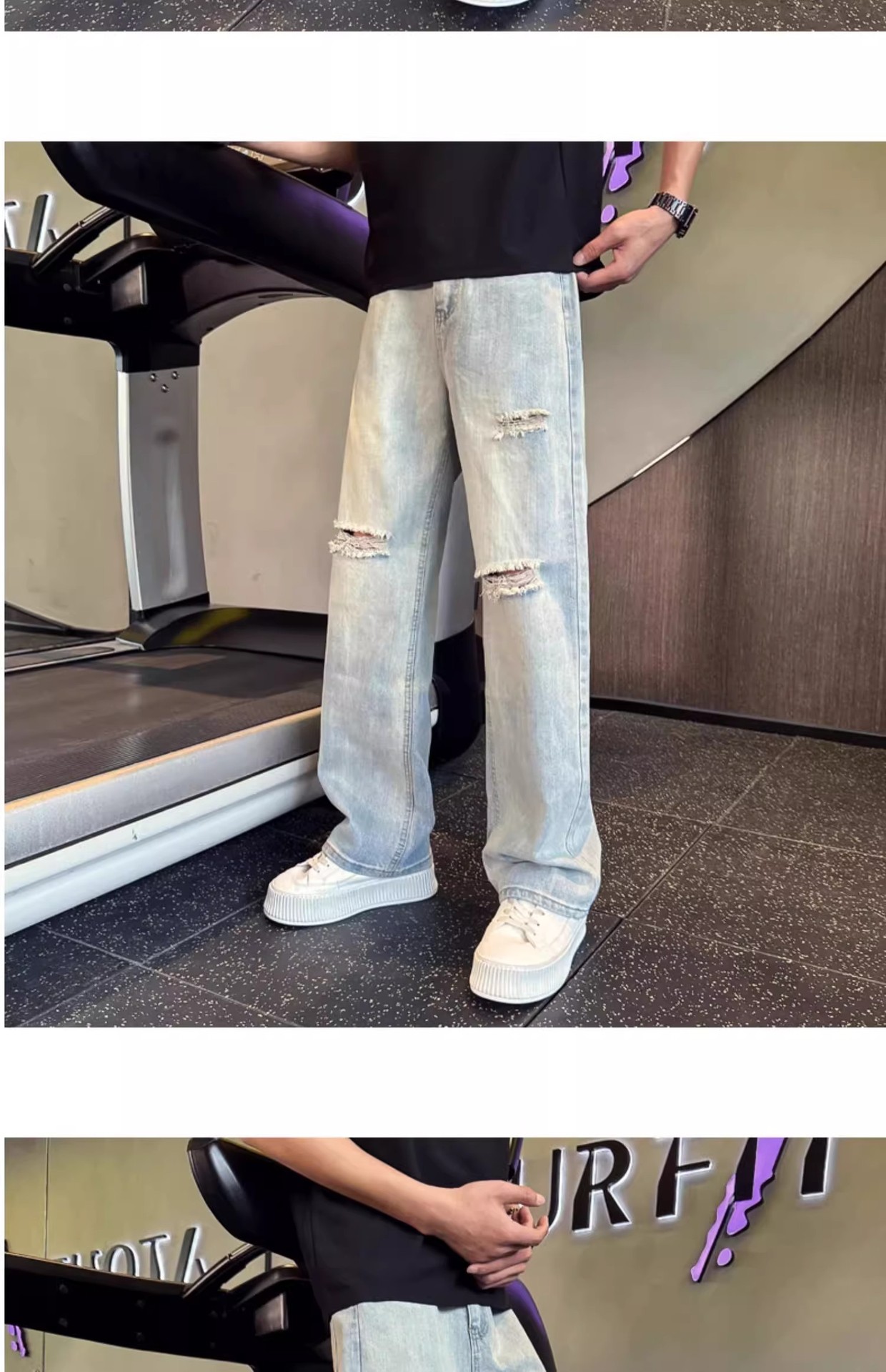 아메리칸 워싱 찢어진 청바지 남성 여름 얇은 베이비 페이퍼 바지 2025 신상 스트레이트 팬츠 봄, 가을 캐주얼 바지스토어 가기