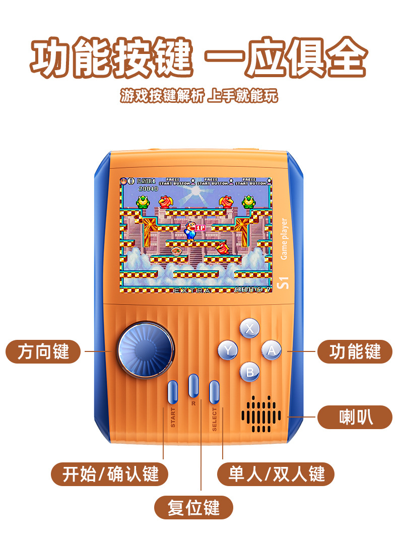 국경 간 S1 휴대용 게임 콘솔 3.0inch 컬러 스크린 Contra 2 인용 어린이 게임 아케이드 휴대용 휴대용 콘솔