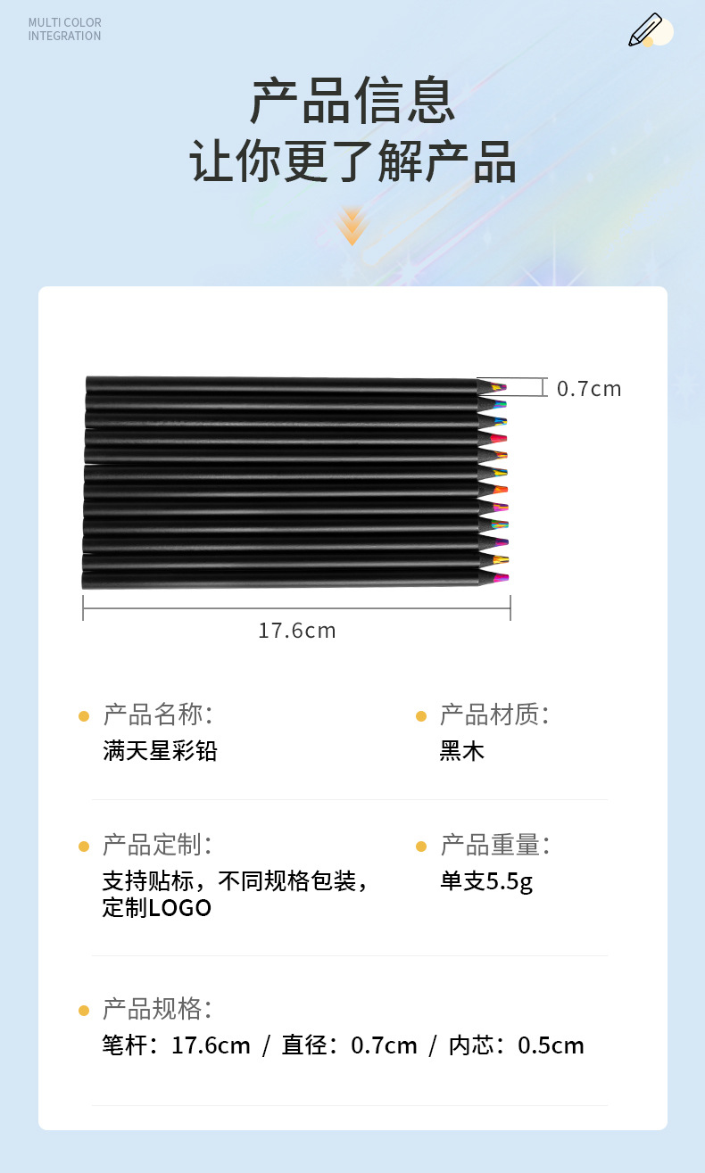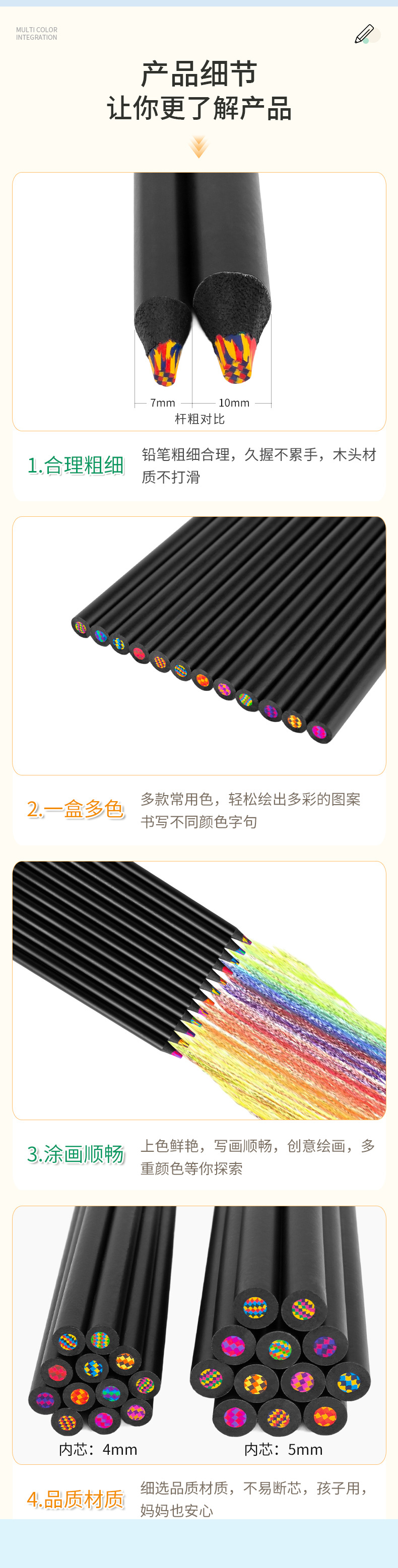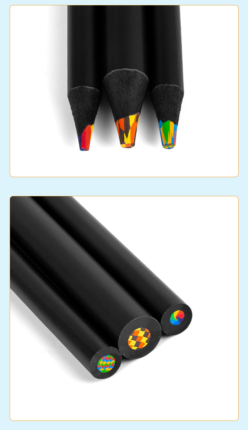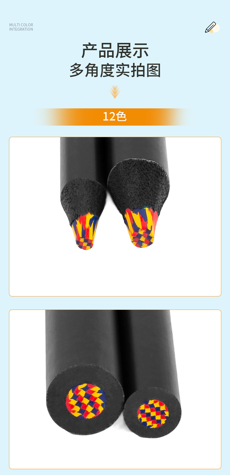 다채로운 색상의 검은 나무 연필, 어린이 그림 연필, 다색 필심, 한 번에 여러 색을 쓸 수 있는 나무 학생용 연필