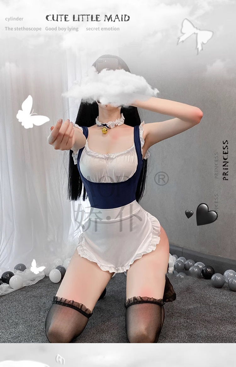 • 가랑이 없는 메이드 원피스 + 망사스타킹