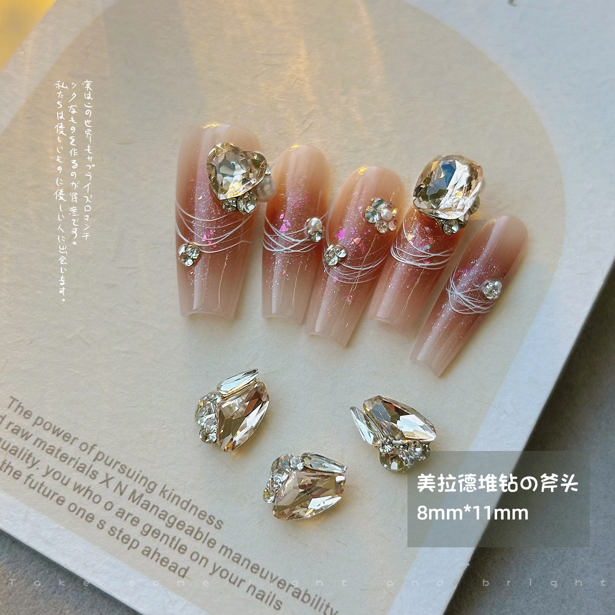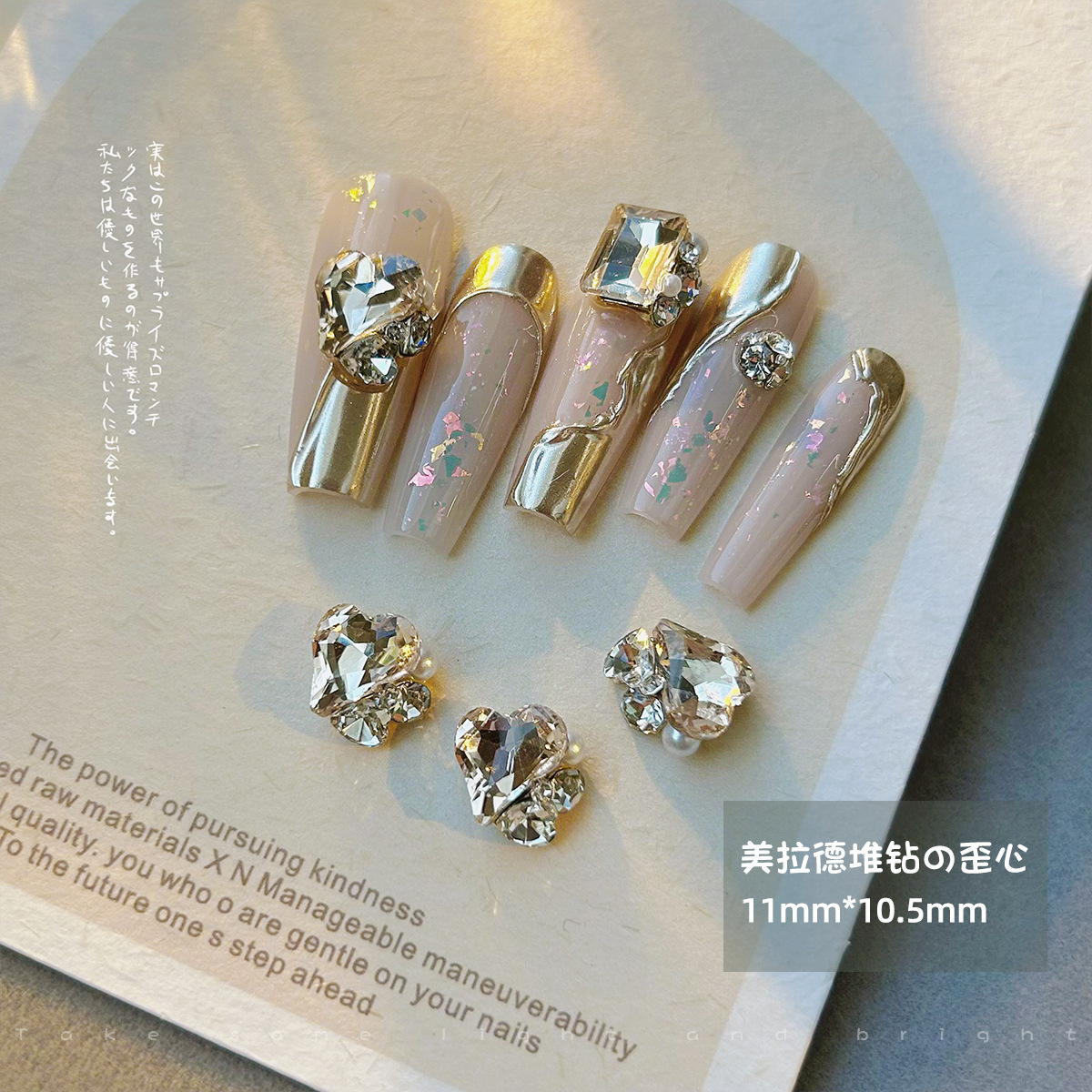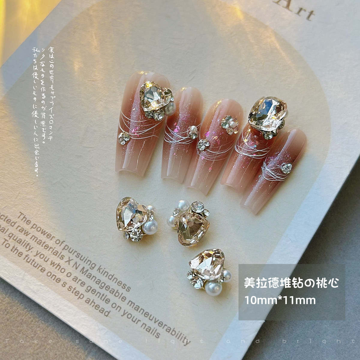 美甲钻饰品美拉德咖色歪桃心堆堆钻珍珠镶钻立体成品指甲配件