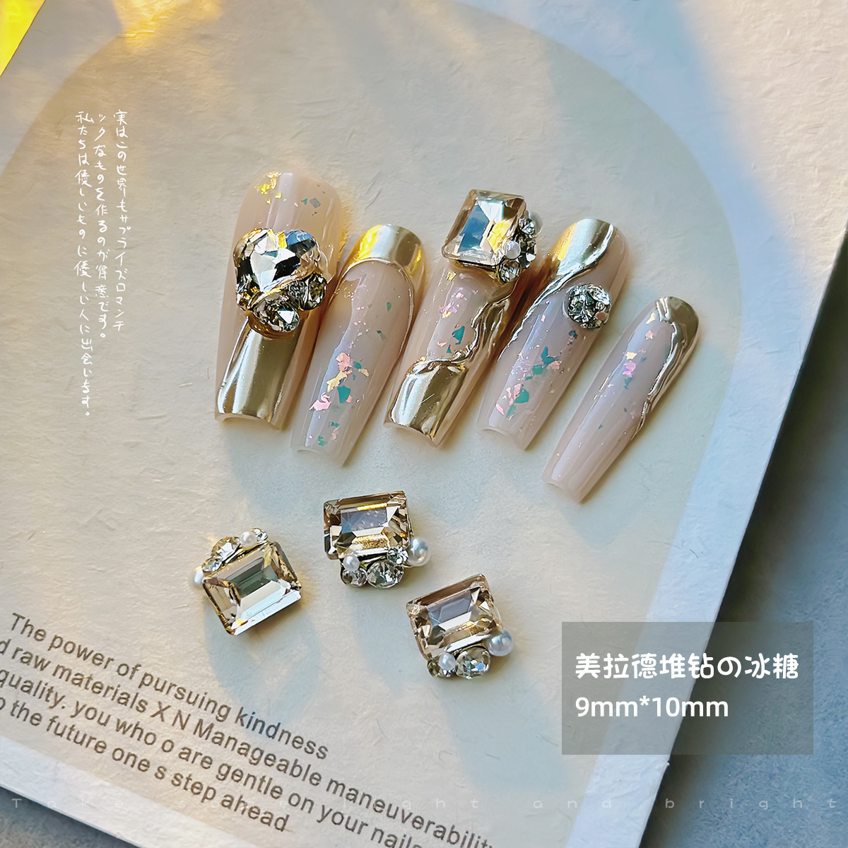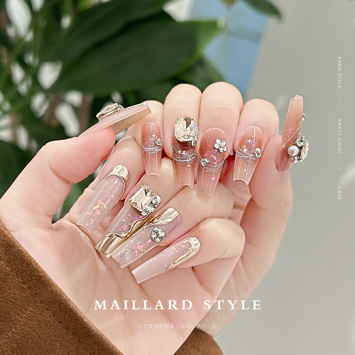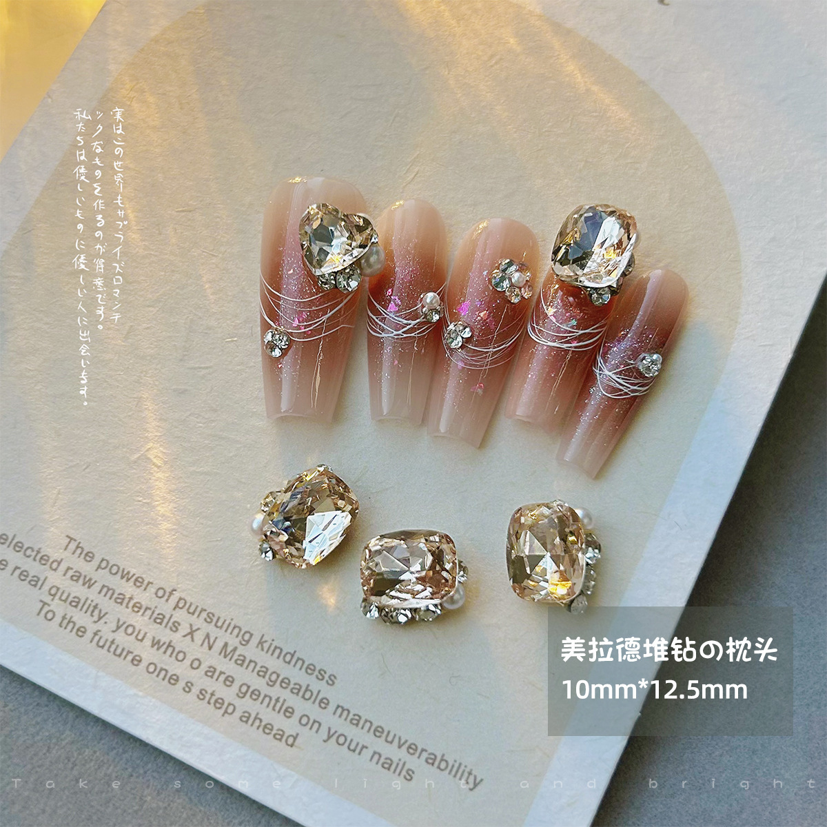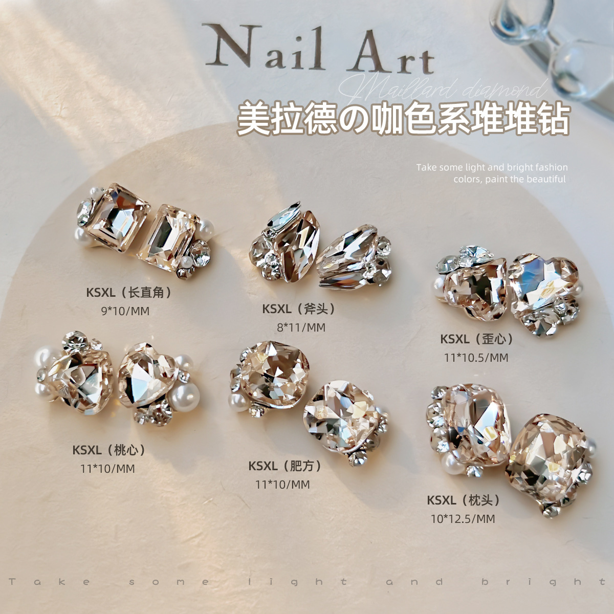 美甲钻饰品美拉德咖色歪桃心堆堆钻珍珠镶钻立体成品指甲配件