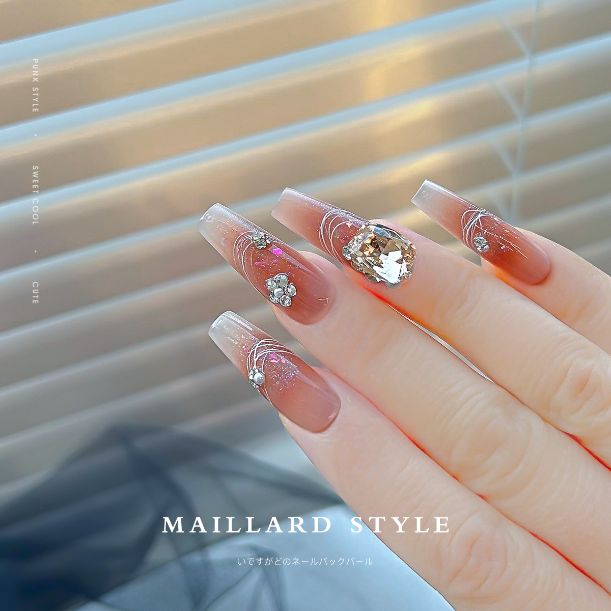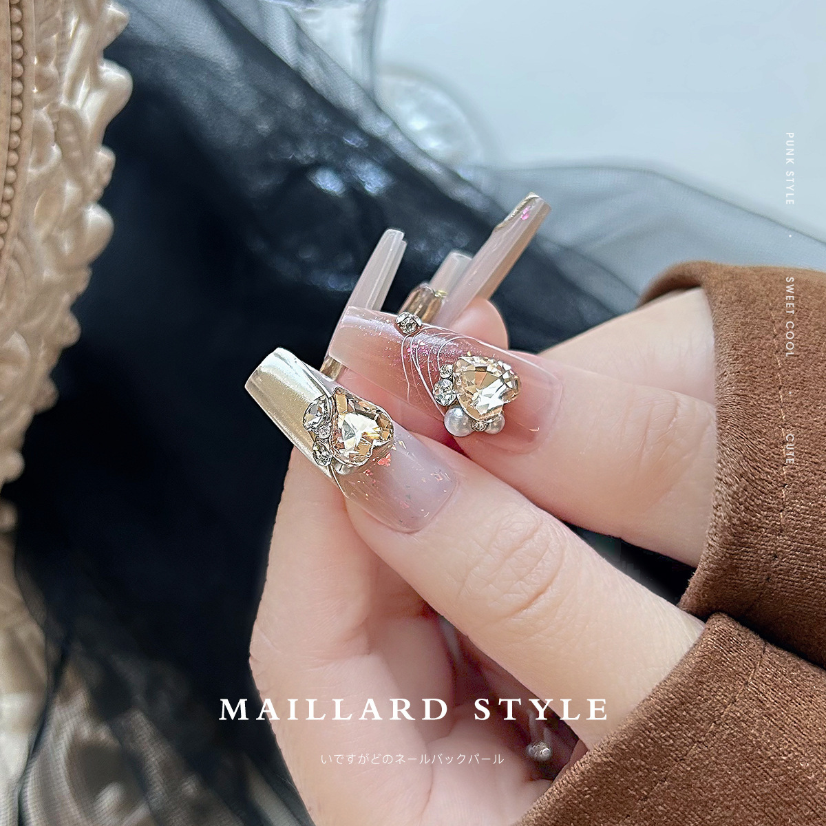 네일아트 다이아몬드 주얼리, 메일라드 커피 컬러 편심된 하트, 다이아몬드가 박힌 진주, 입체 완성 네일 액세서리스토어 가기