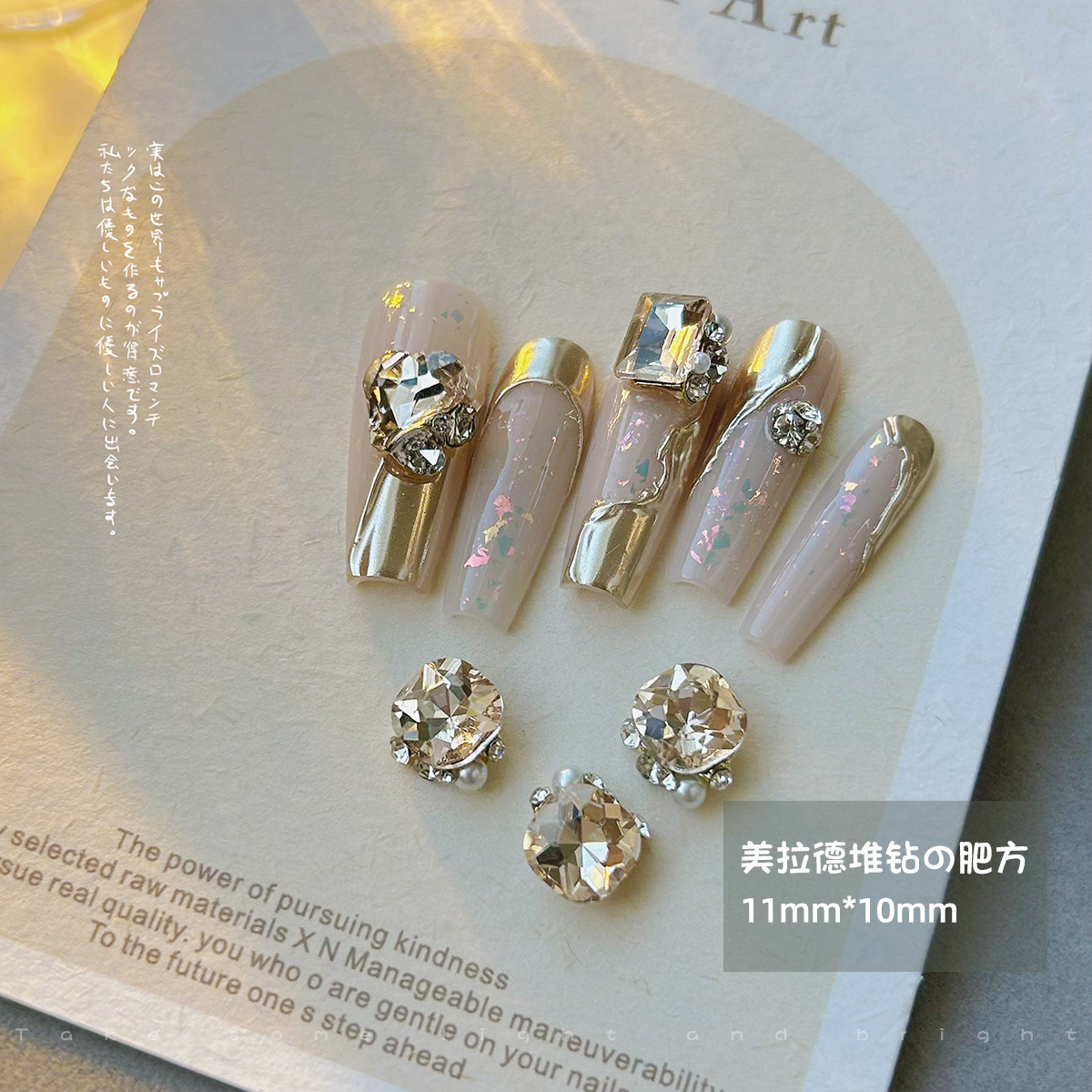 네일아트 다이아몬드 주얼리, 메일라드 커피 컬러 편심된 하트, 다이아몬드가 박힌 진주, 입체 완성 네일 액세서리