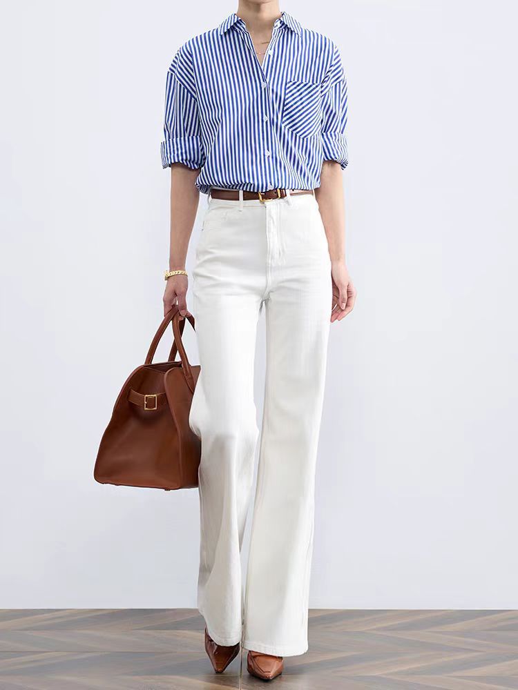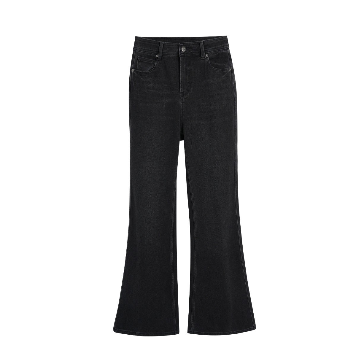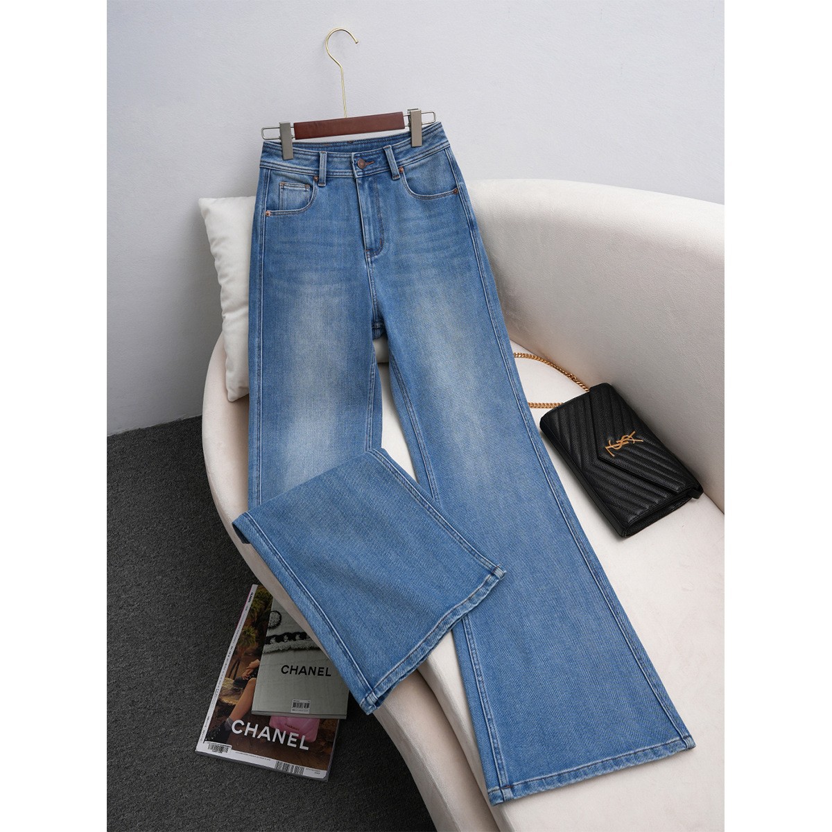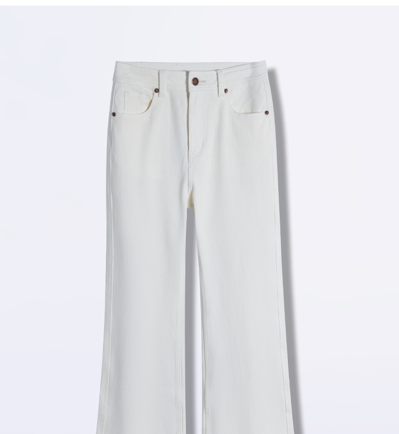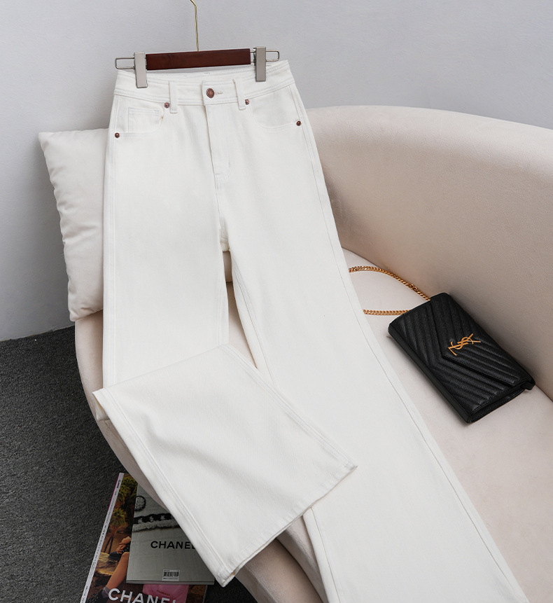 2025 가을 겨울 기모 마히토 팬츠 고급스러운 화이트 하이웨이스트 스트레이트 레그 약간의 플레어 데님 팬츠 여성용 사방 스트레치스토어 가기