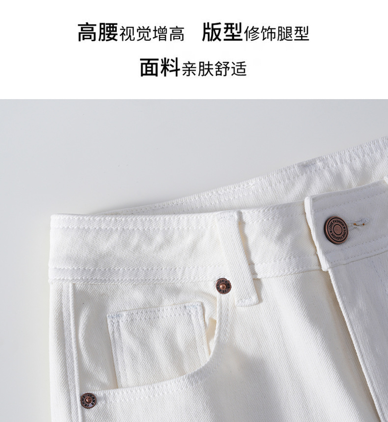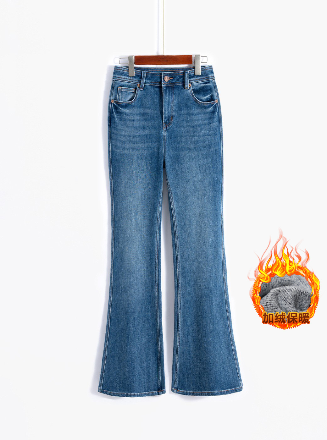 2025 가을 겨울 기모 마히토 팬츠 고급스러운 화이트 하이웨이스트 스트레이트 레그 약간의 플레어 데님 팬츠 여성용 사방 스트레치