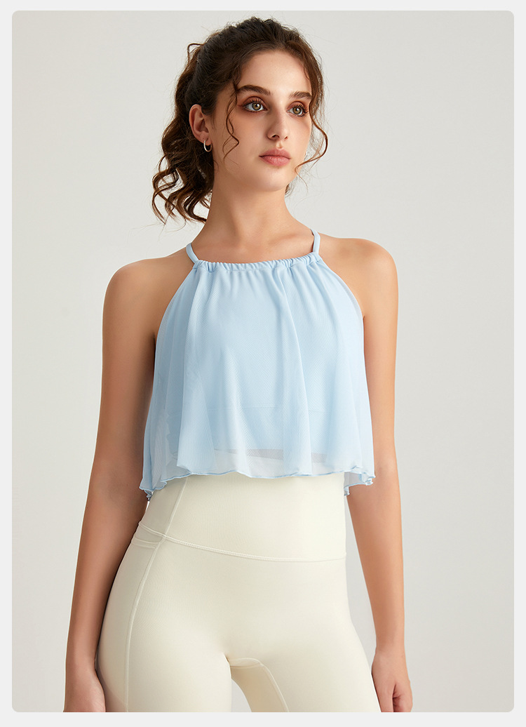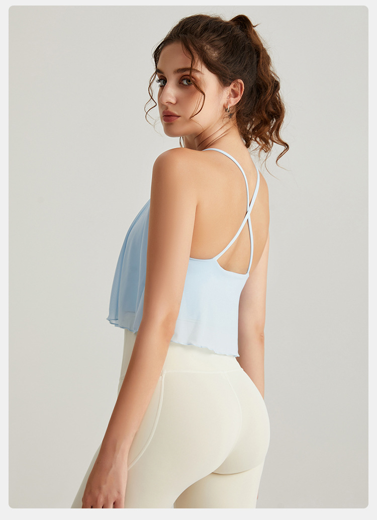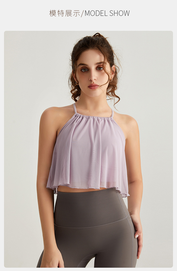 LAHN 메쉬 요가 조끼 여성용 고정 가슴 패드 피트니스 탑 충격 방지 러닝 아우터 슬링 스포츠 브라스토어 가기
