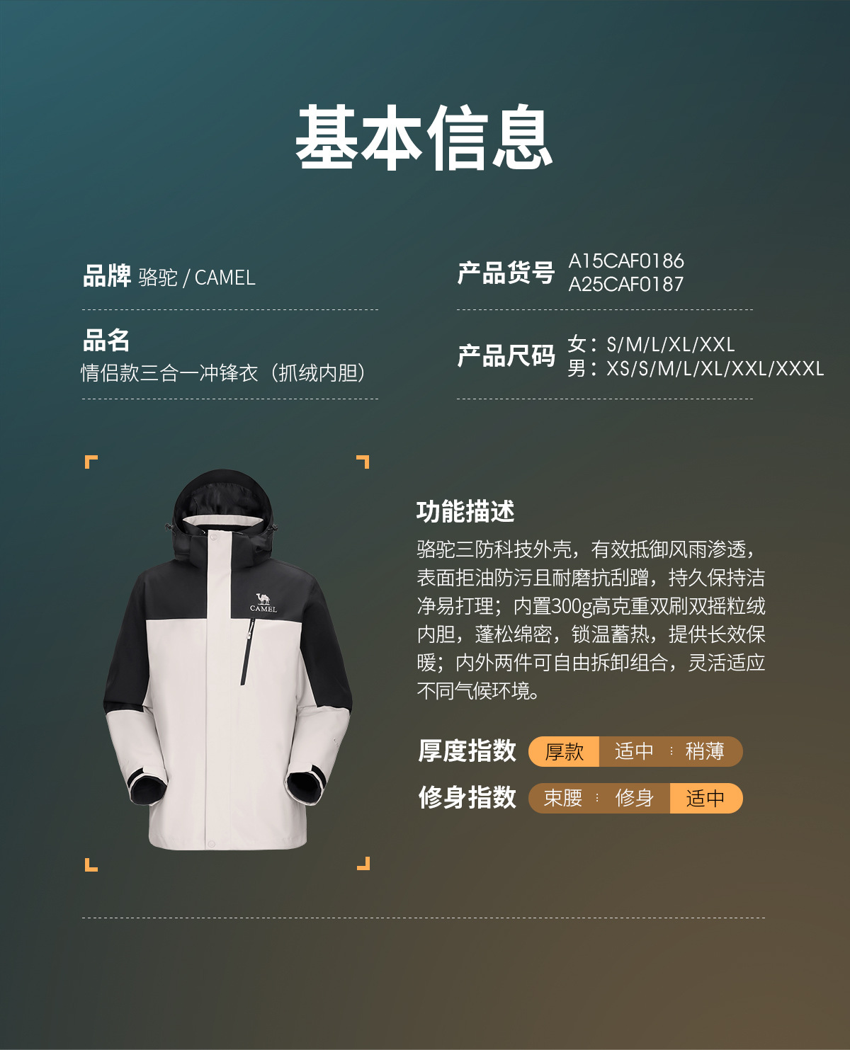 Camel Jacket 3-in-One 아웃도어 재킷 Polar Fleece 라이너 방수 및 방풍 2025 New Mountaineering Jacket스토어 가기