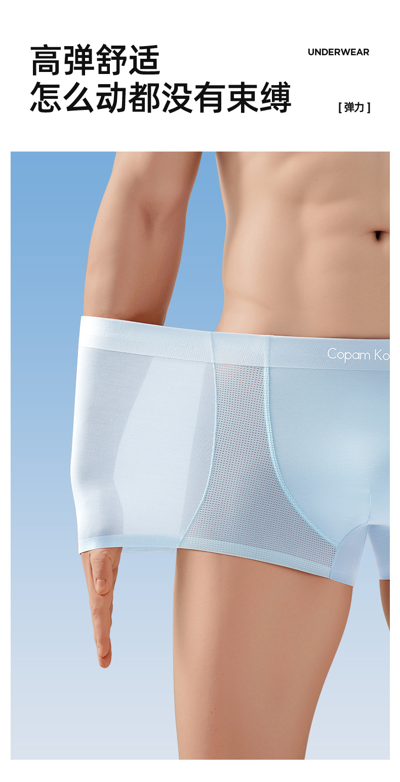 남성 속옷 남성 편안한 모달 복서 반바지 2025 새로운 원활한 얼음 메쉬 통기성 복서 팬티스토어 가기