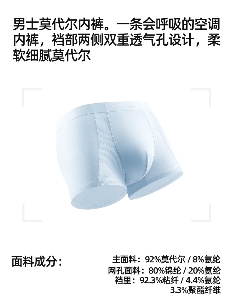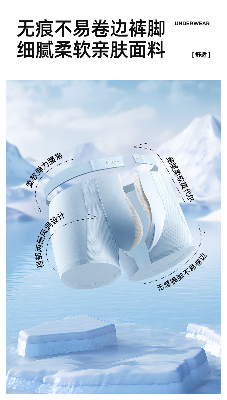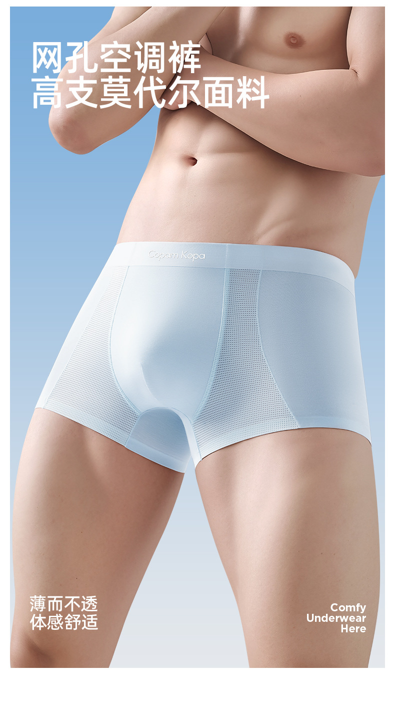 남성 속옷 남성 편안한 모달 복서 반바지 2025 새로운 원활한 얼음 메쉬 통기성 복서 팬티