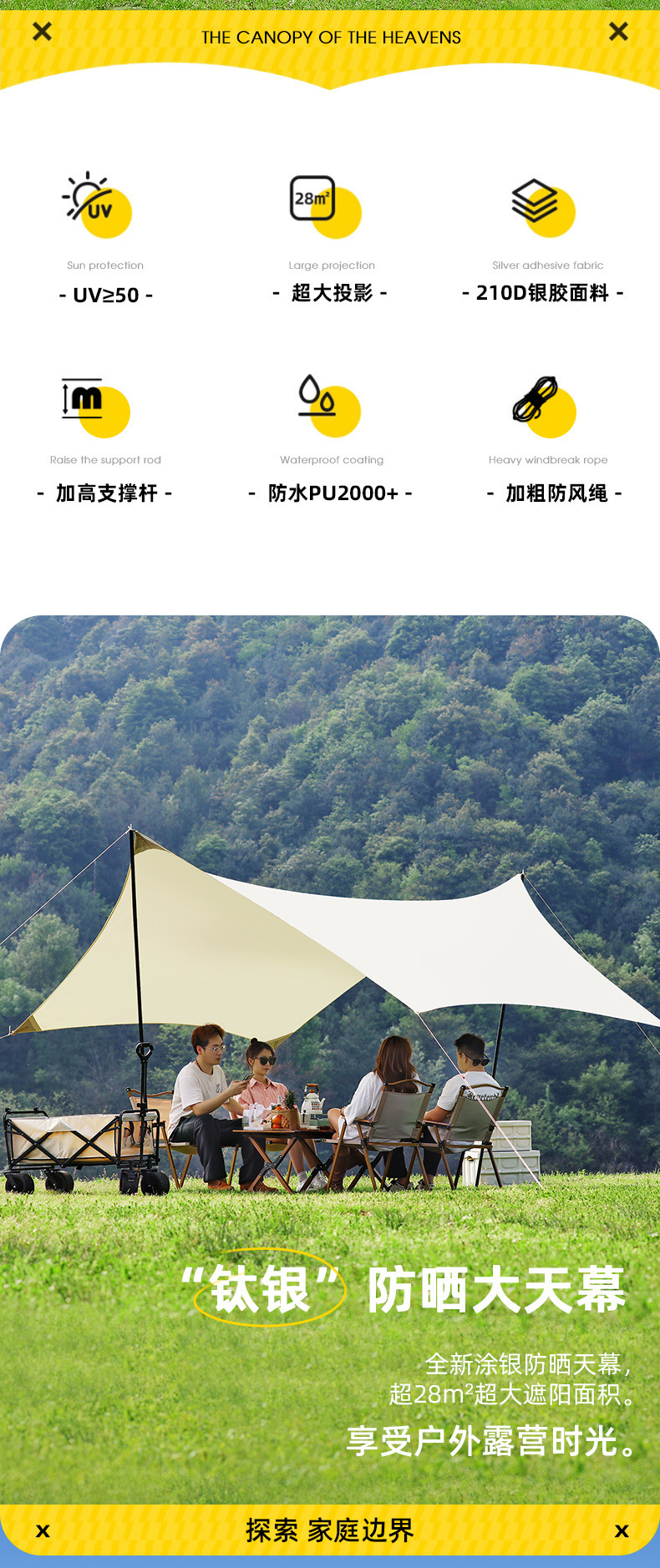 야외 은도금 캐노피 캠핑 천막 캠핑 피크닉 안뜰 태양 보호 천막 해변 천막 태양 보호 및 자외선 차단